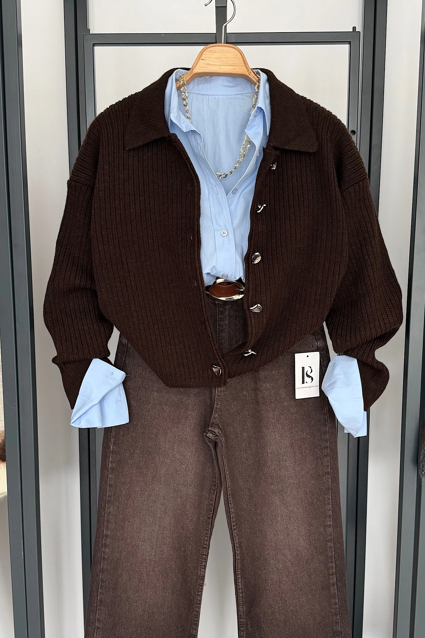 Kroşetalı Kıvırak Peluş Ceket Camel