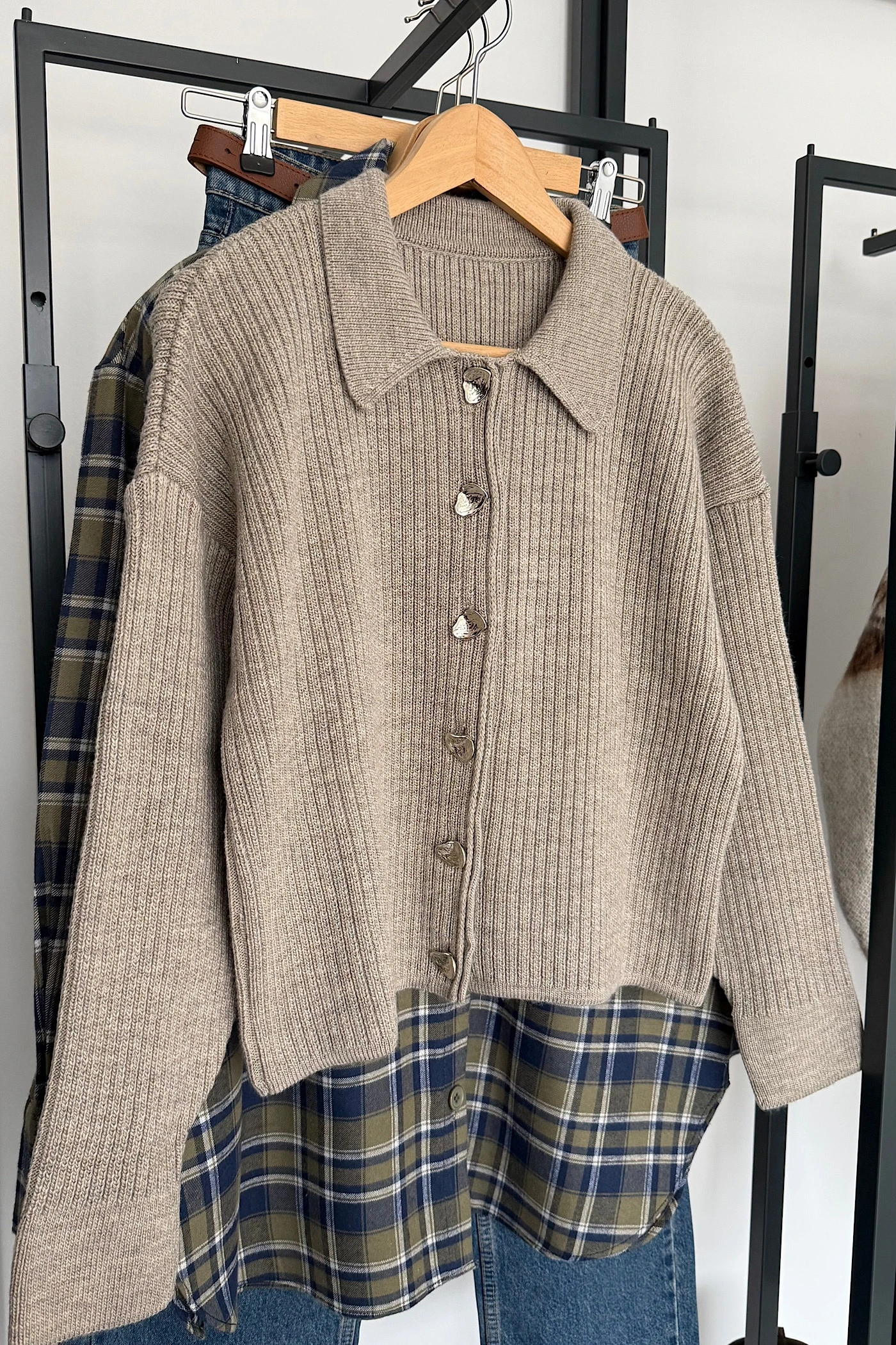 6 Düğmeli Hırka Vizon