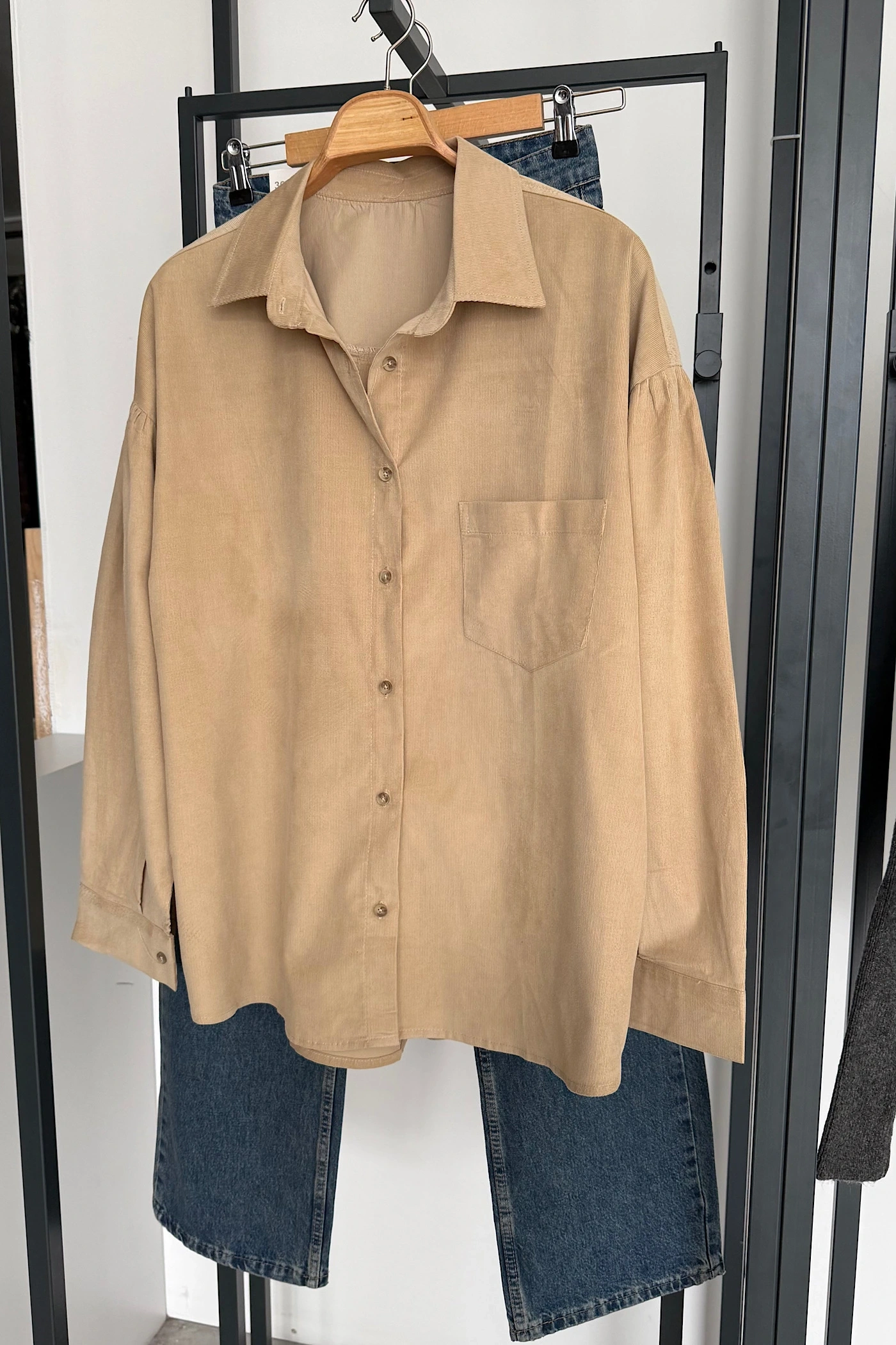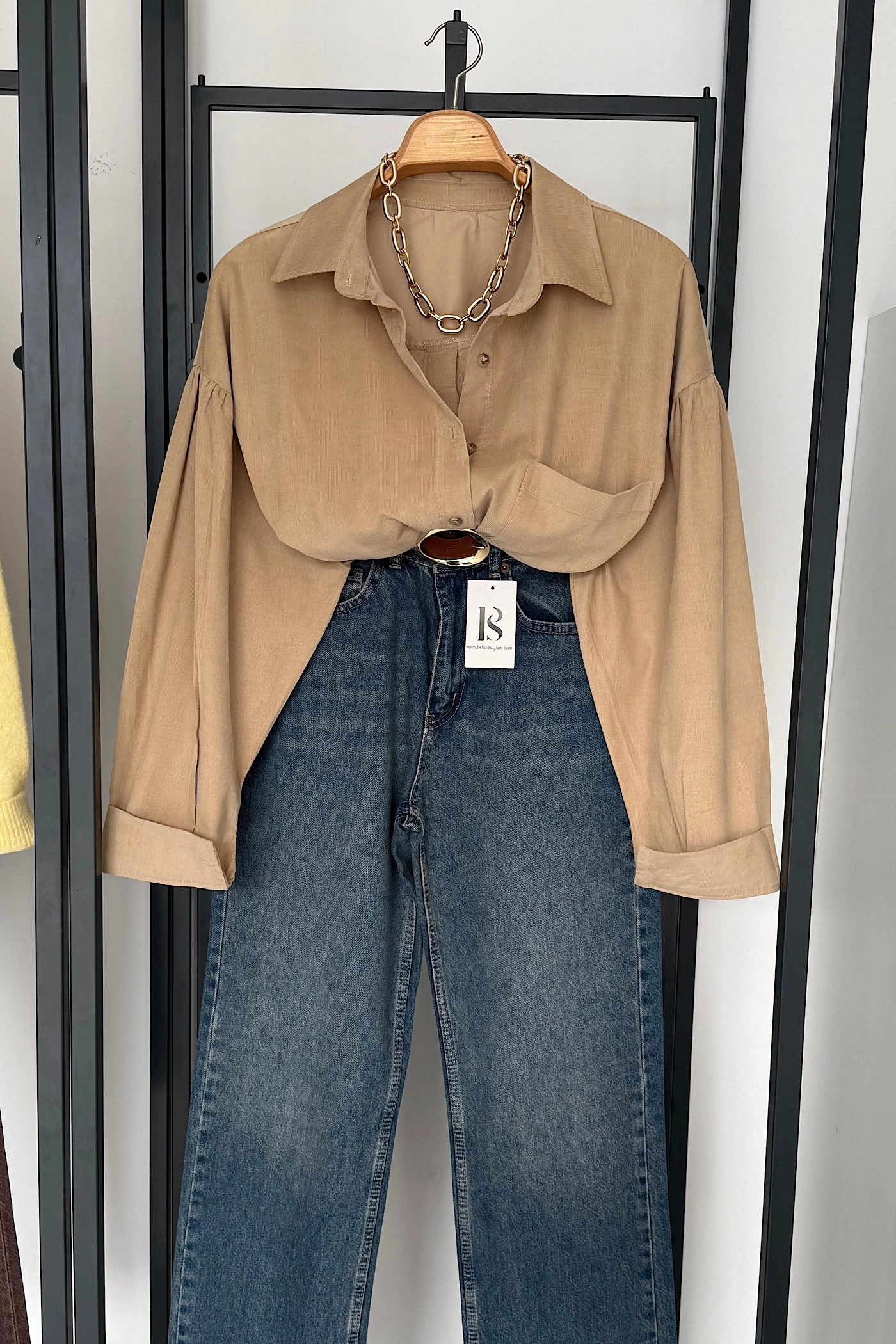 Ekose Desen Düğme Detaylı Gömlek Kahve-Bej