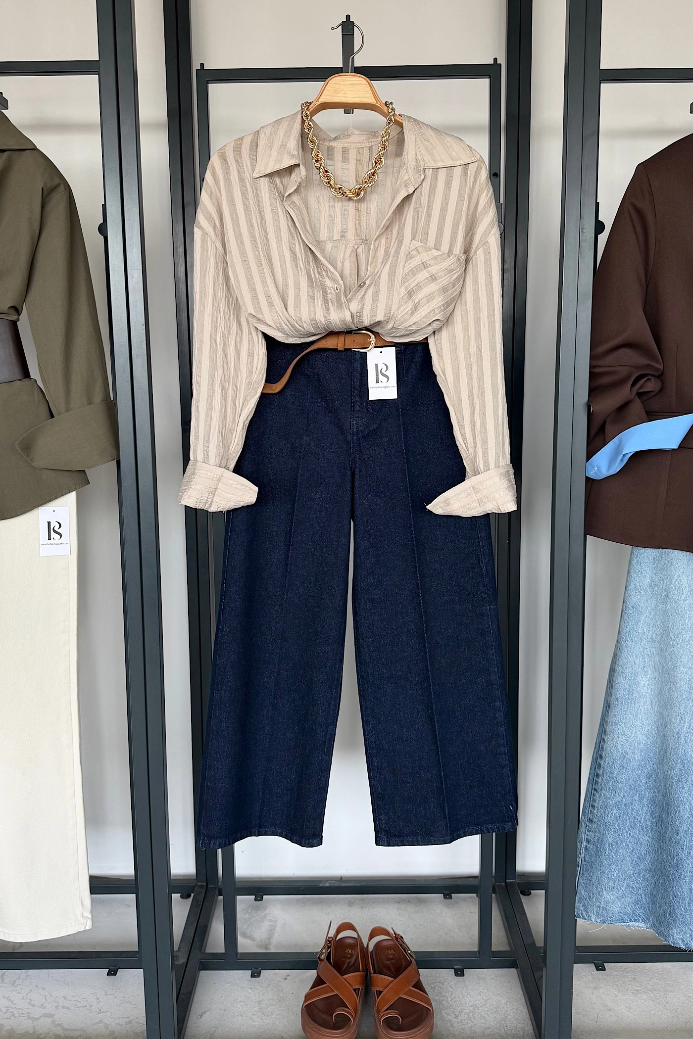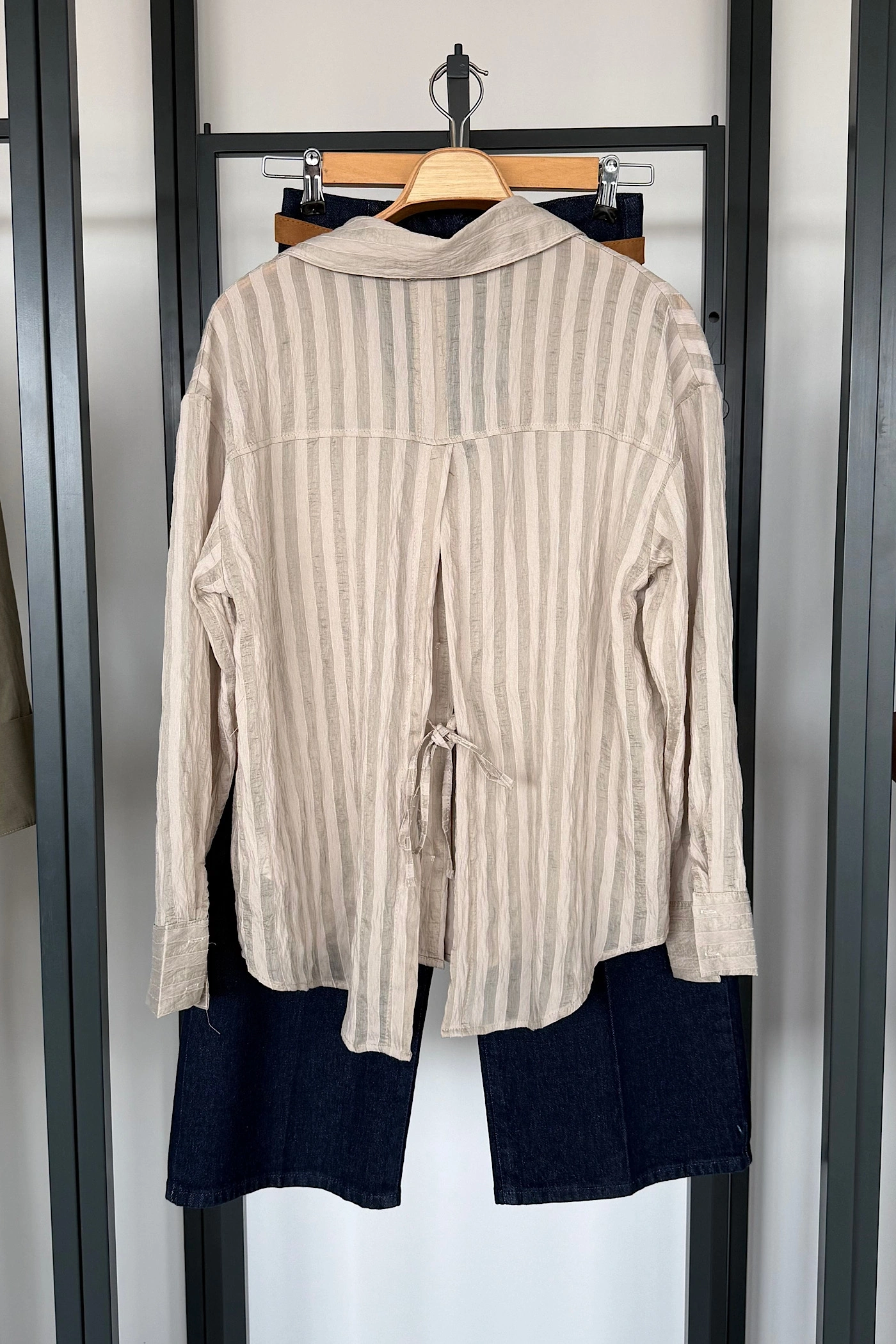 Arkası Yırtmaçlı Çizgili Gömlek Taş