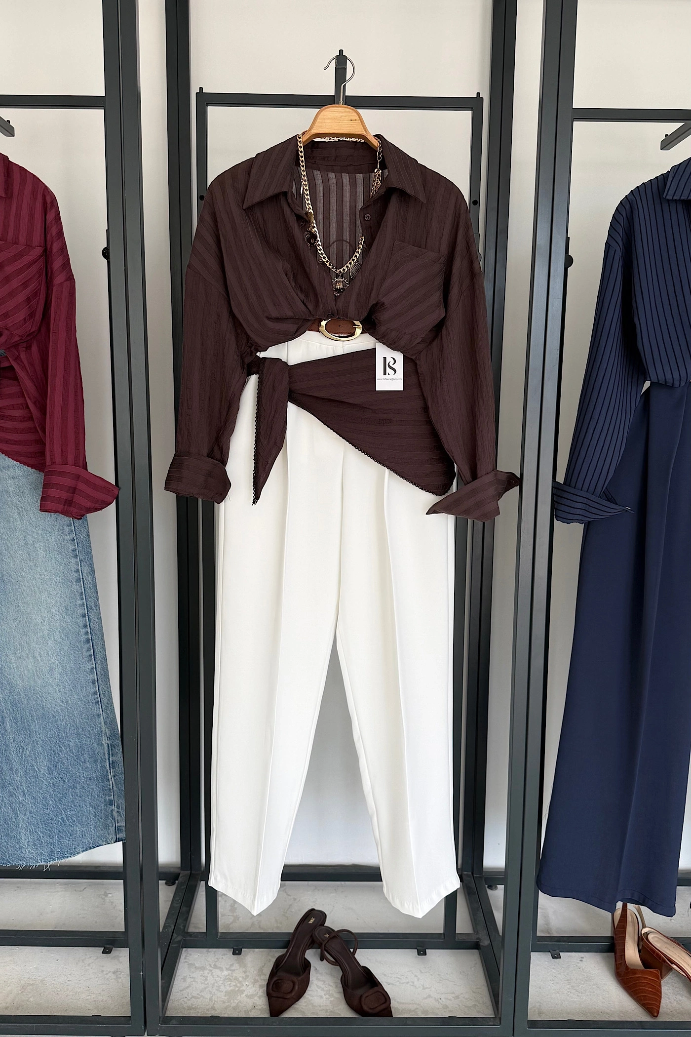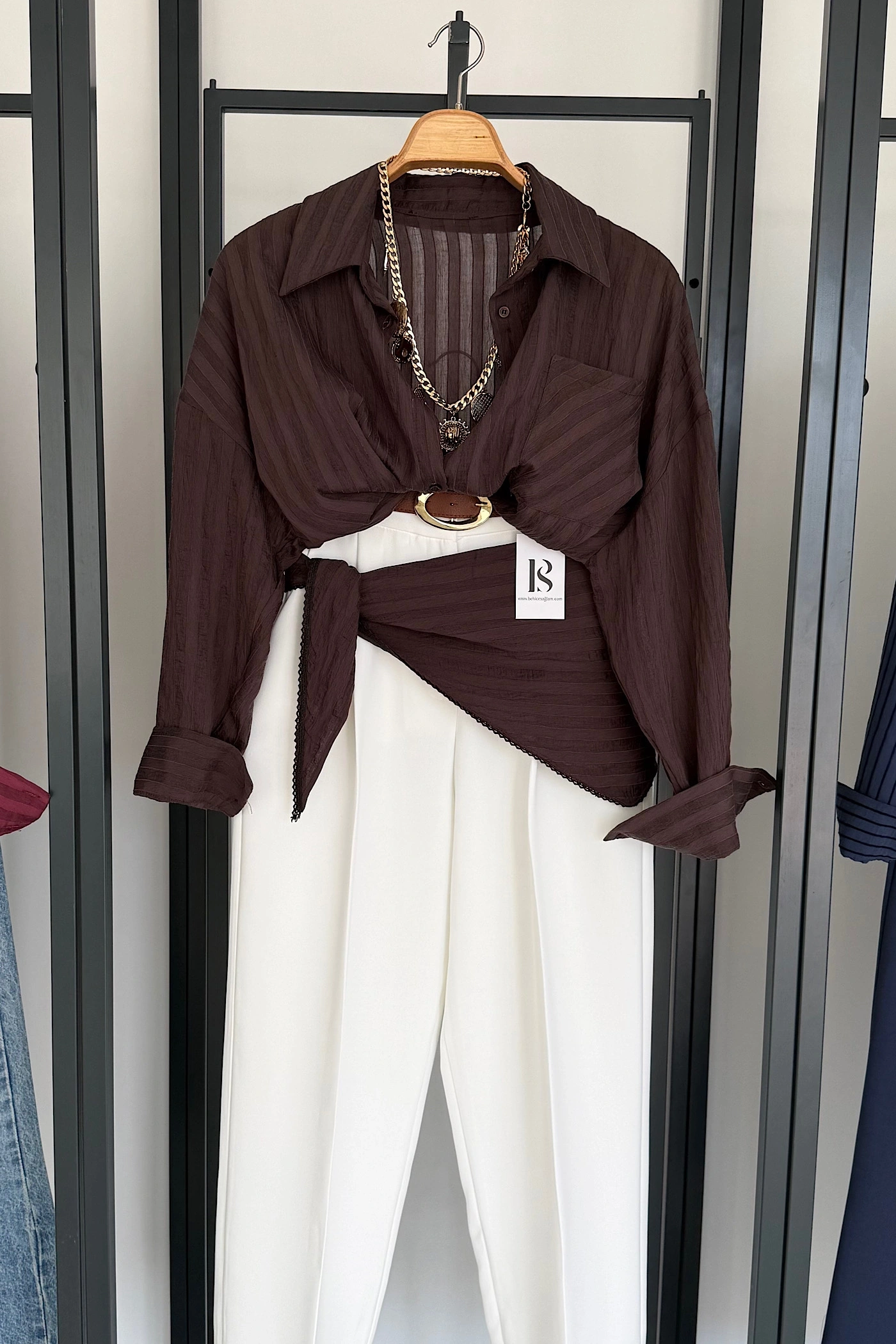 Korse Kemerli Basic Gömlek Kahverengi