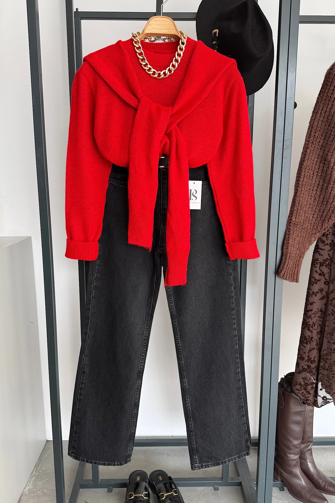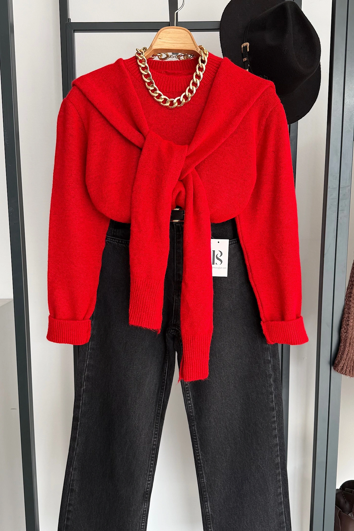 Bağlamalı Kazak Kırmızı