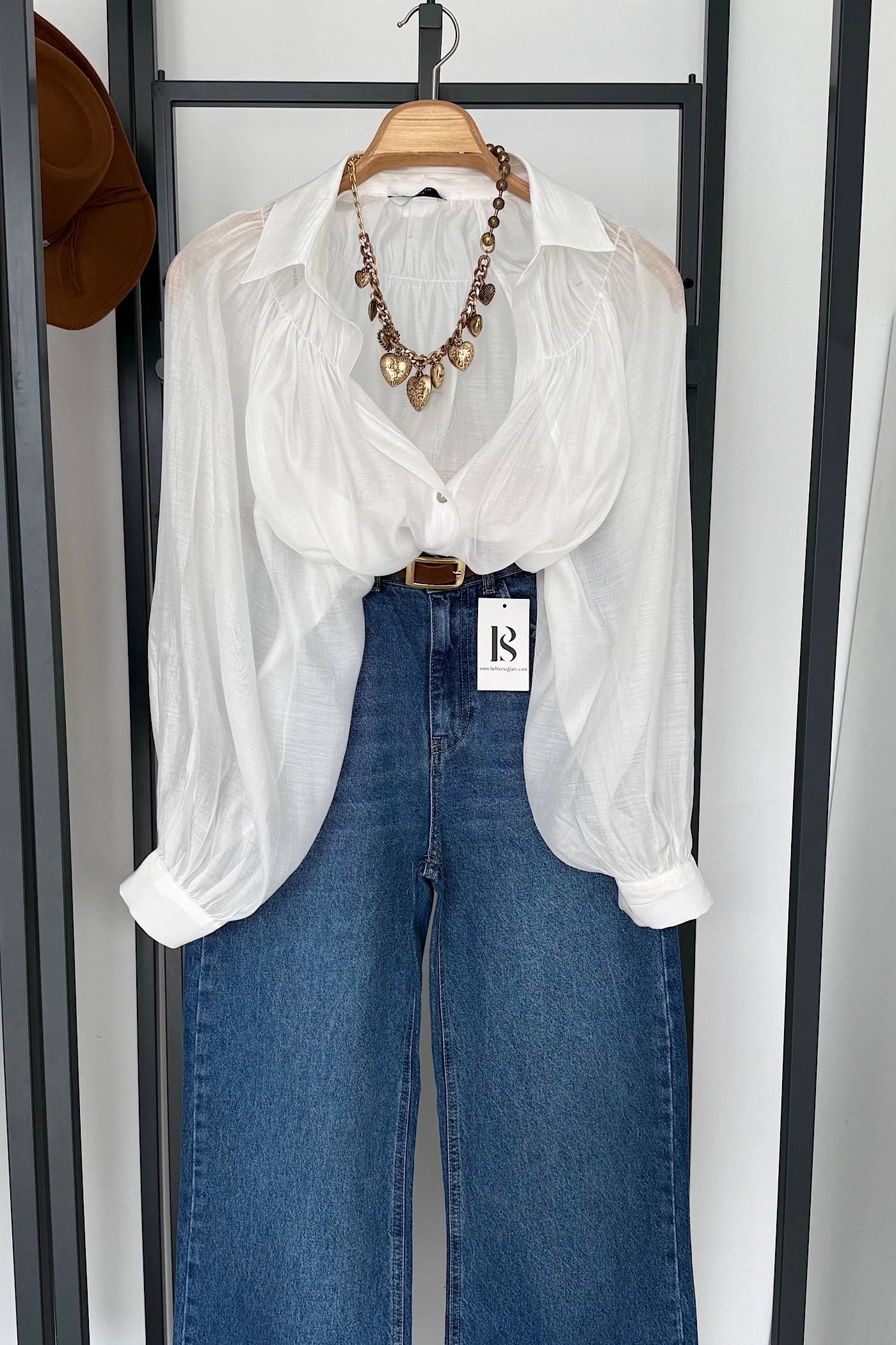 Boyun Bağlamalı Şifon Gömlek Kahve-Krem