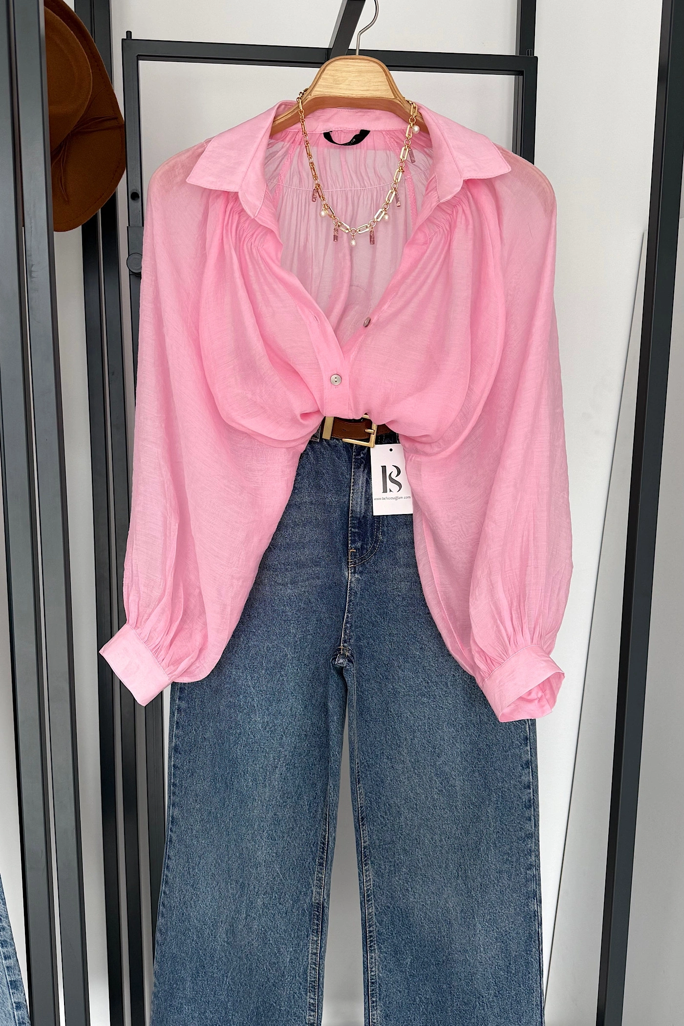 Boyun Bağlamalı Şifon Gömlek Kahve-Krem