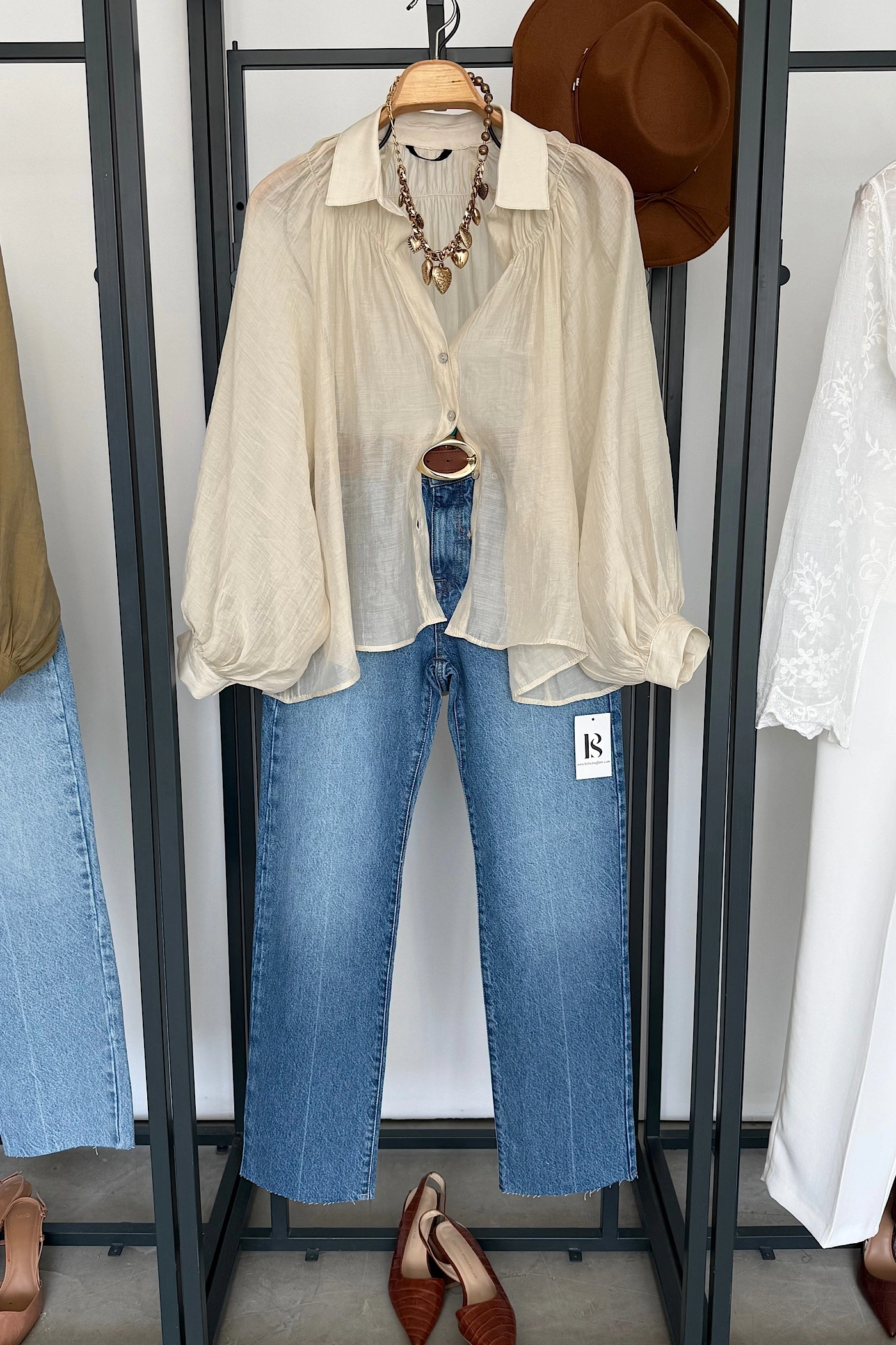 Elara Premium Nakışlı Gömlek Natural