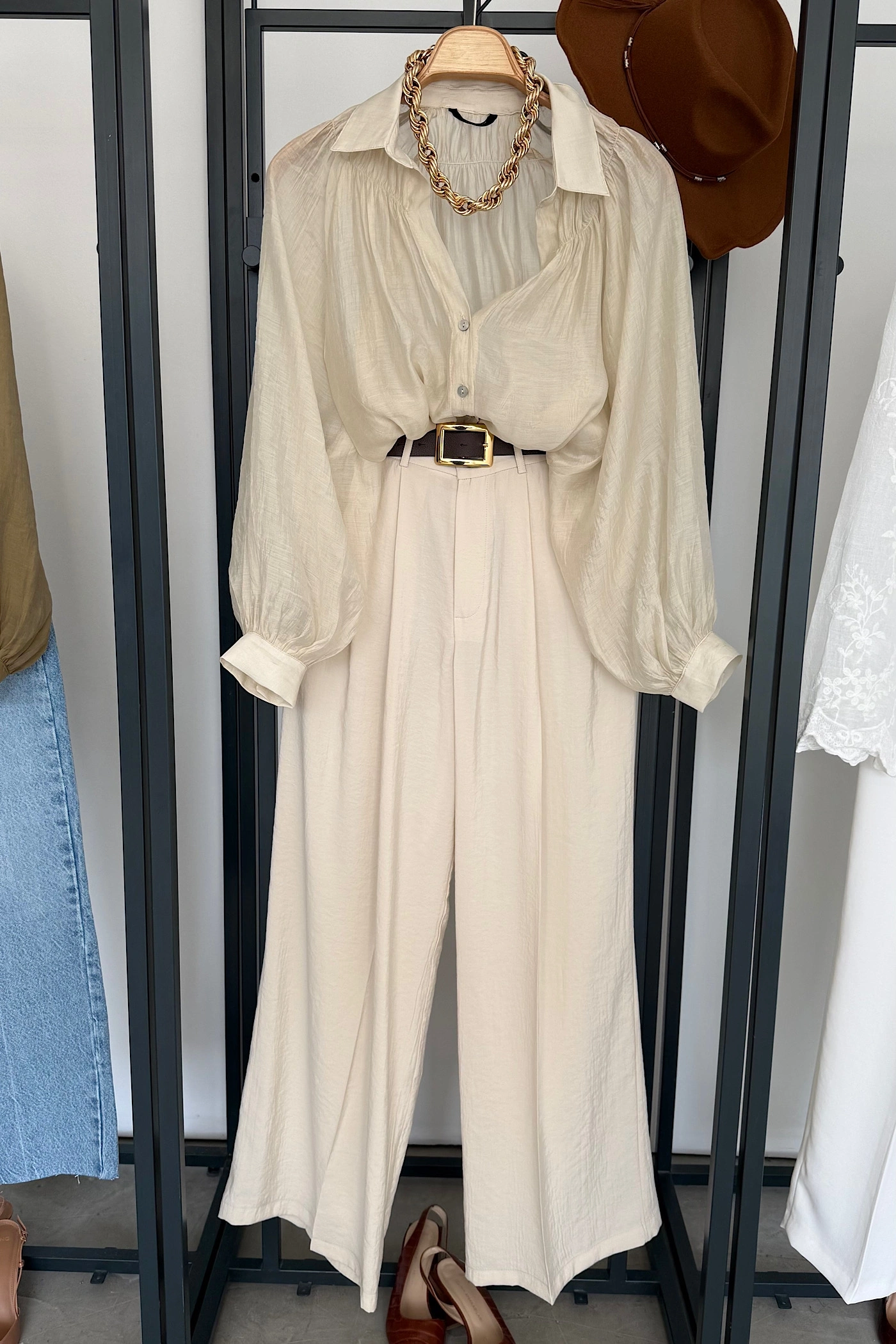 Balon Kol Dökümlü Gömlek Taş