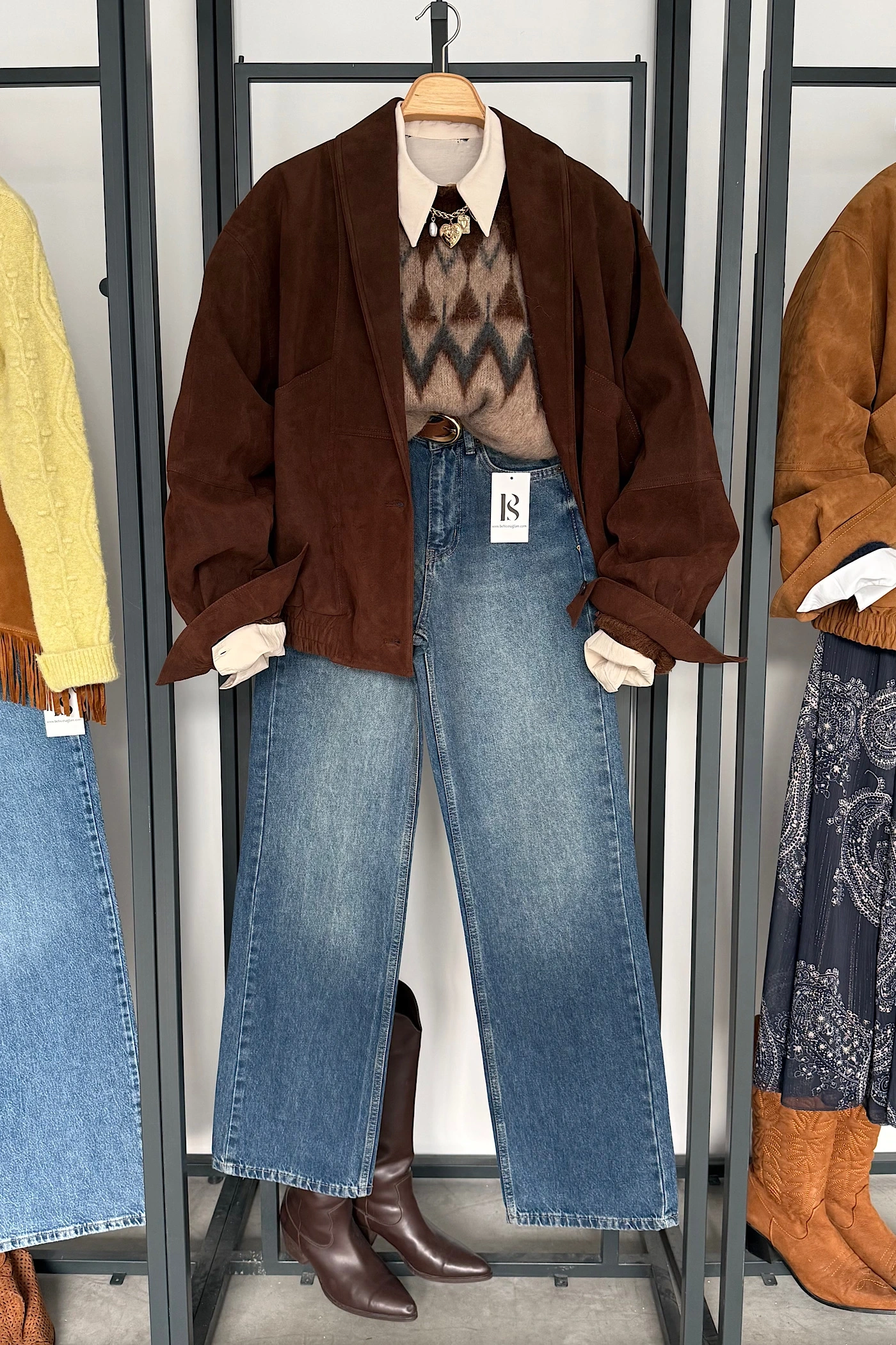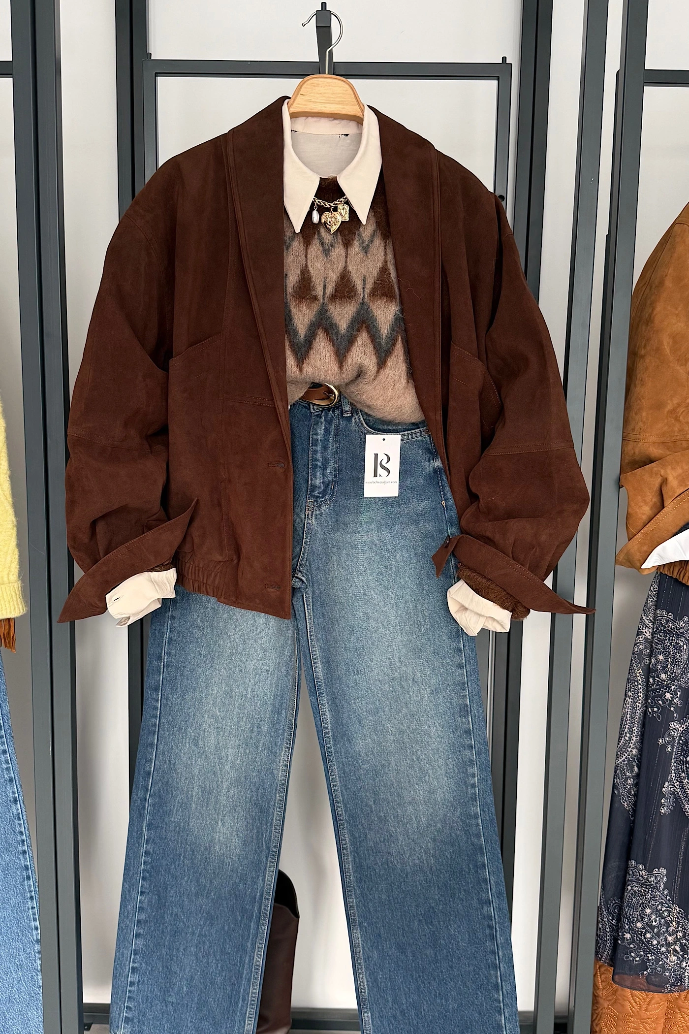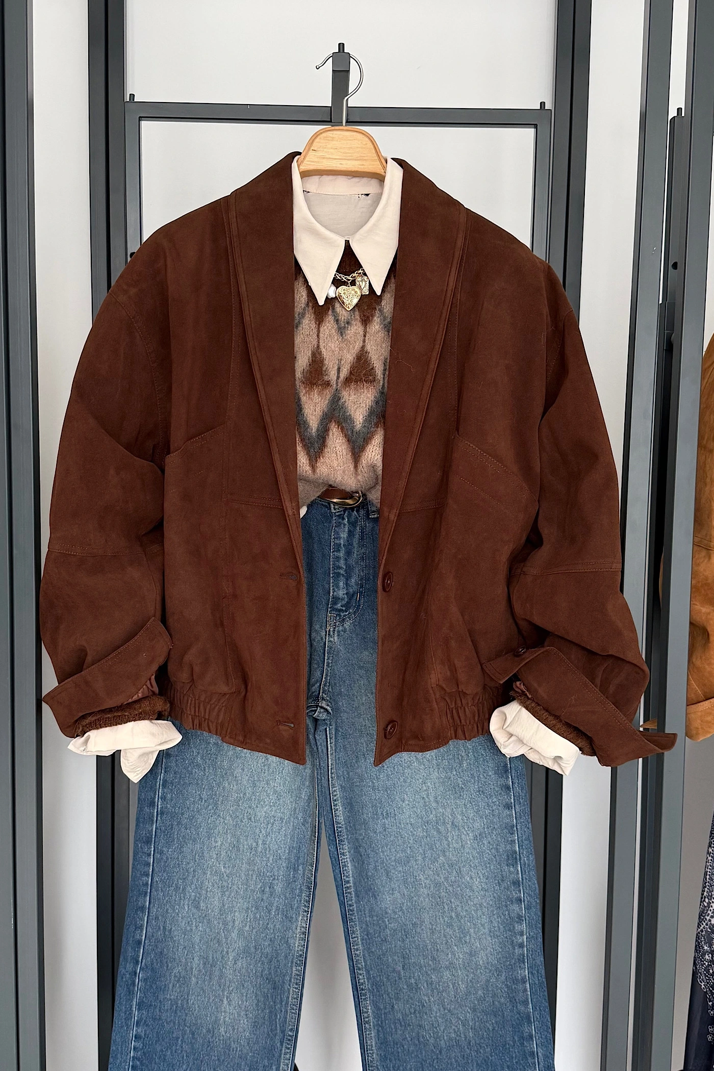 Premium Yakası Kadife Detaylı Kısa Mont Kahverengi