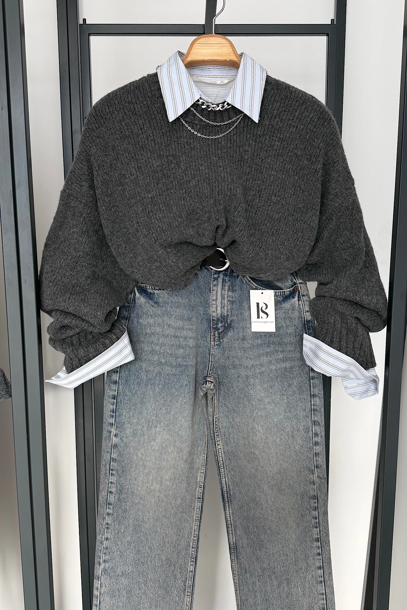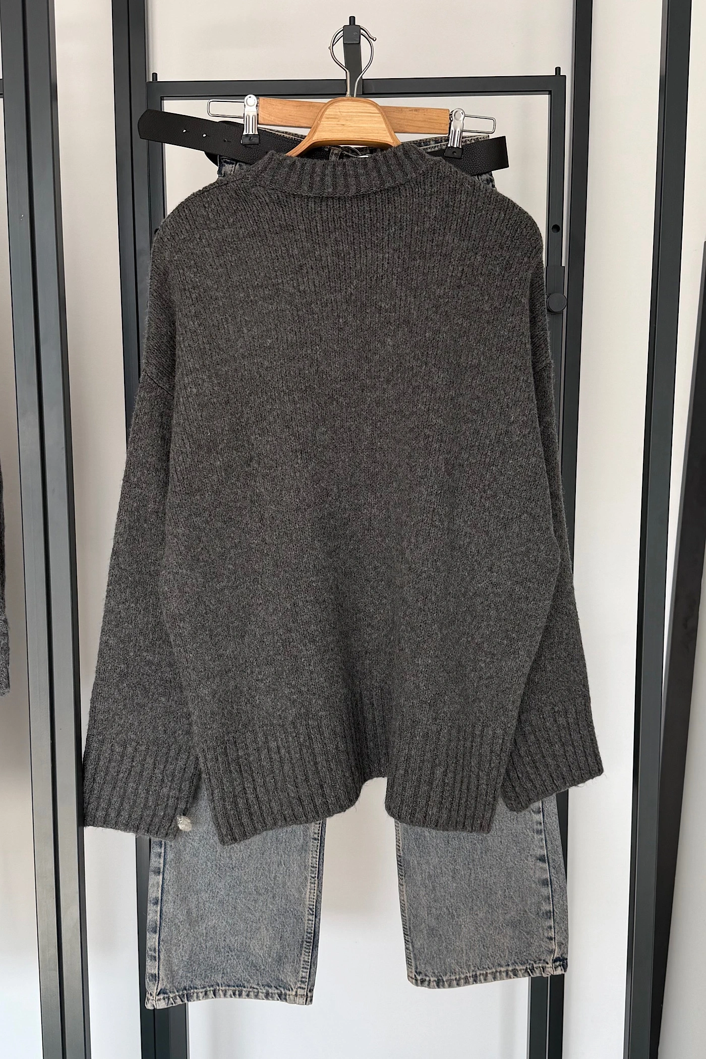 Saç Örgü Fermuarlı Kazak Açık Bej