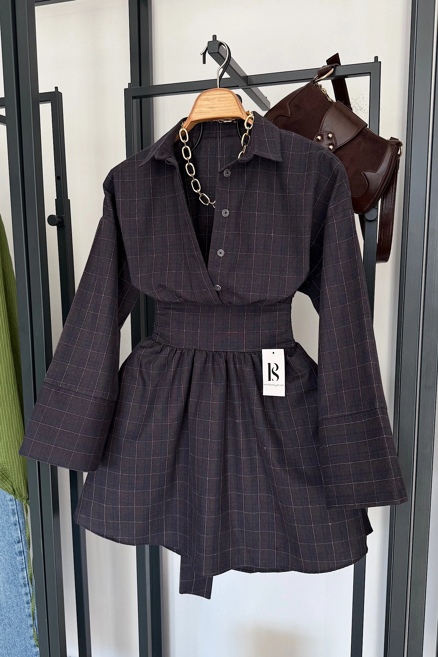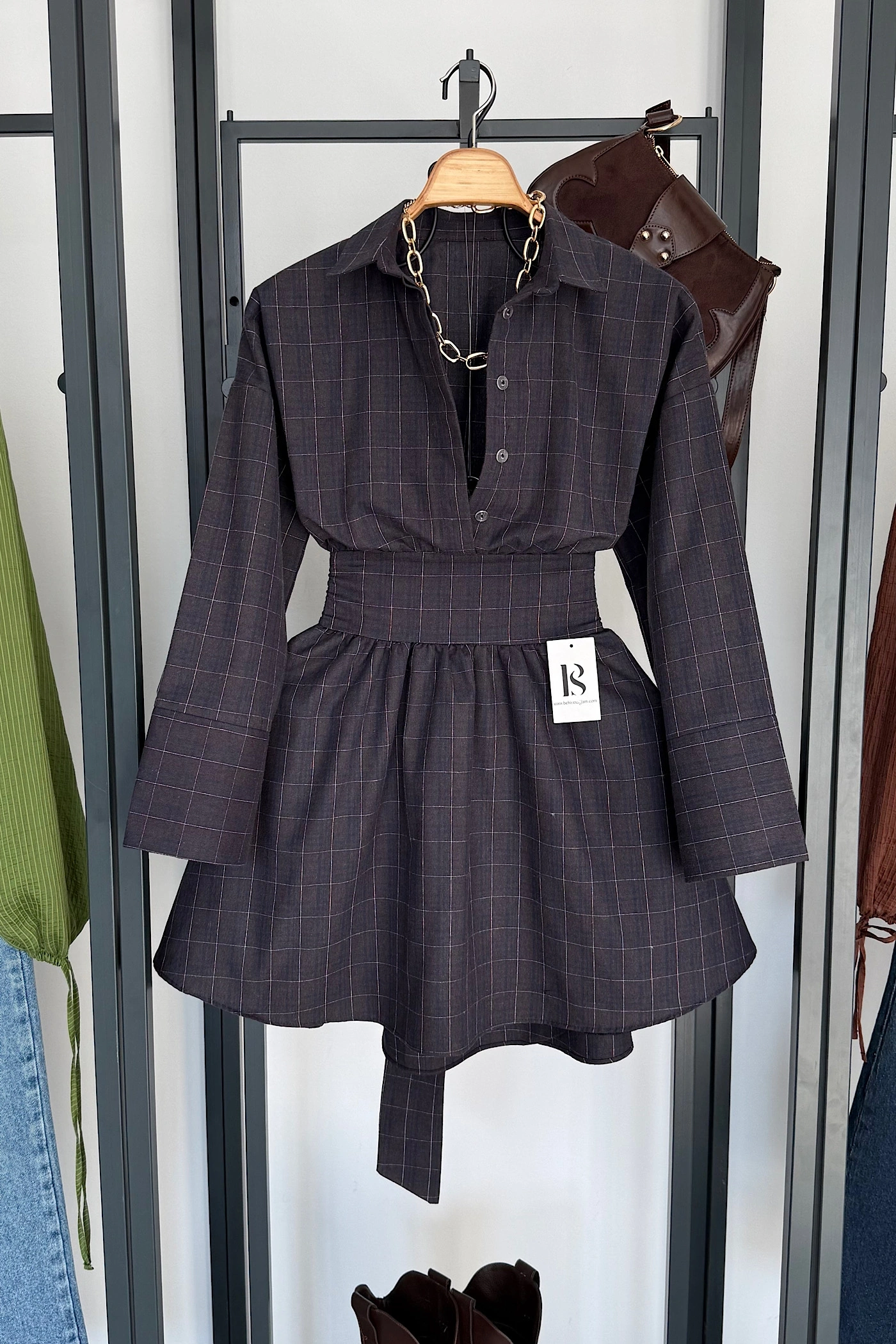 Kemer Detaylı Elbise Kahverengi