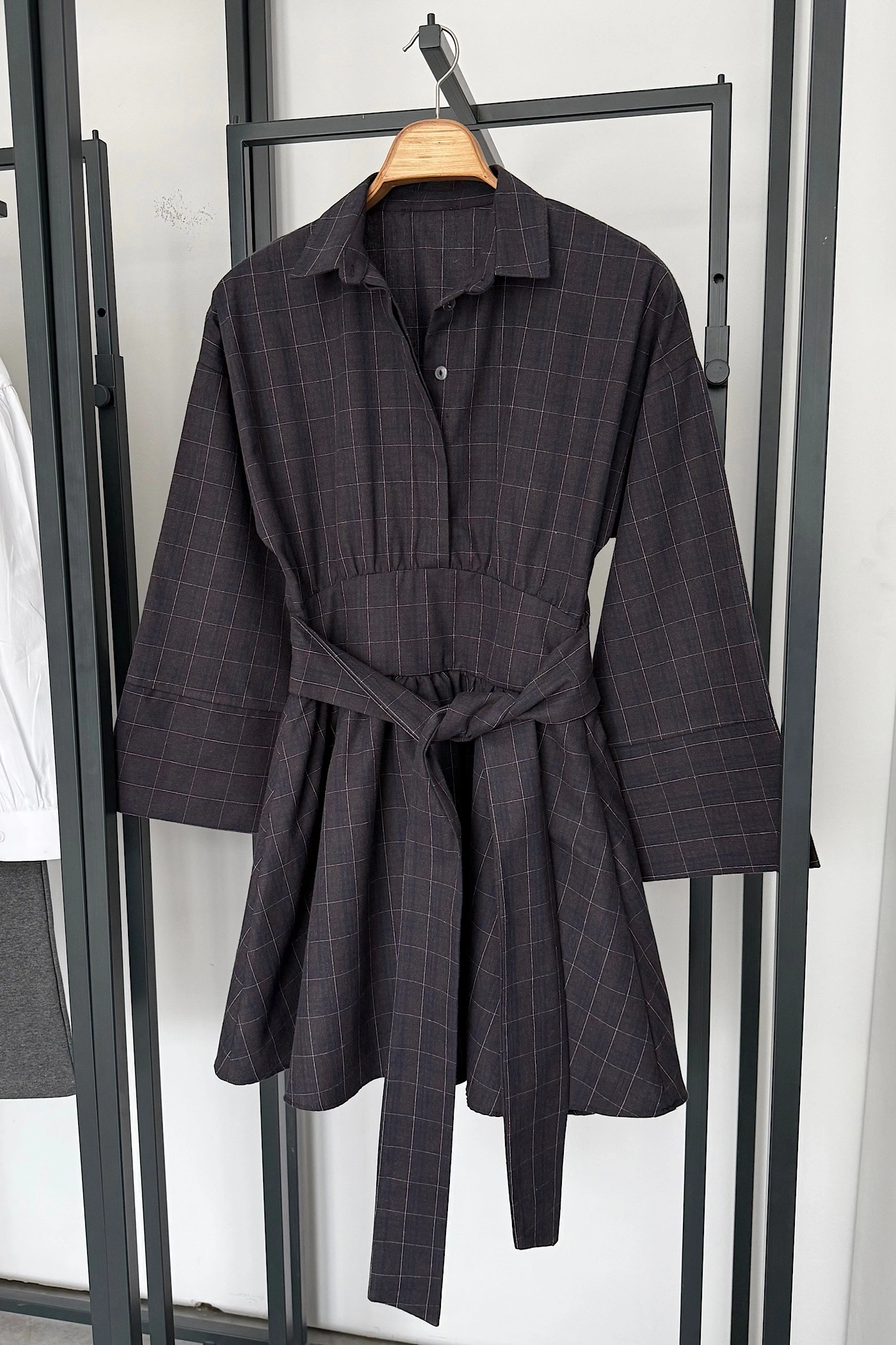 Bel Korse Detaylı Gömlek Elbise Lacivert