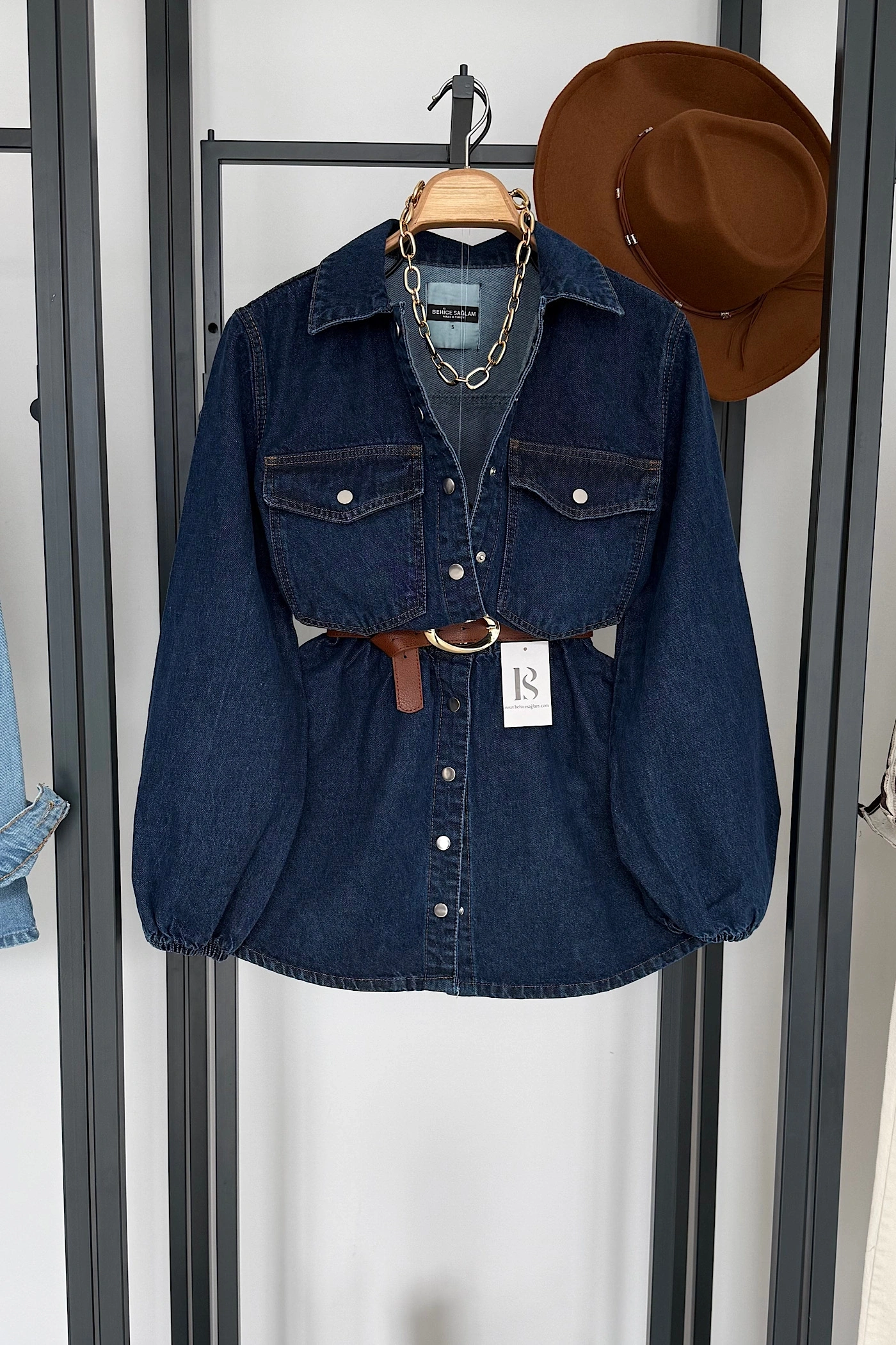 Cepli Çizgili Oversize Gömlek Kahve-Taş