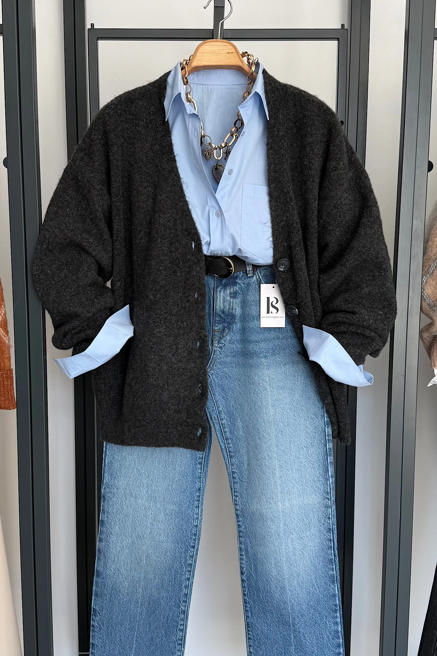 Beş Düğmeli Basic Hırka Gri
