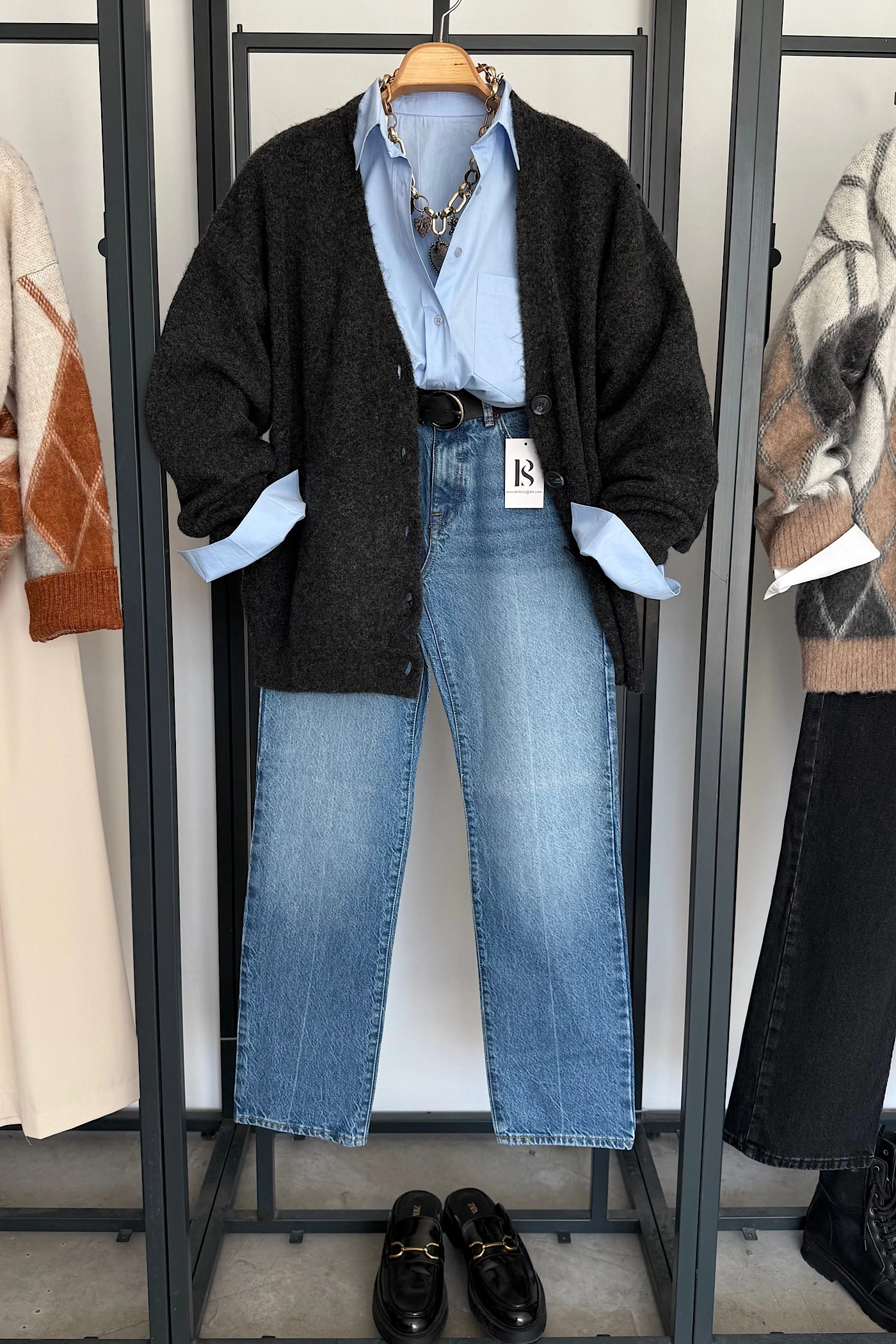 Beş Düğmeli Basic Hırka Antrasit