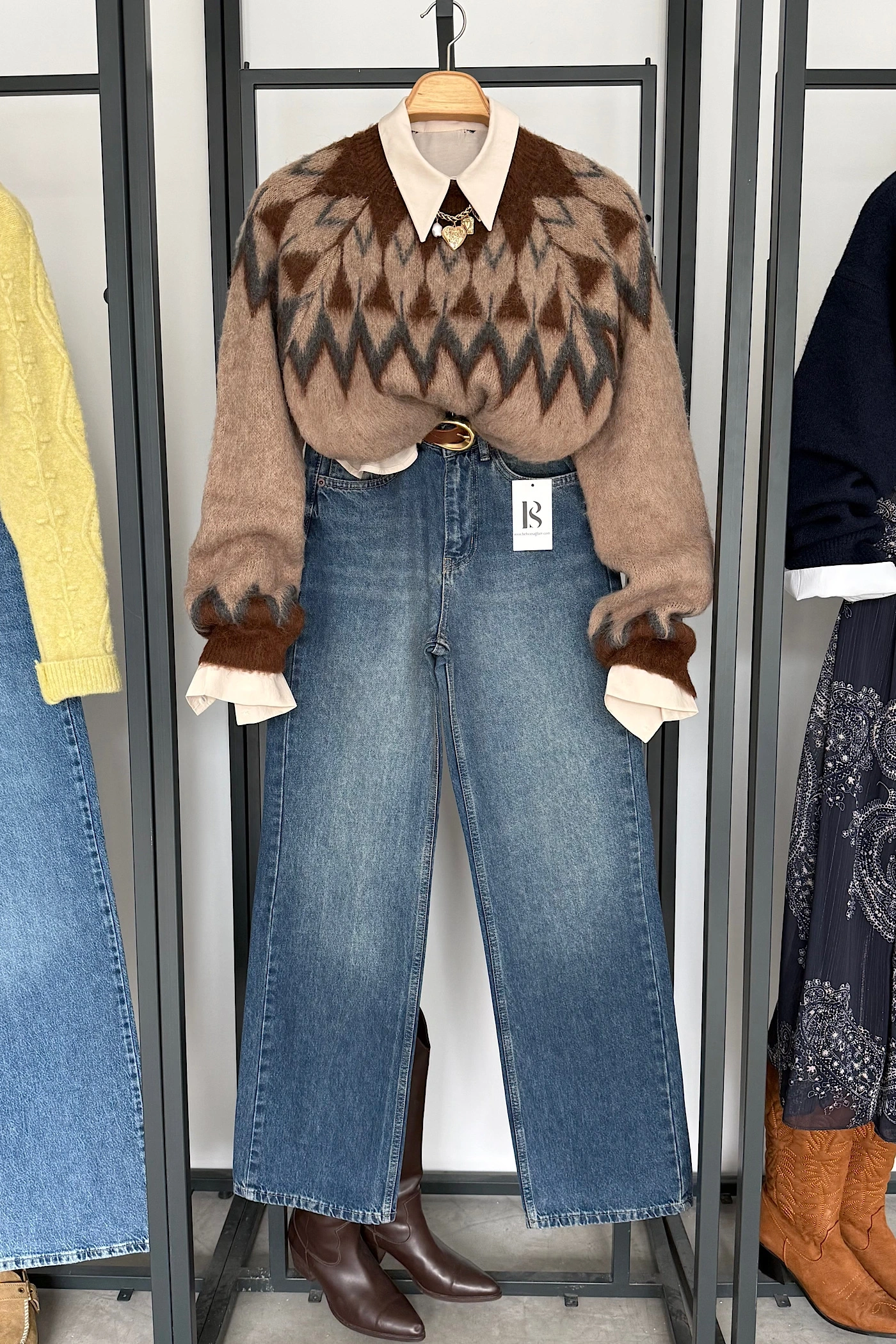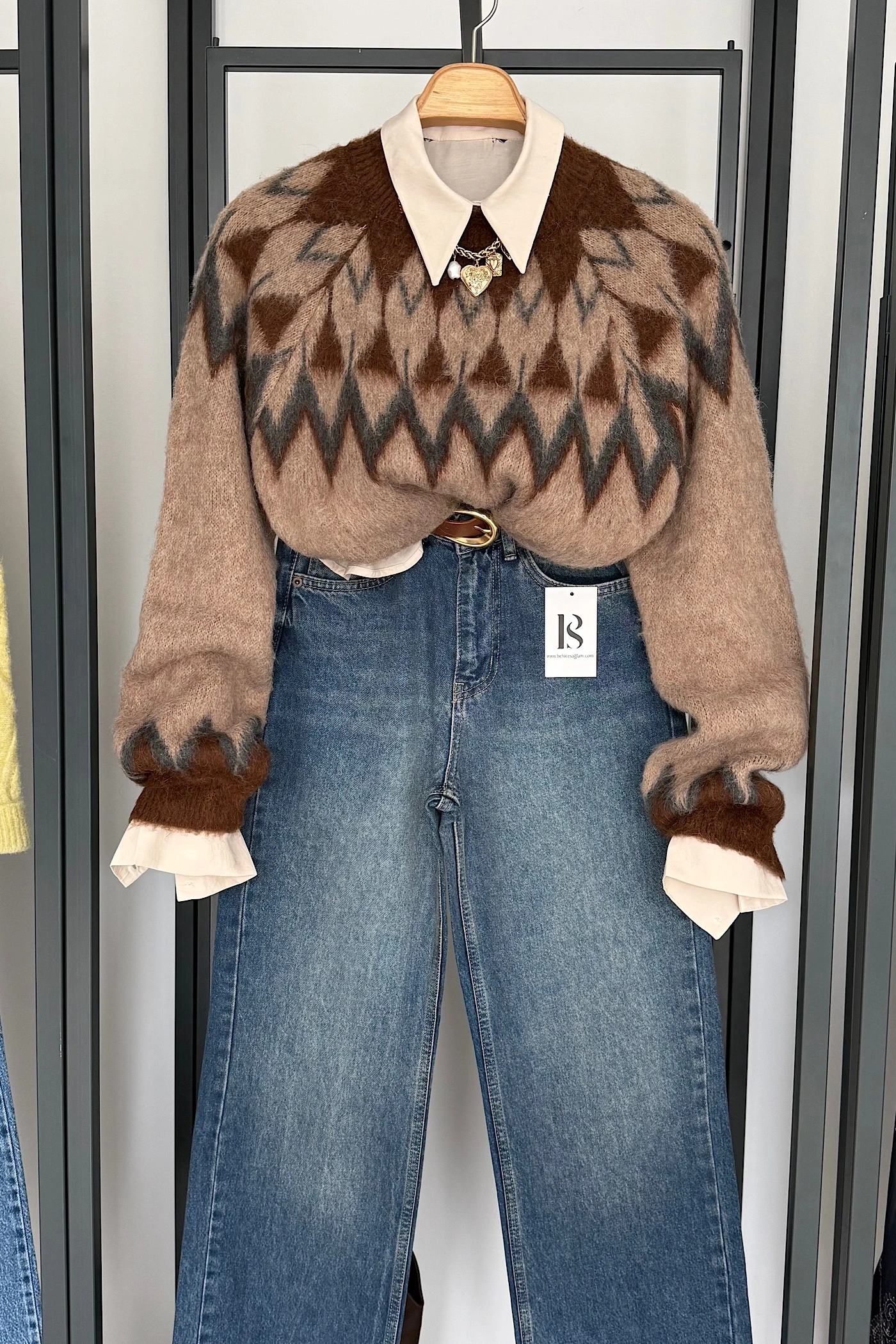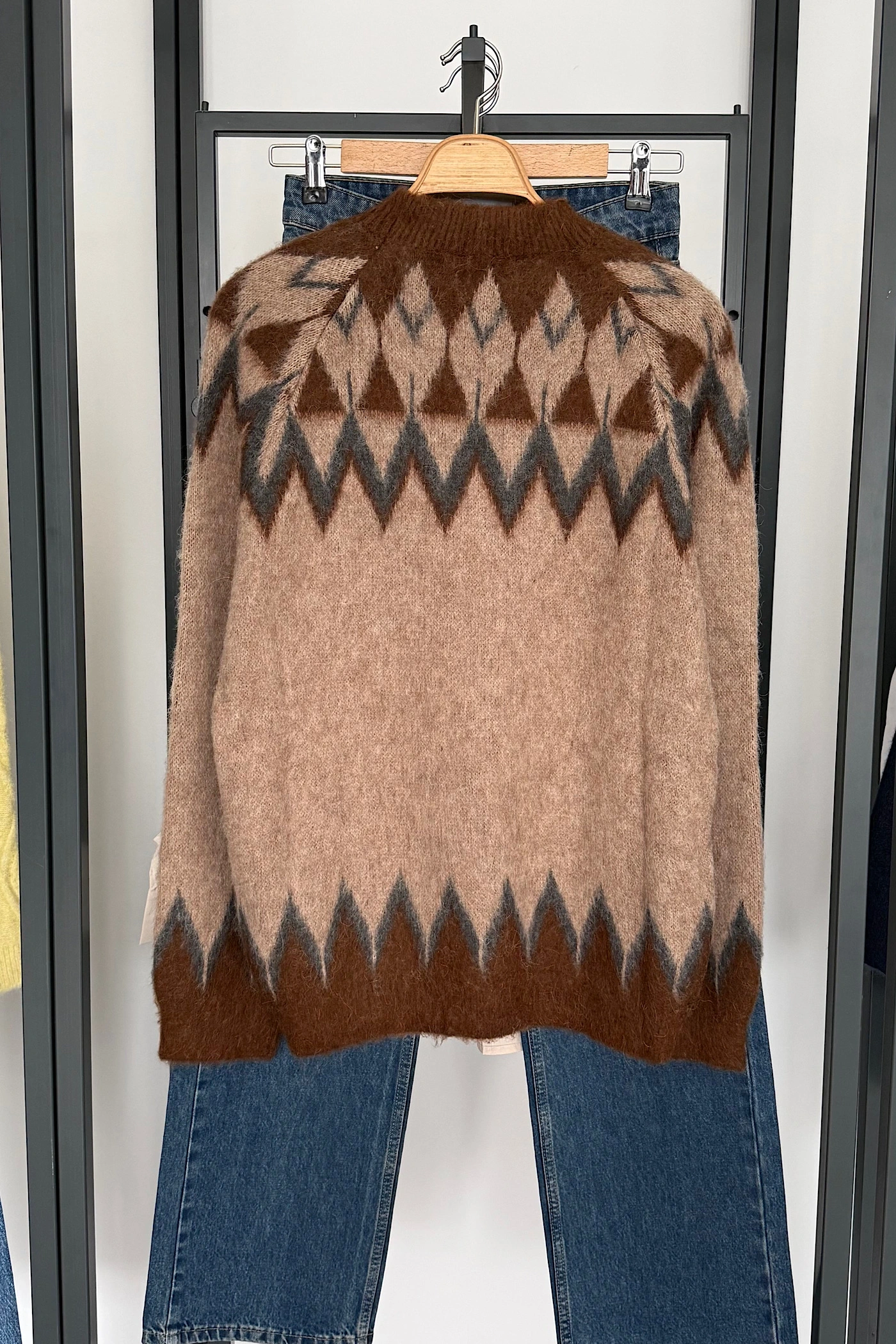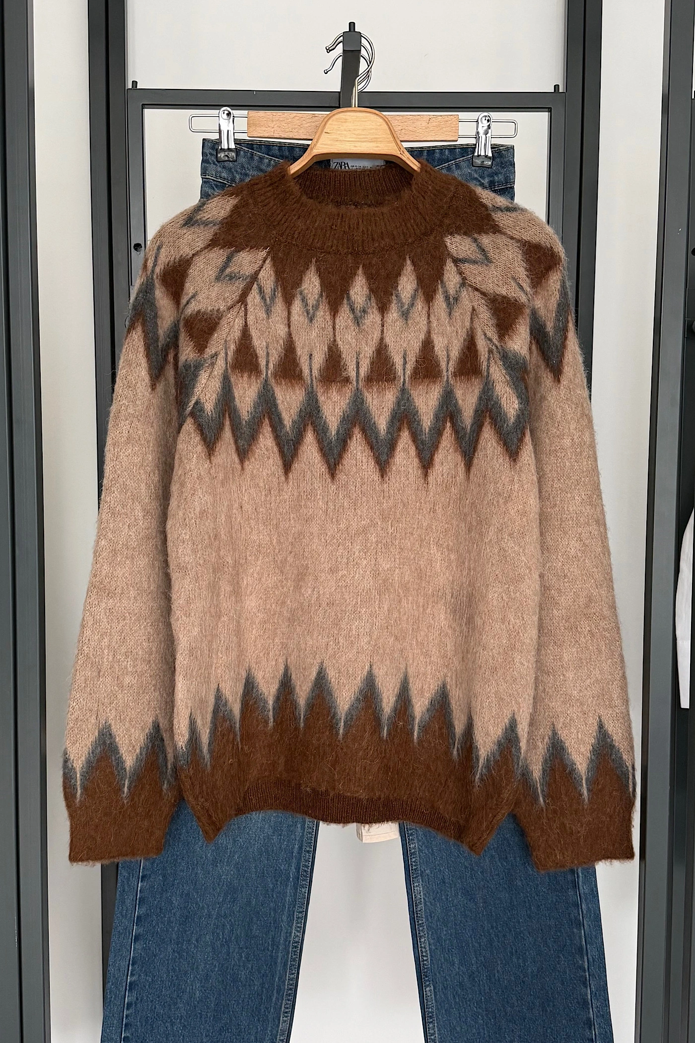 Şardonlu Alpaka Karışımlı Triko Kazak Kahverengi