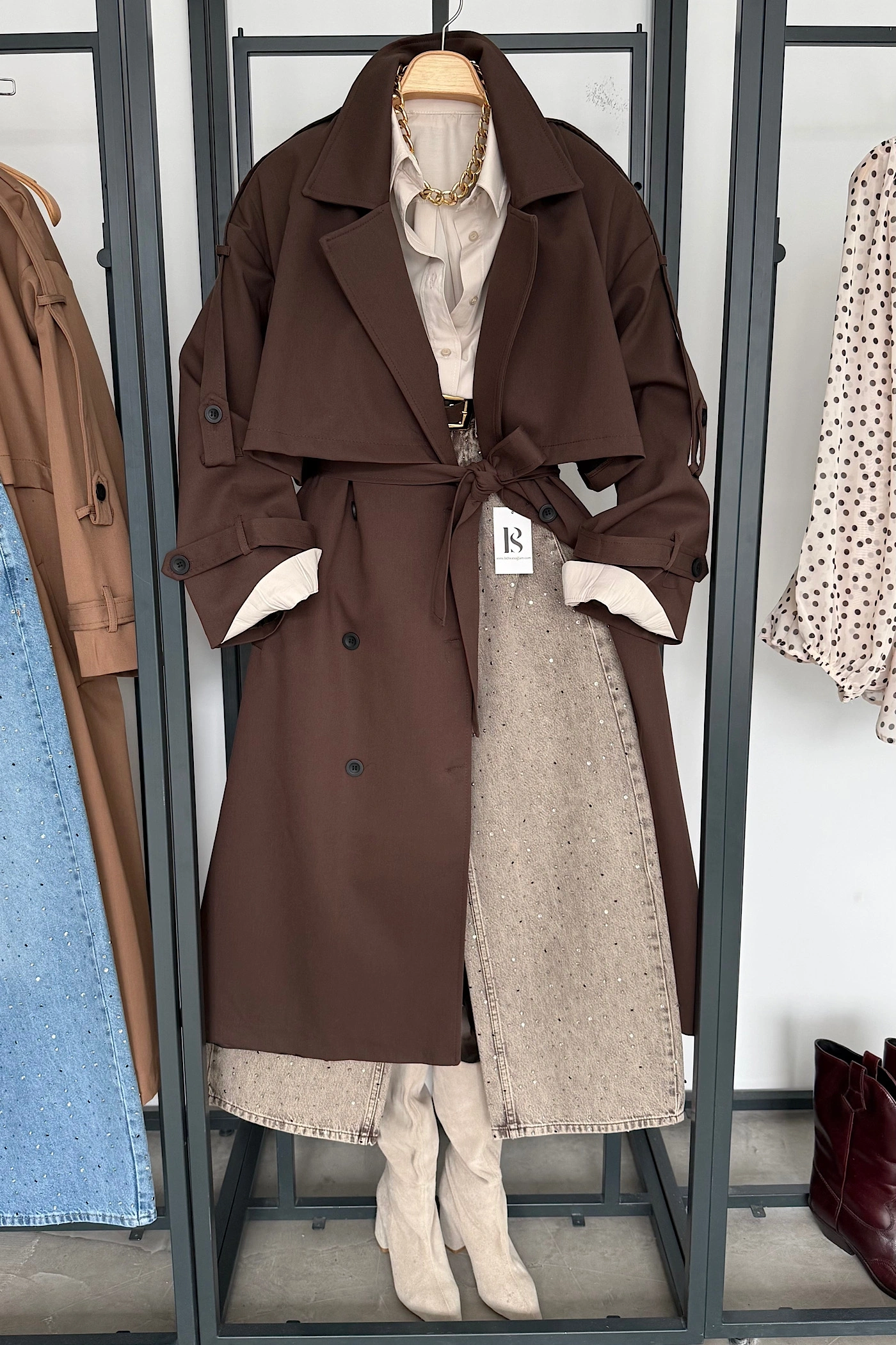 Kadife Detaylı İçi Kürklü Parka Mont Yeşil