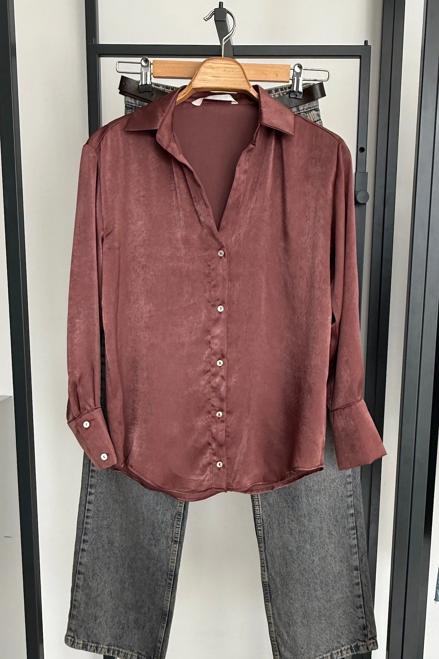 Baklava Desen Madonna Yaka Kazak Kahverengi