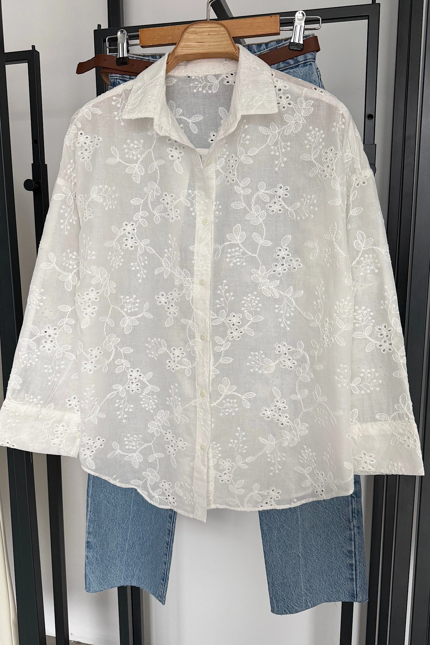 Dökümlü Tensel Oversize Gömlek Beyaz