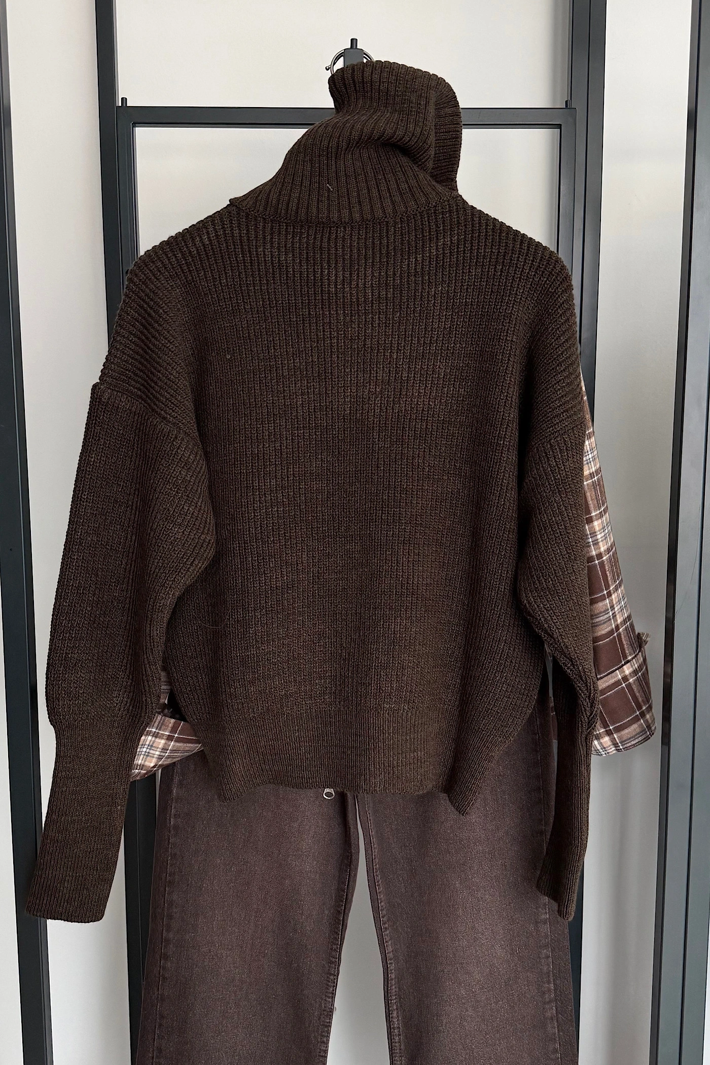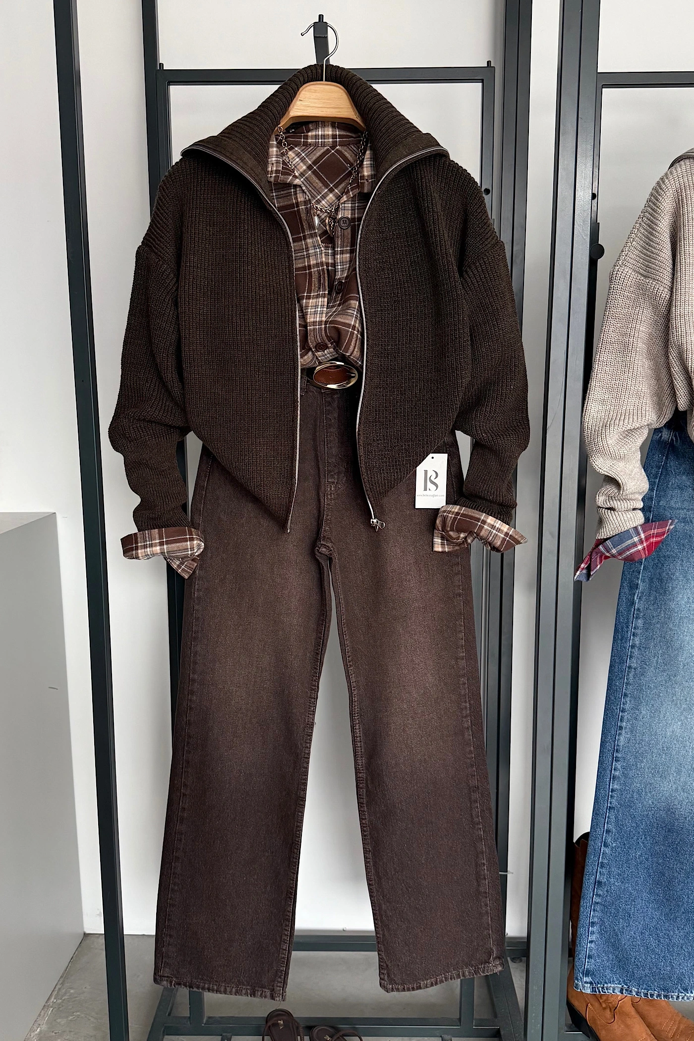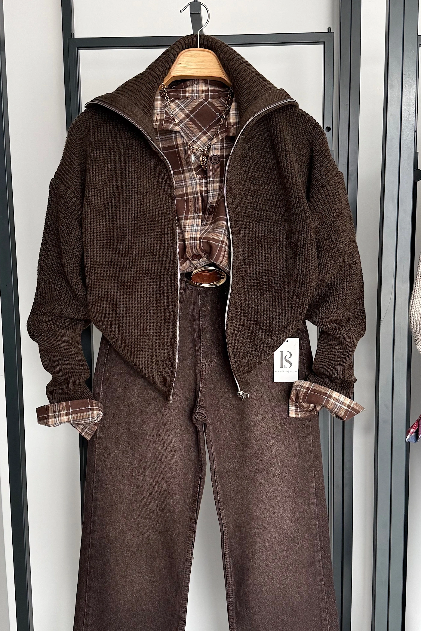 Ekose Astarlı Torba Cepli Ceket Kahverengi