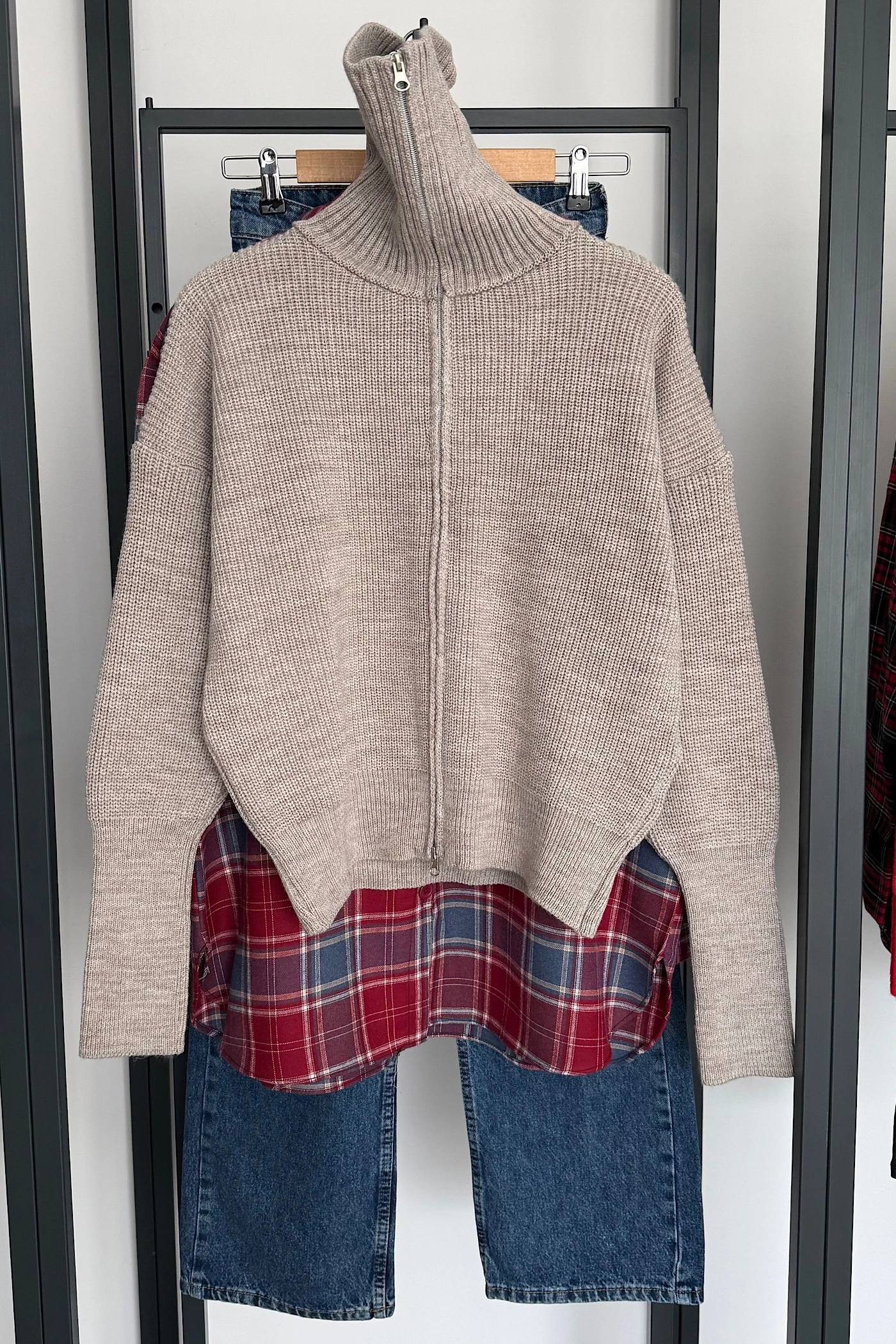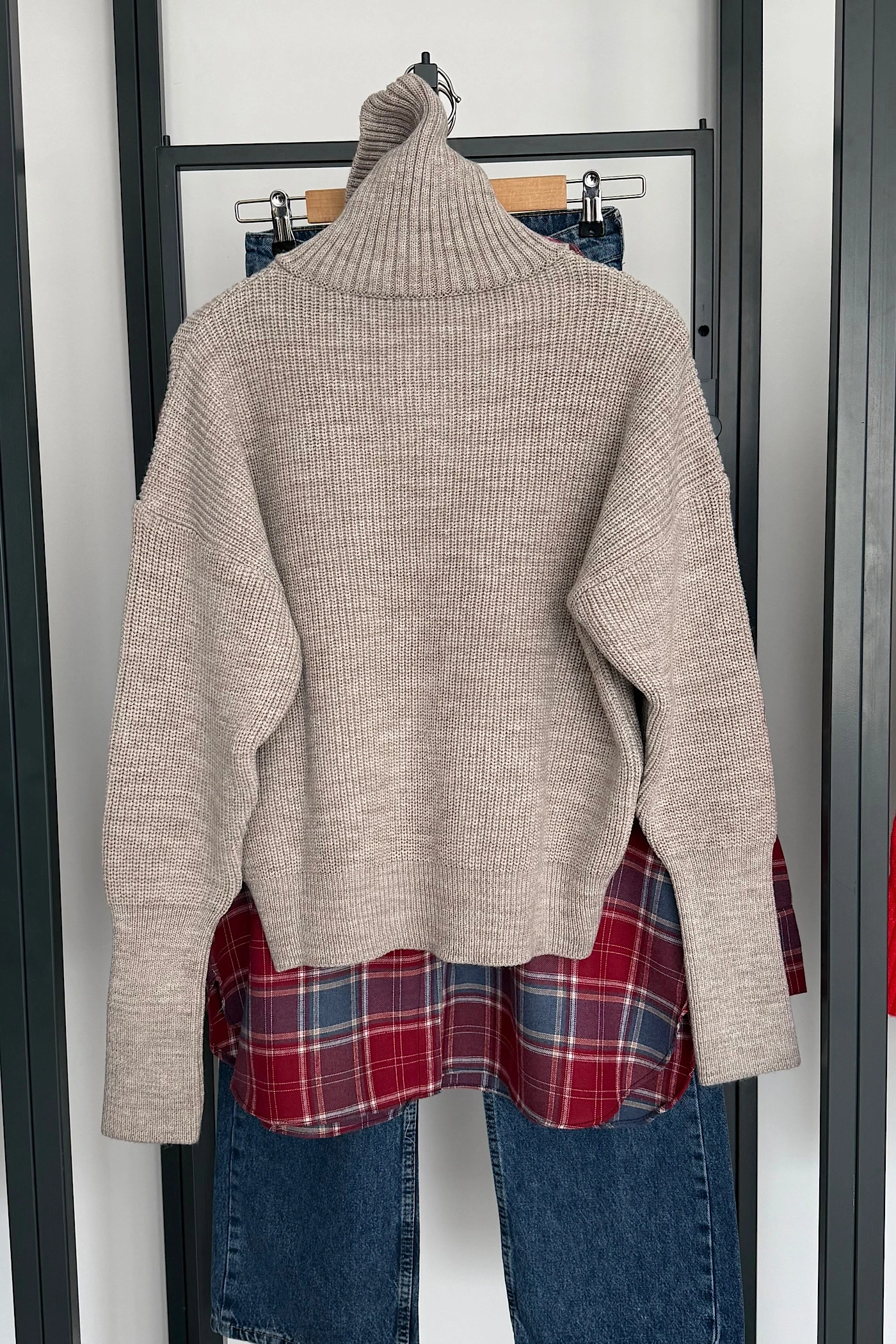 Kroşetalı Kıvırak Peluş Ceket Camel