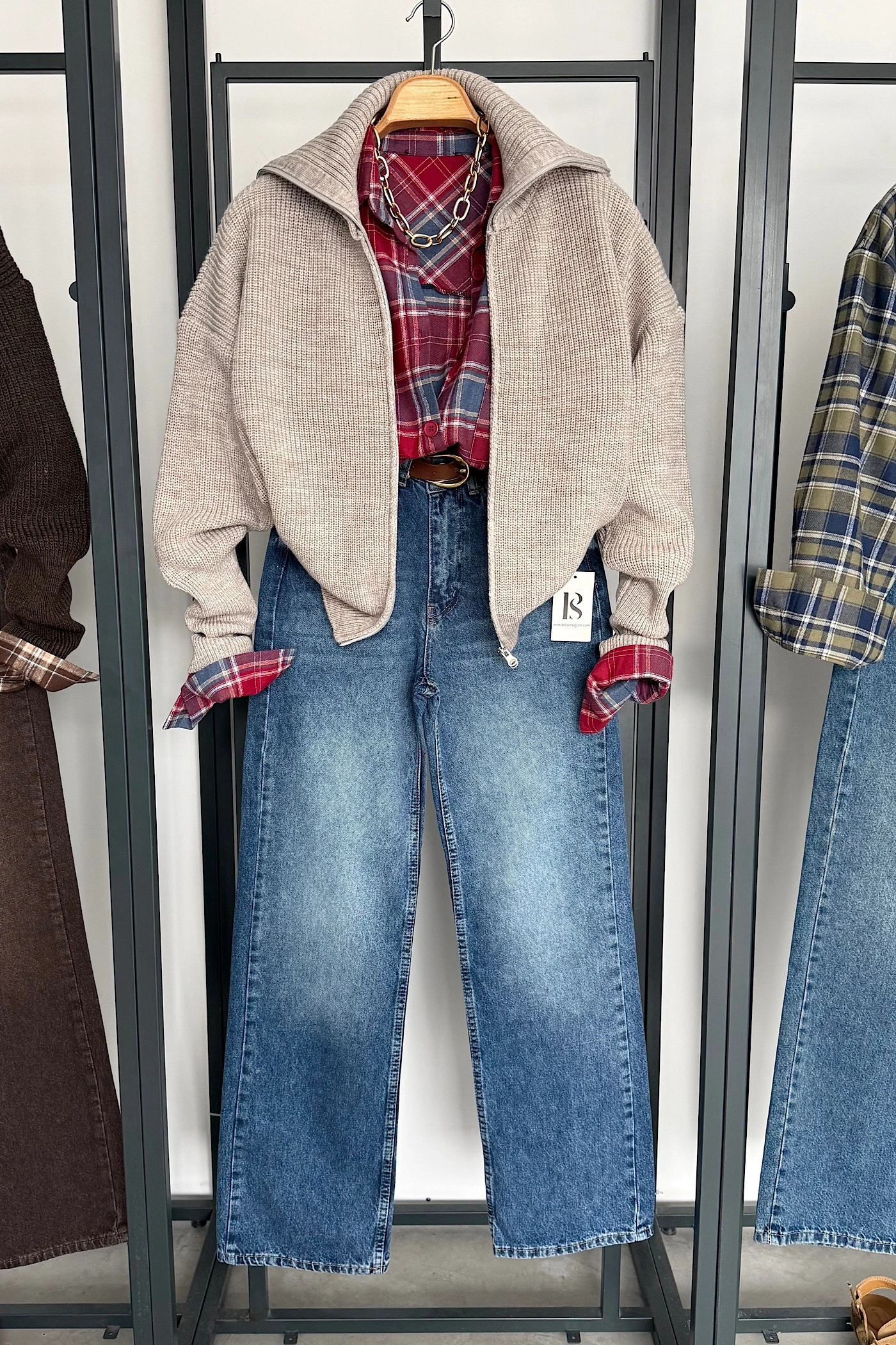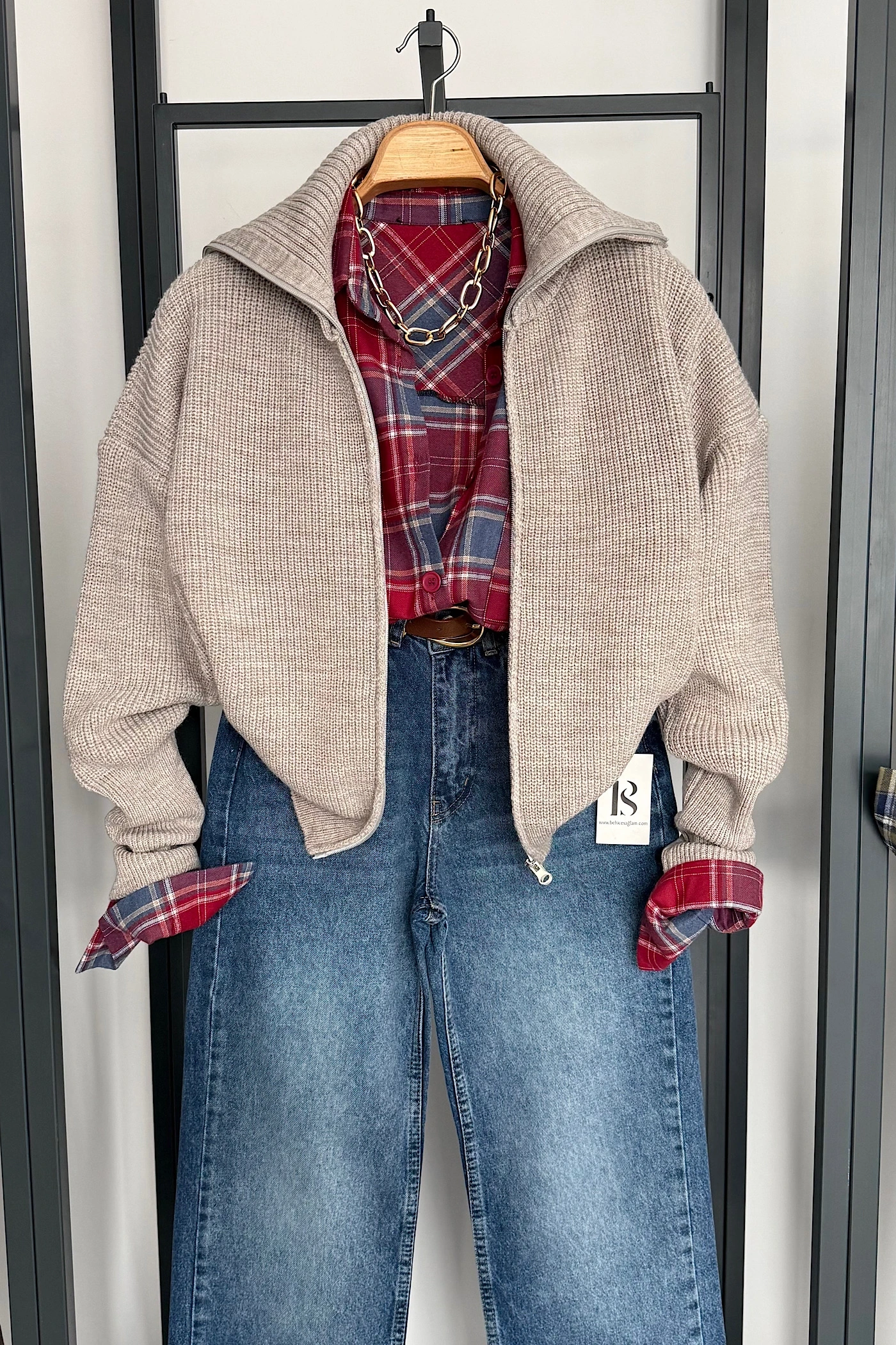Ekose Astarlı Torba Cepli Ceket Kahverengi