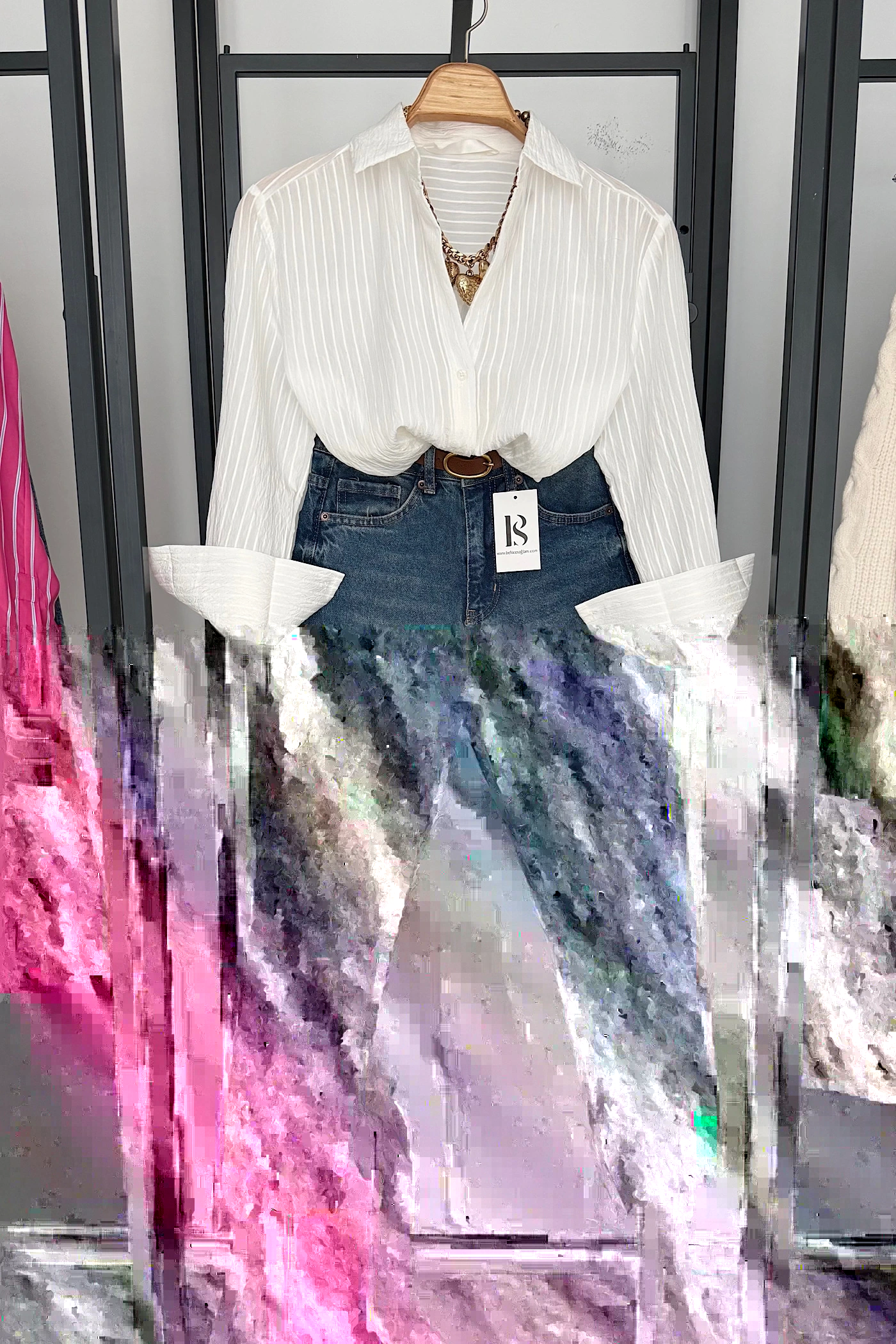 Yakası Kot Kazak Koyu Kahve-Mavi