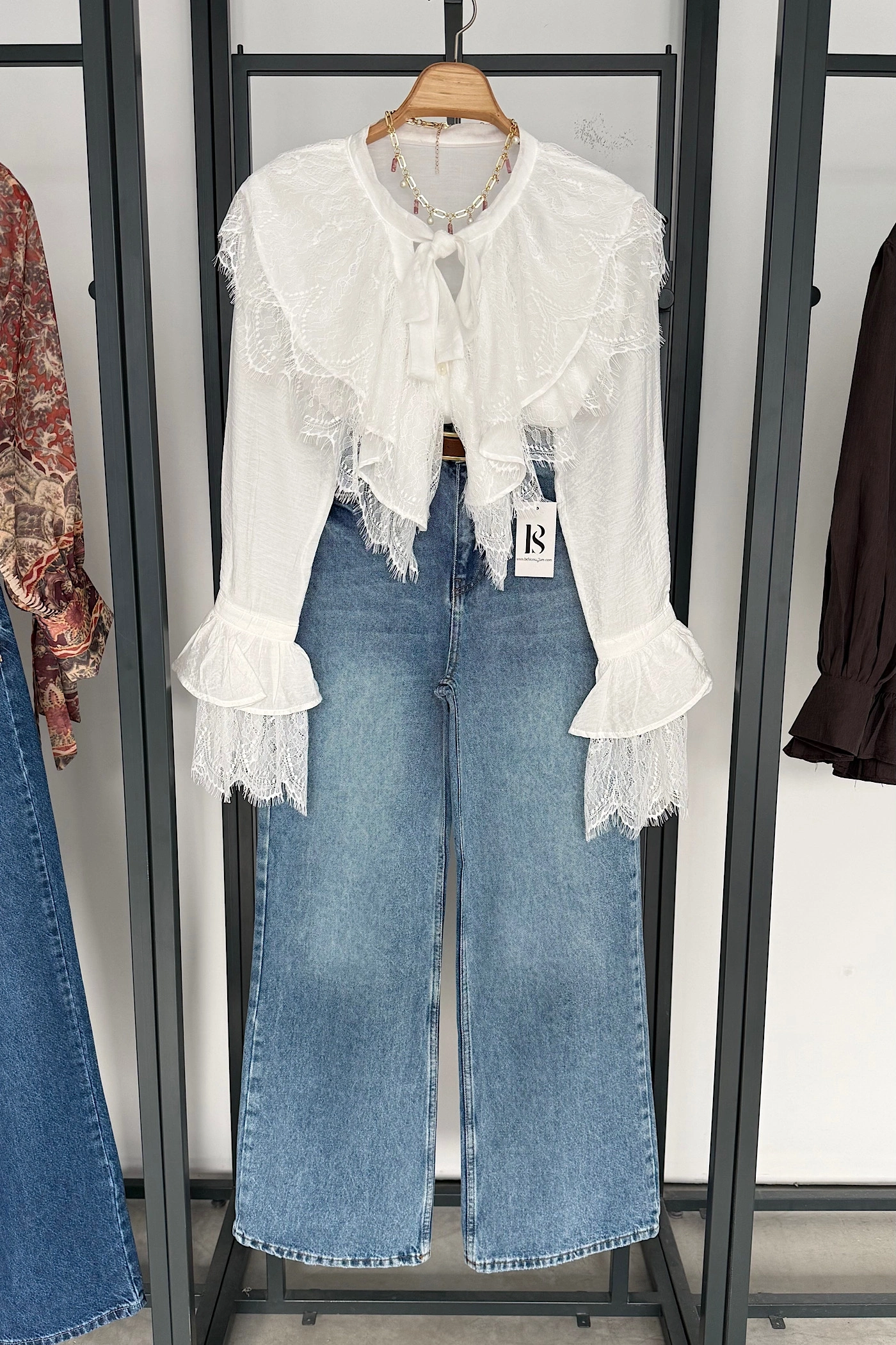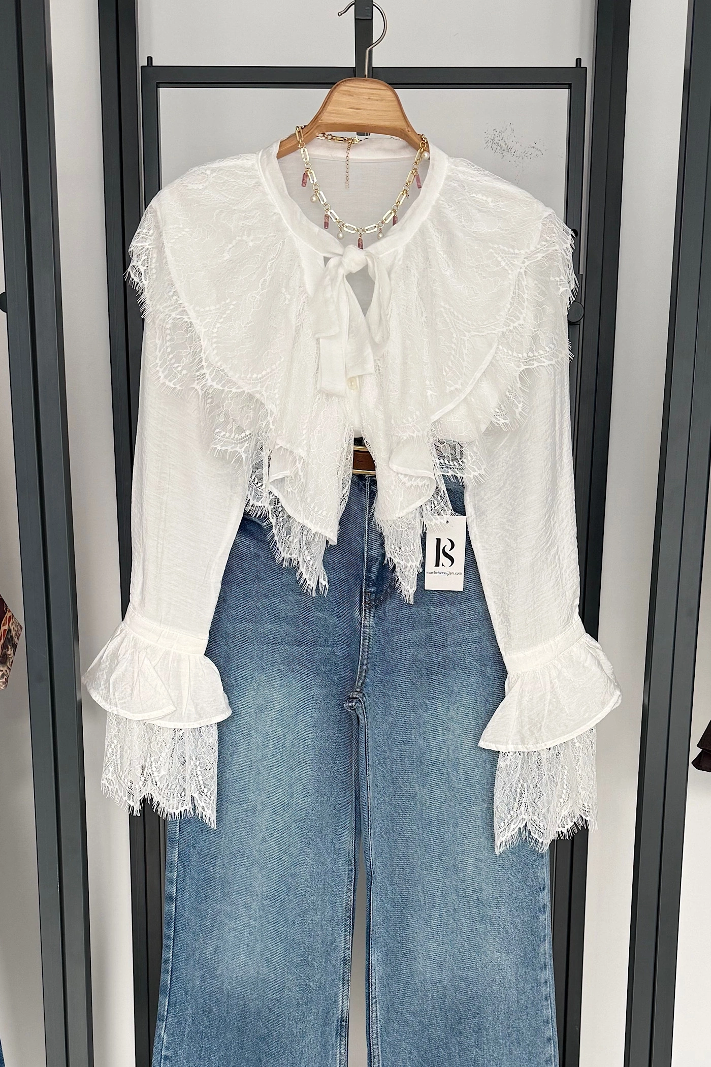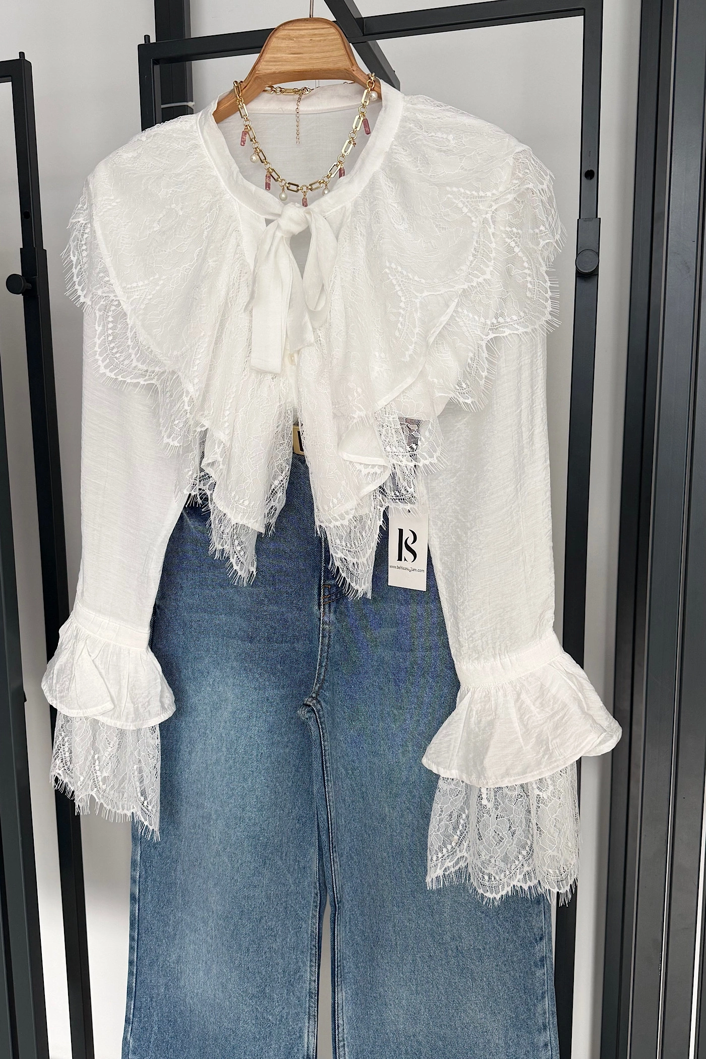 Dantelli Fransız Gömlek Beyaz