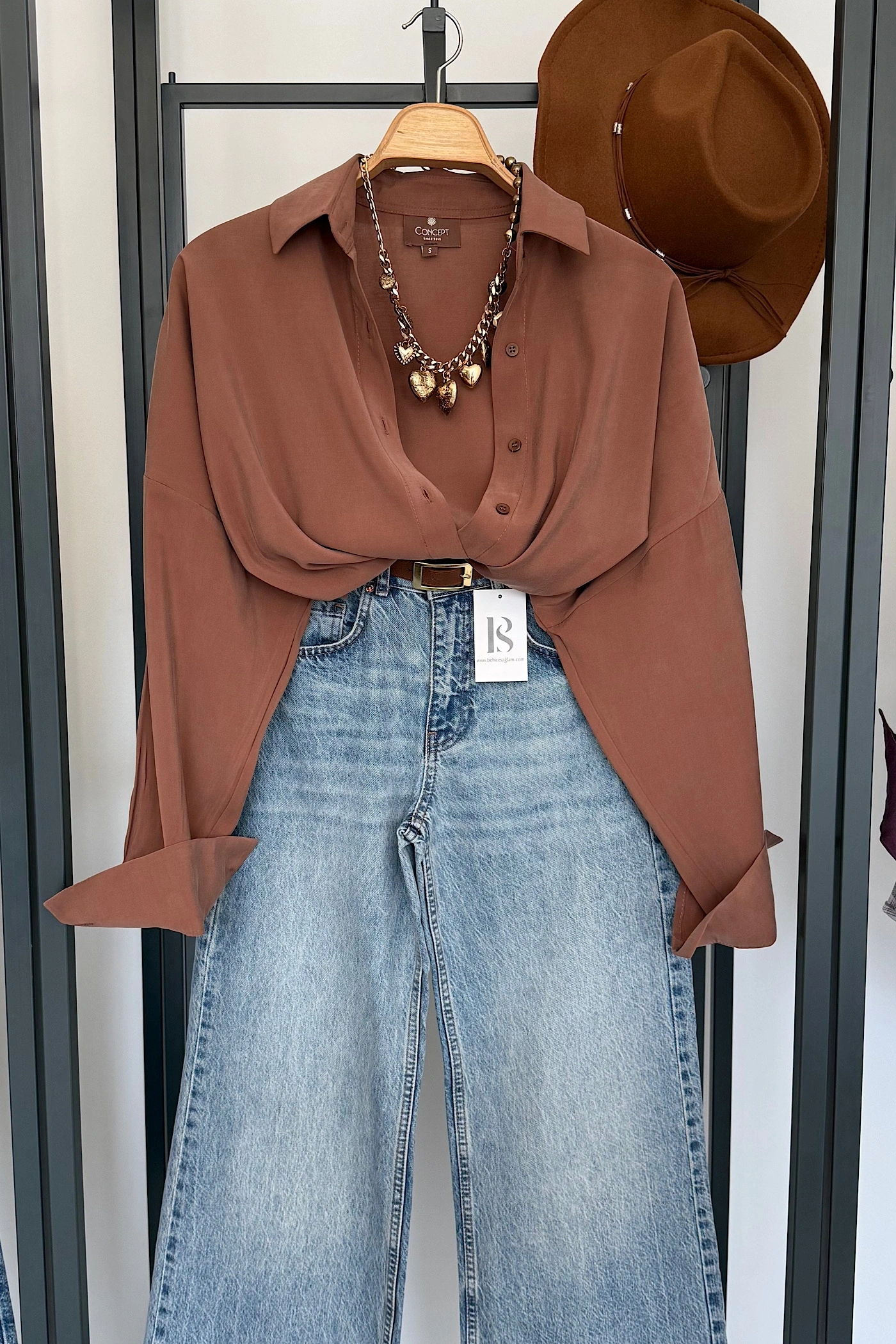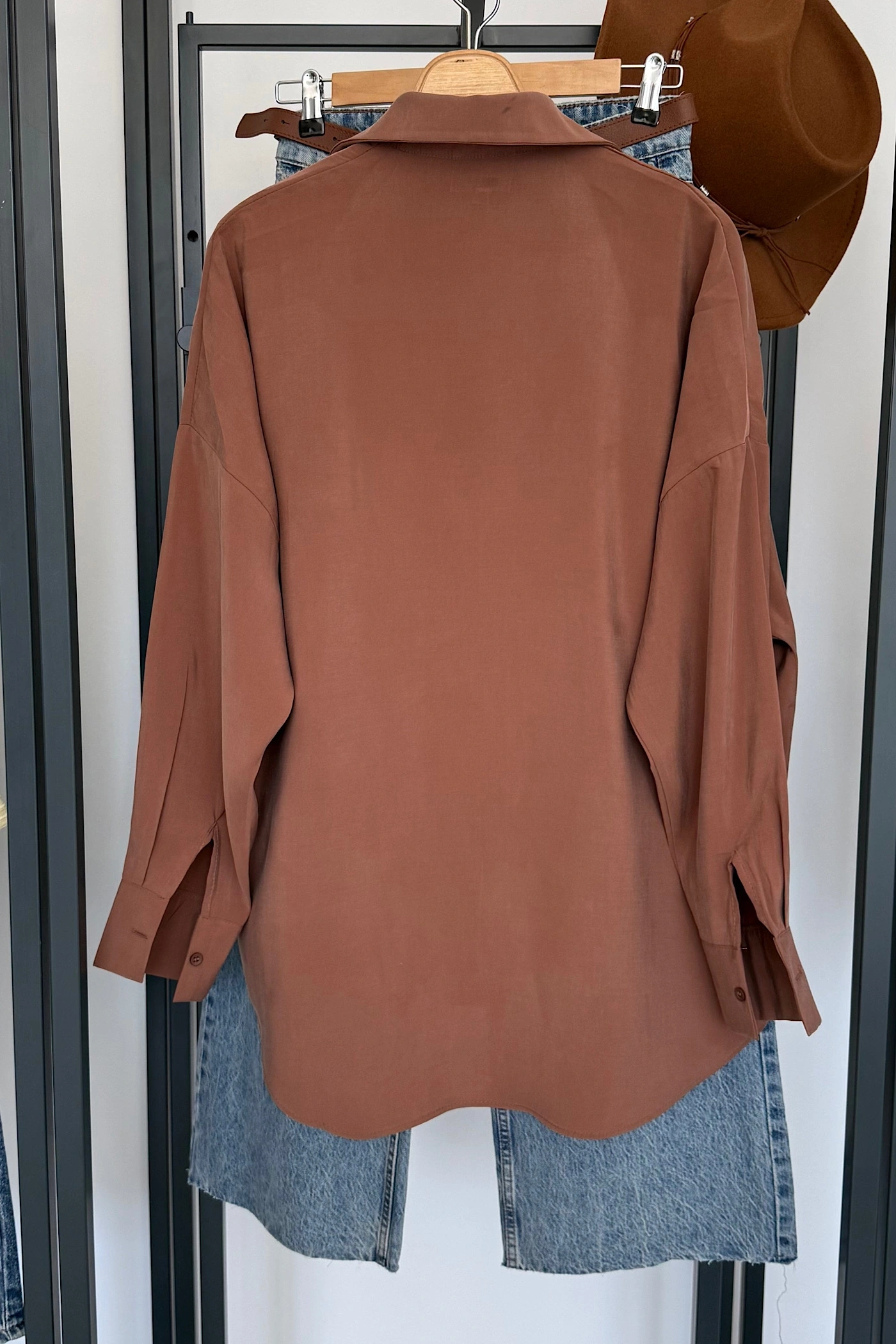 Dökümlü Tensel Oversize Gömlek Kahverengi