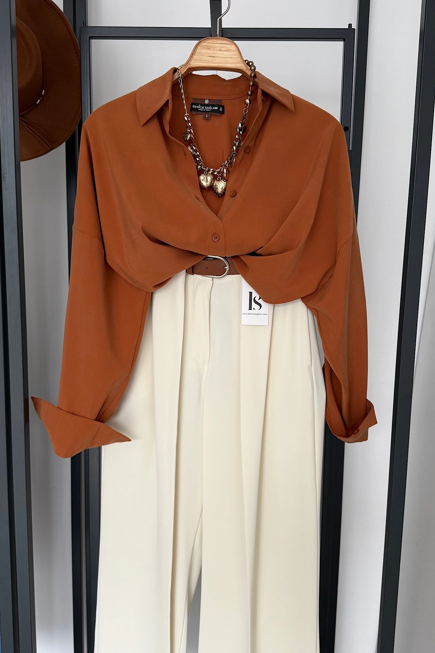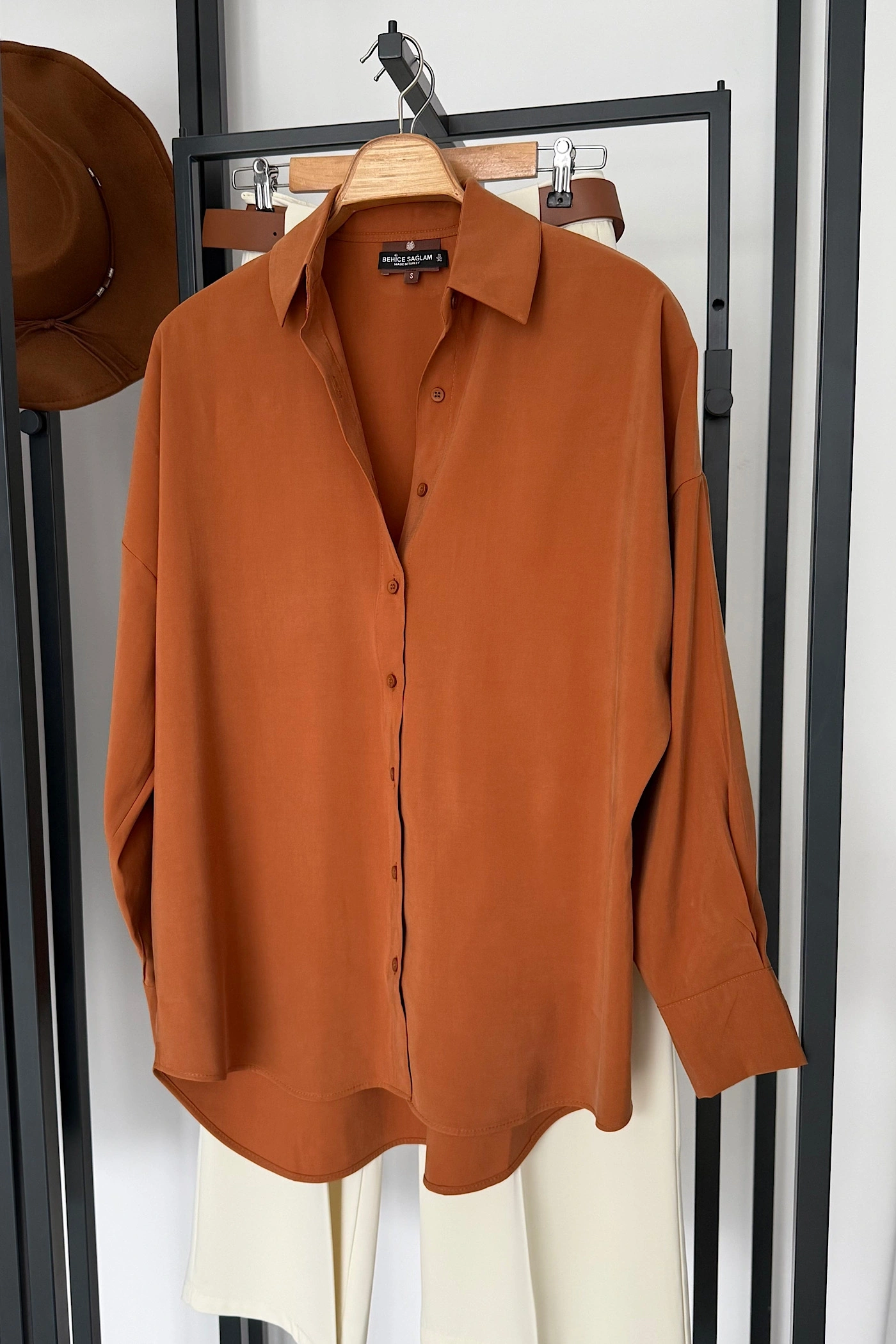 Dökümlü Tensel Oversize Gömlek Kiremit