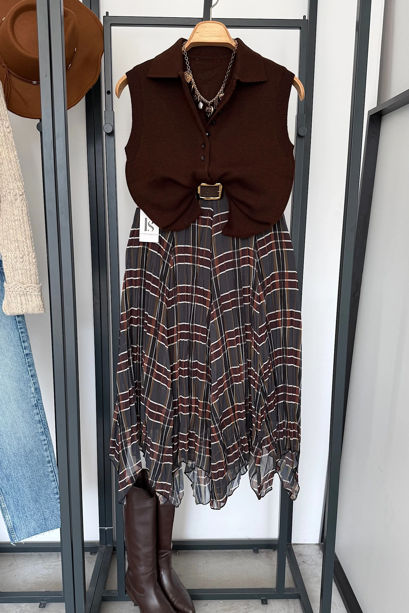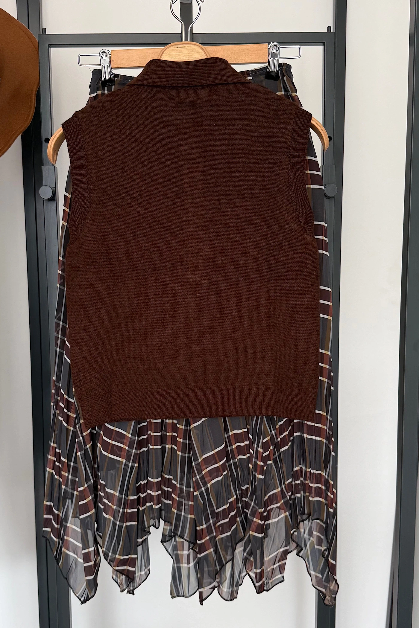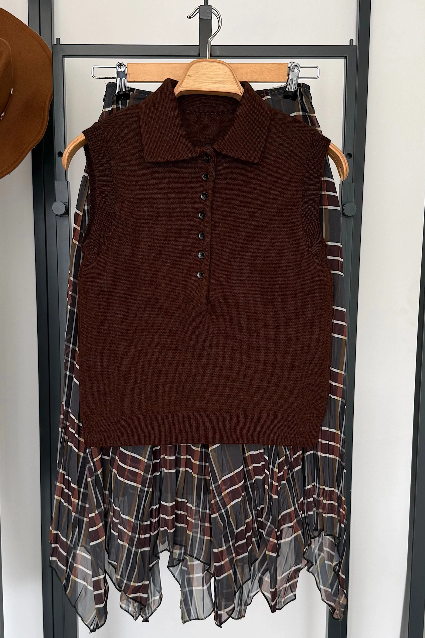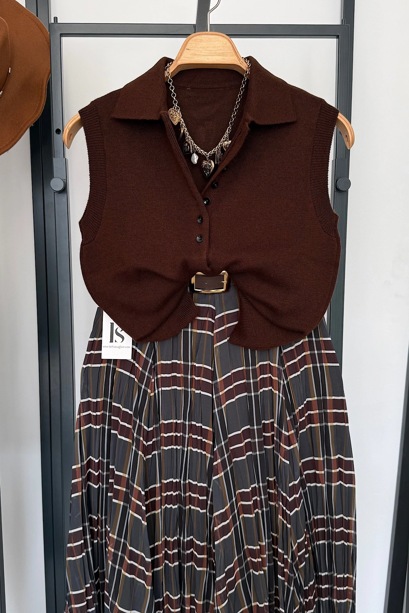 Düğmeli Polo Yaka Kazak Koyu Kahve-Krem