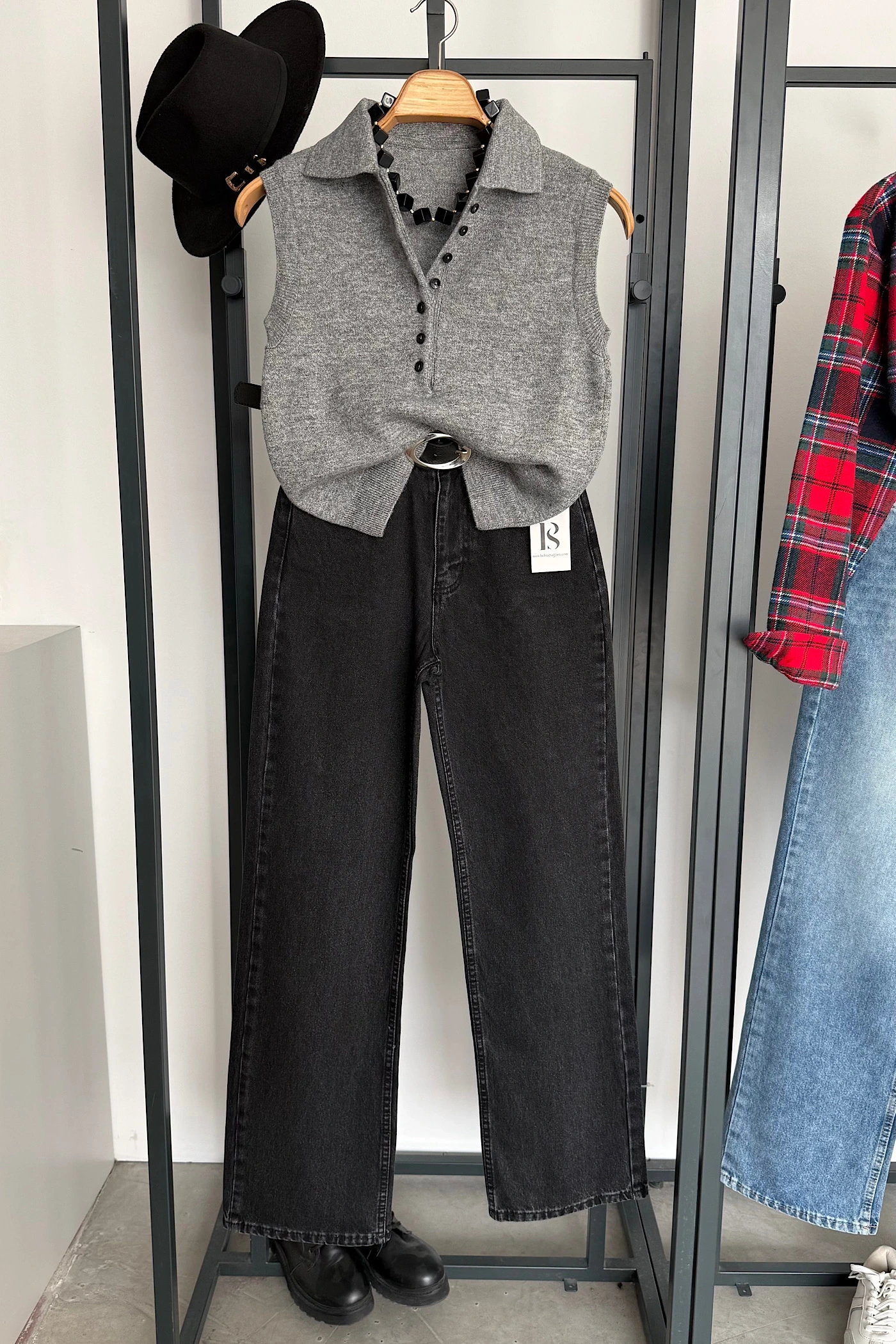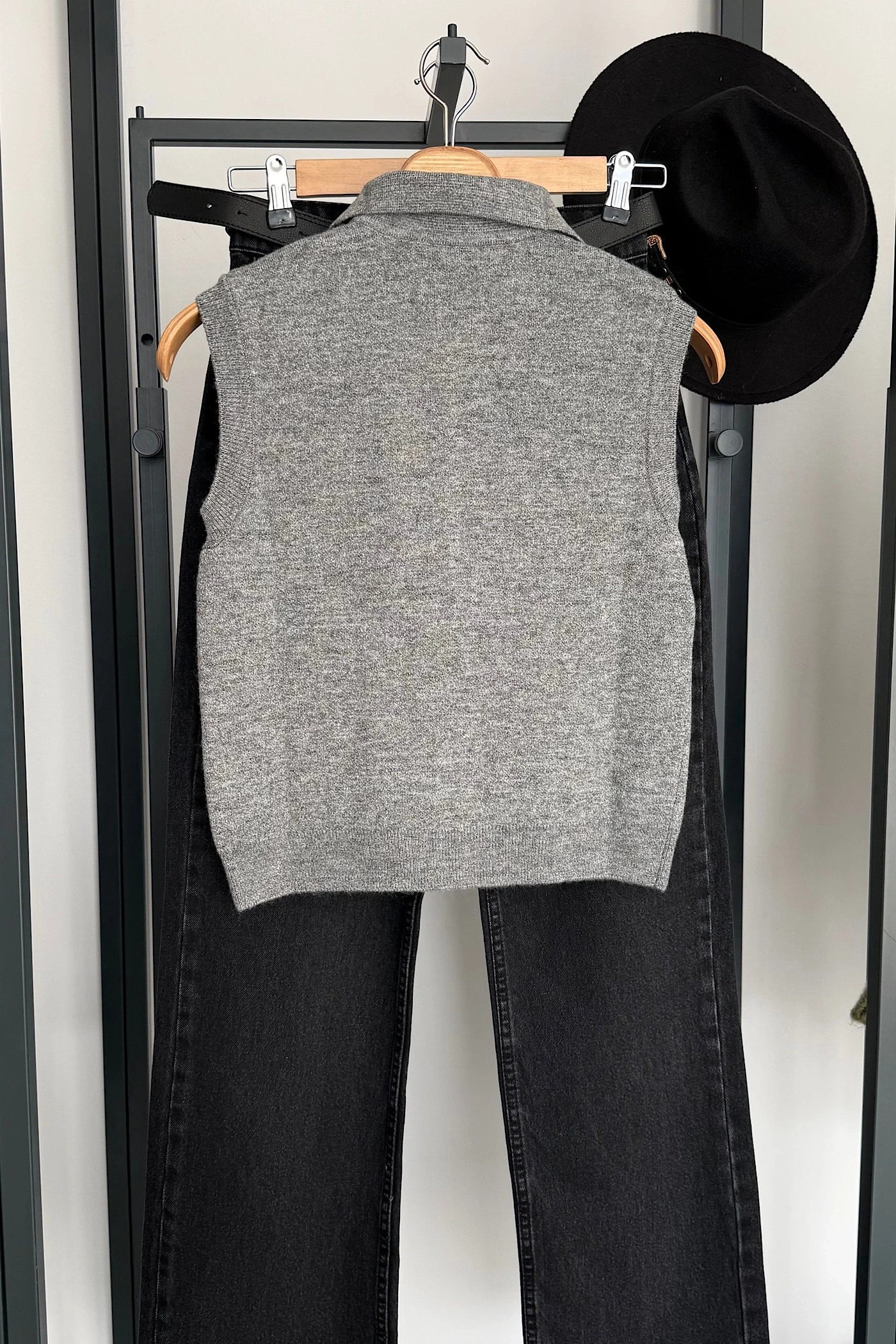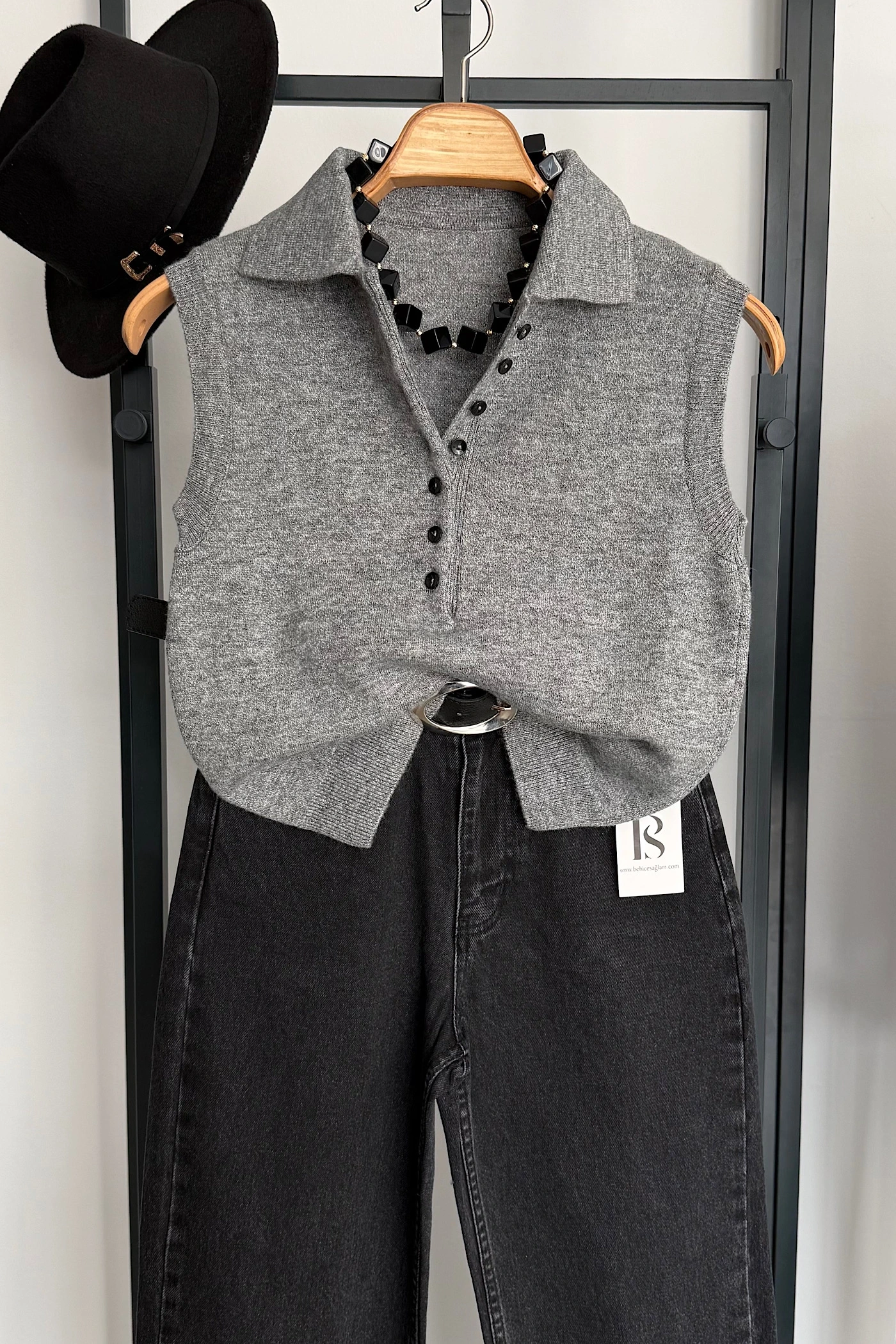 Düğmeli Kolsuz Kazak Gri