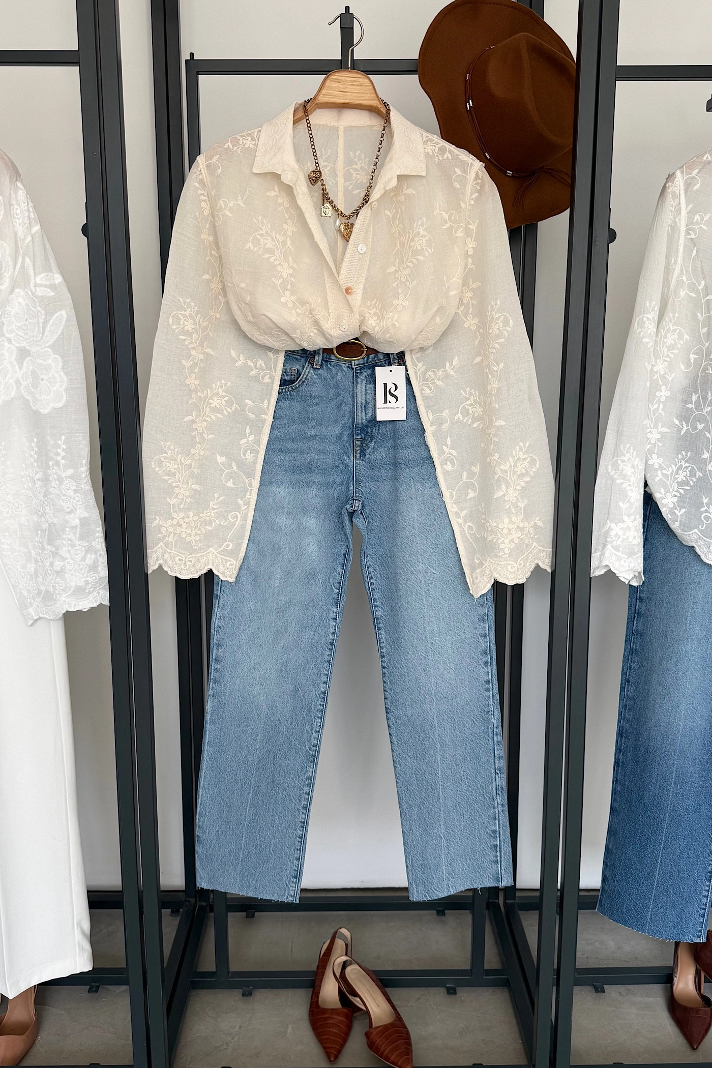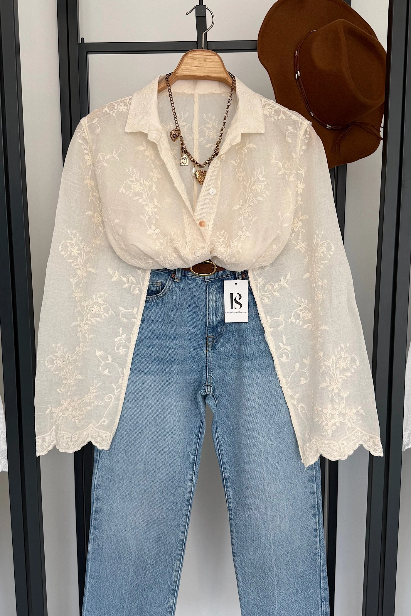 Bs Tek Cepli Dokumalı Gömlek Beyaz