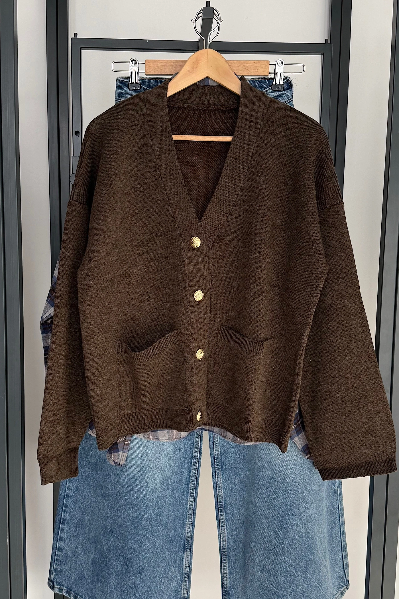 Şardonlu İnce Çizgili Hırka Yeşil-Kahverengi