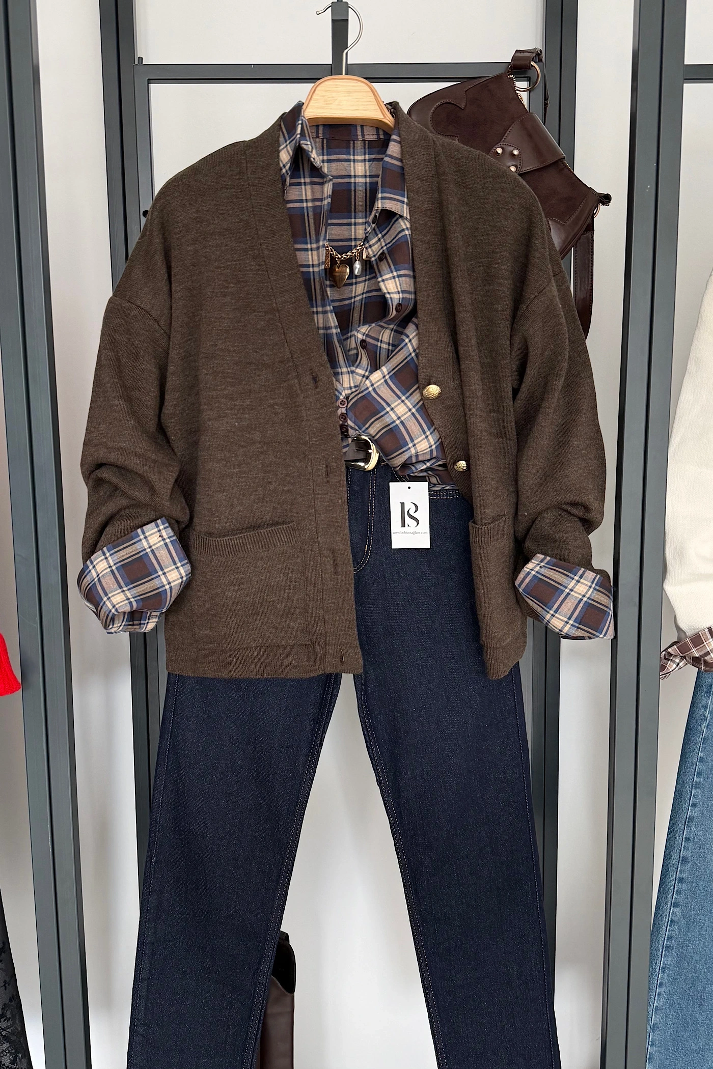 Kuşaklı Oversize Hırka Kahverengi