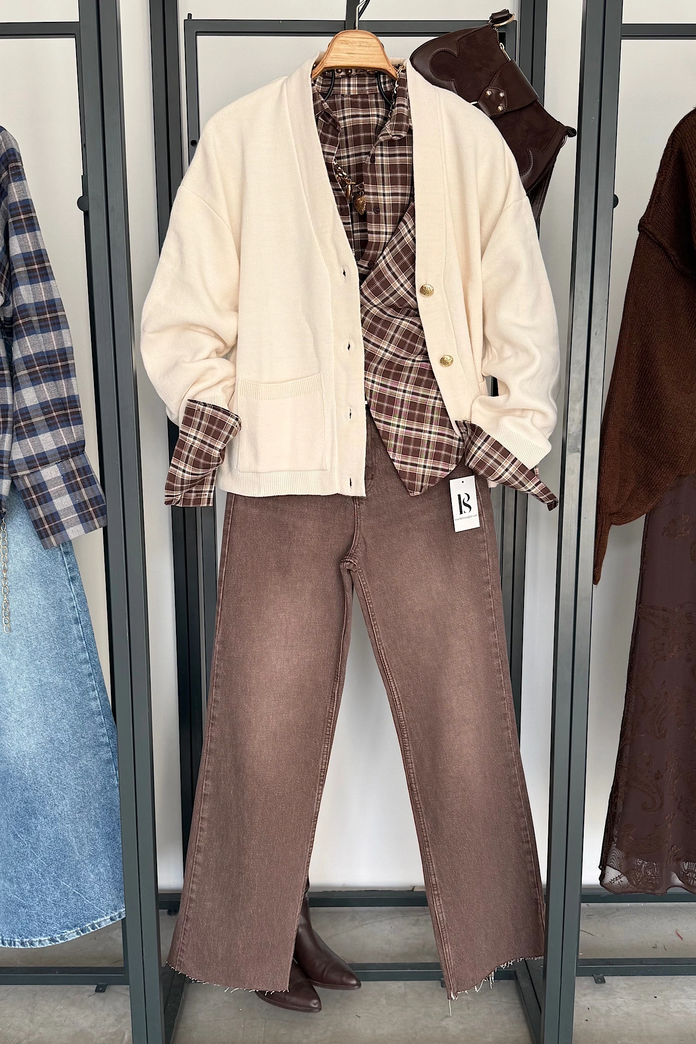 Kuşaklı Oversize Hırka Kahverengi