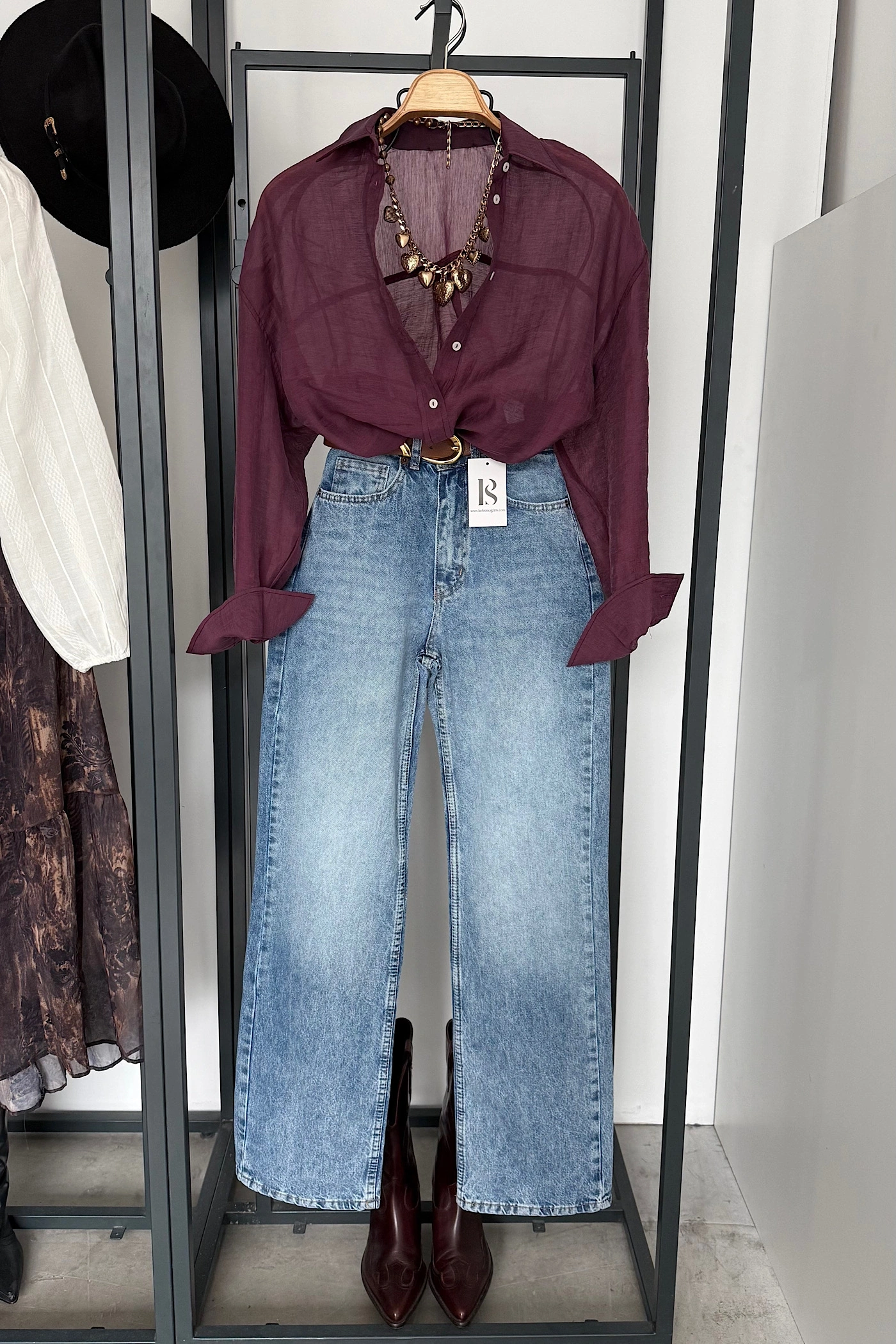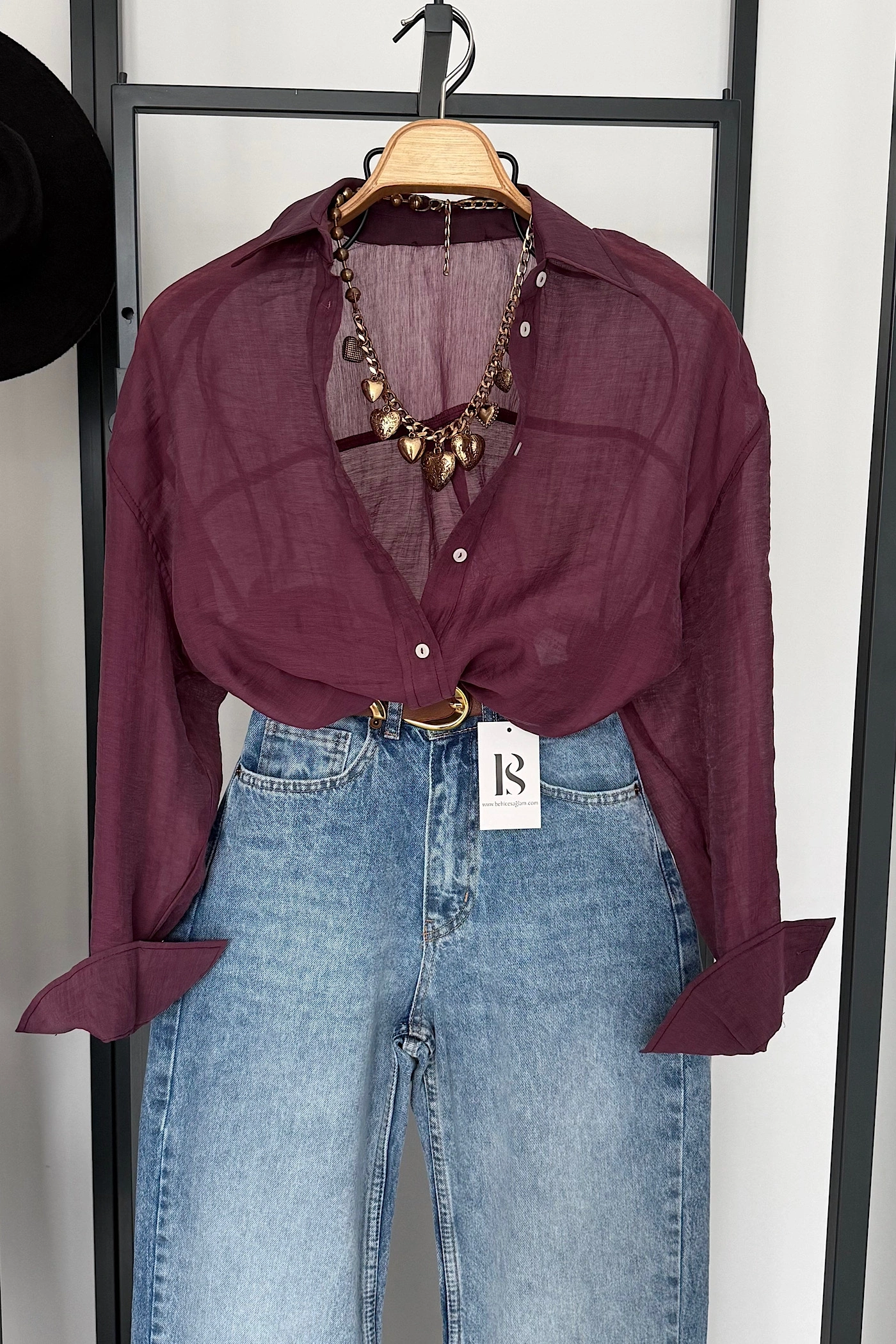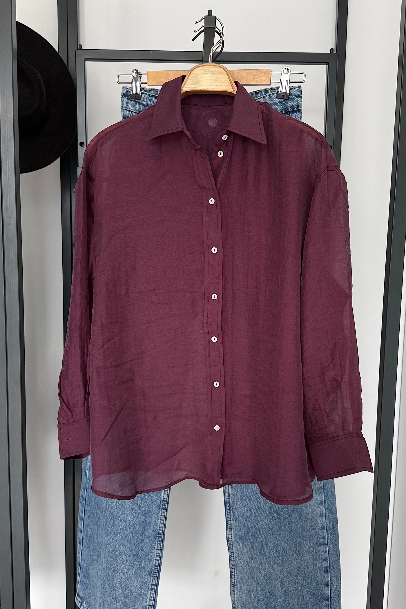 Arka Detay Tensel Gömlek Bordo