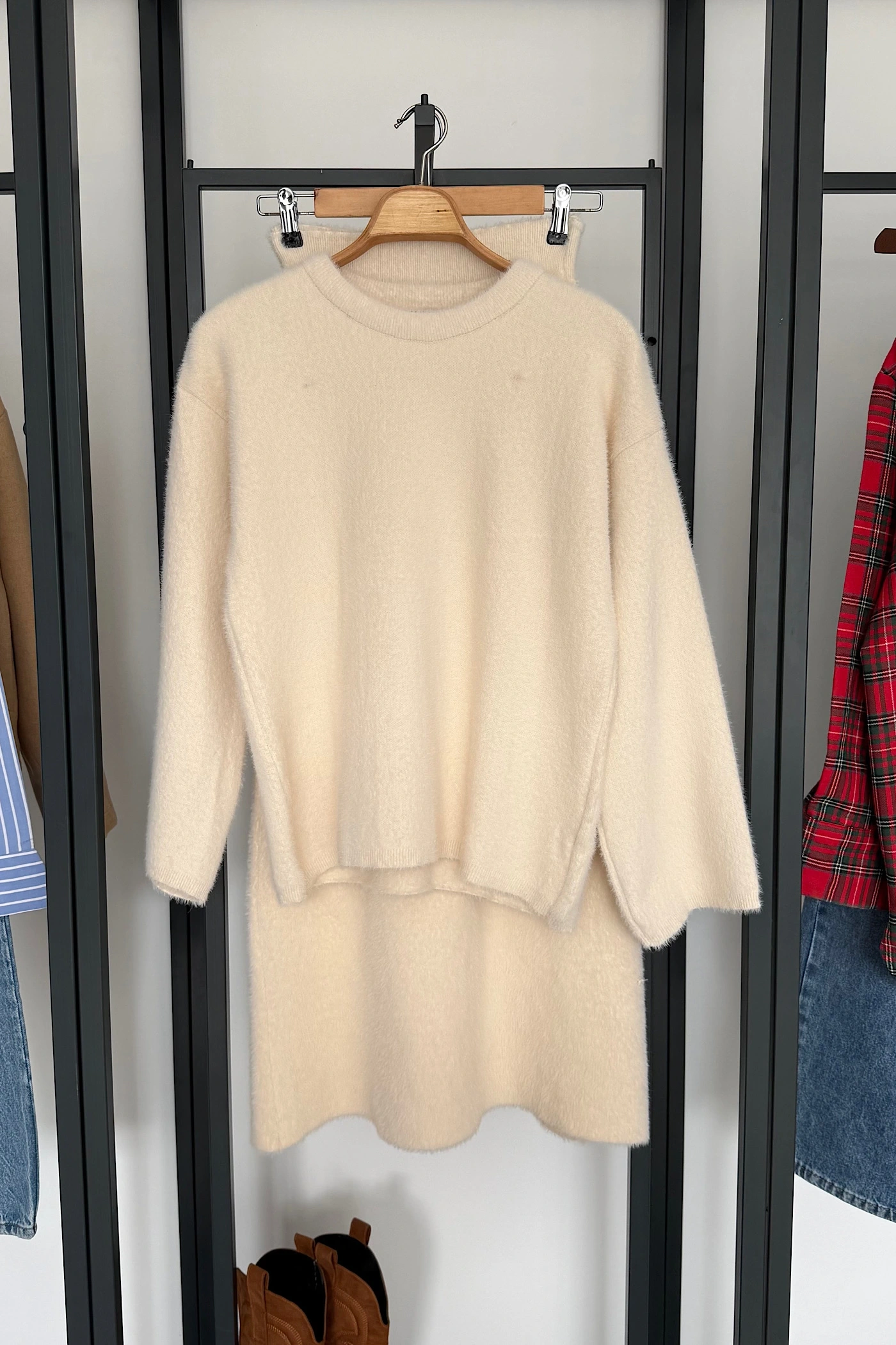 Şardonlu Alpaka Karışımlı Triko Kazak Karamel