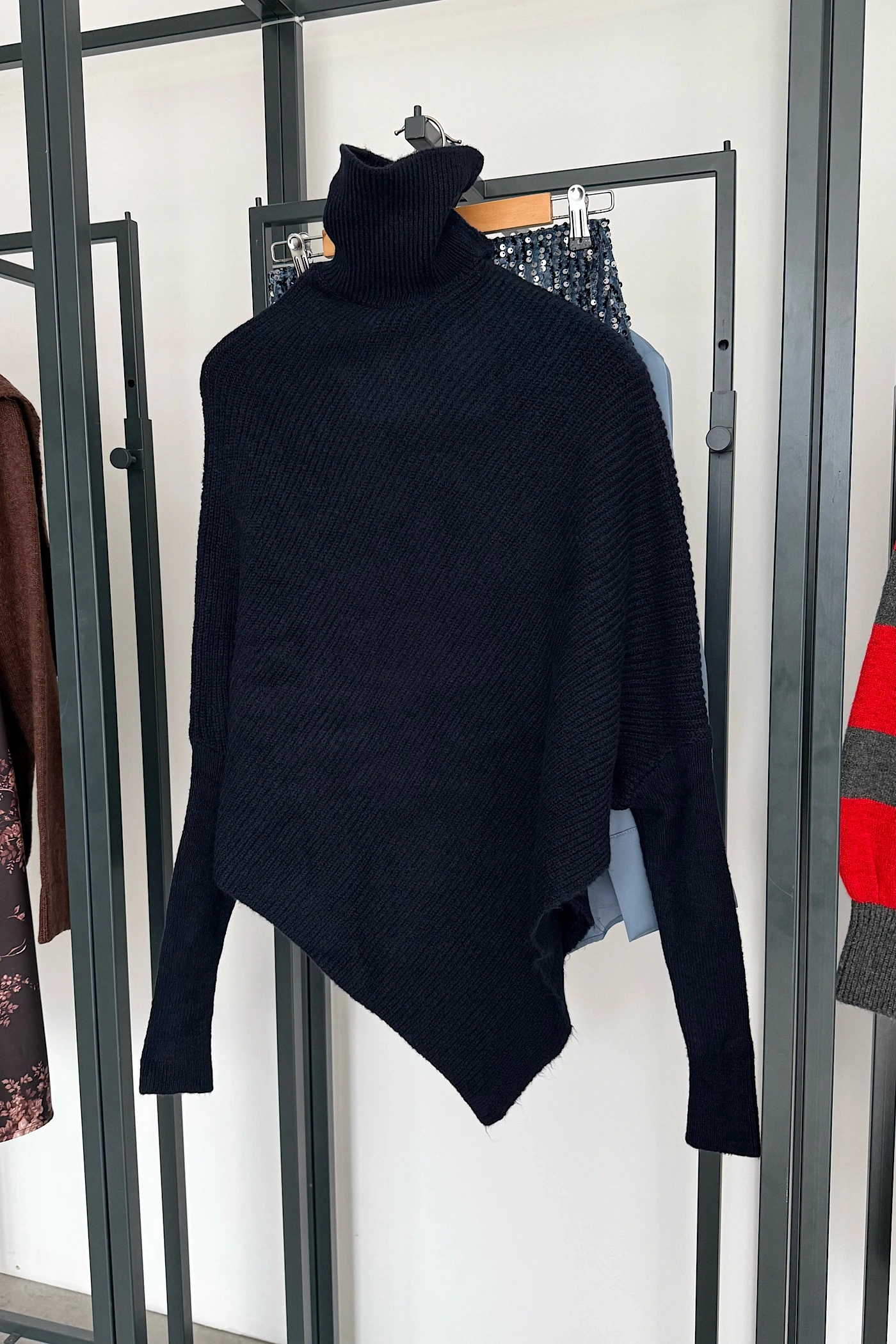 Tek Omzu Açık Çizgili Kazak Koyu Gri-Siyah