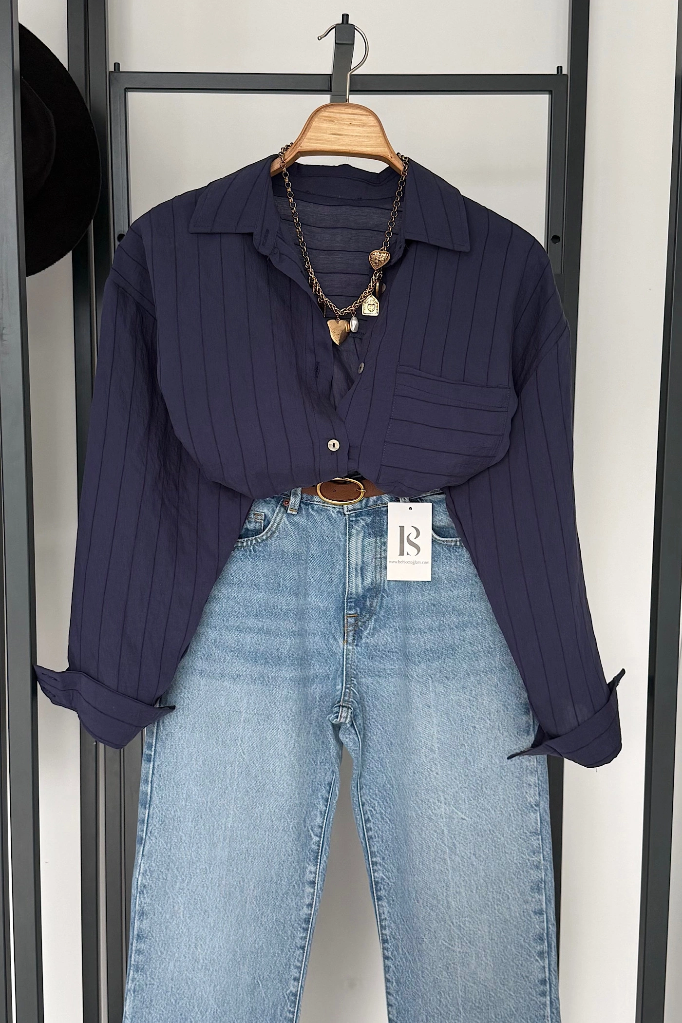 Bs Tek Cepli Dokumalı Gömlek Lacivert