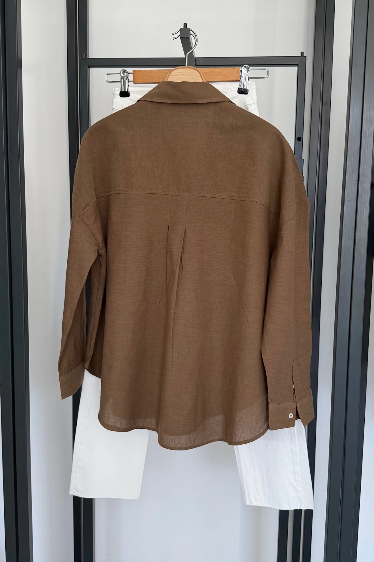 Ekose Desen Düğme Detaylı Gömlek Kahve-Bej