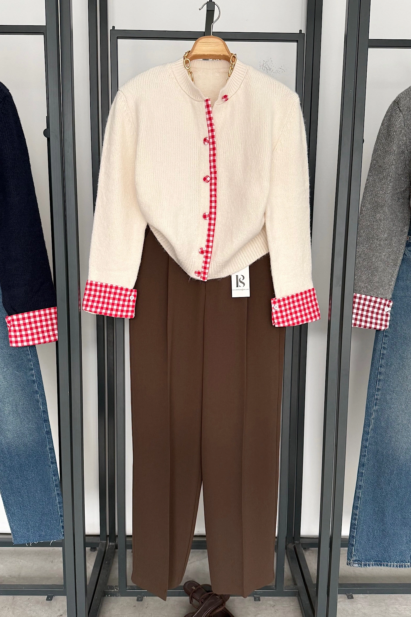 Atkılı Triko Hırka Antrasit-Kırmızı