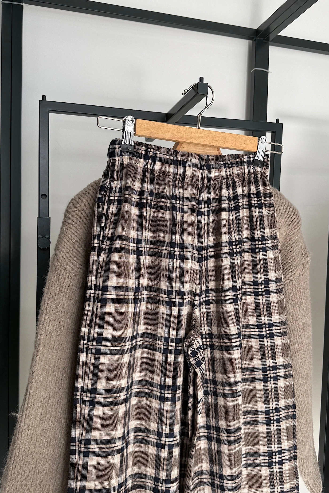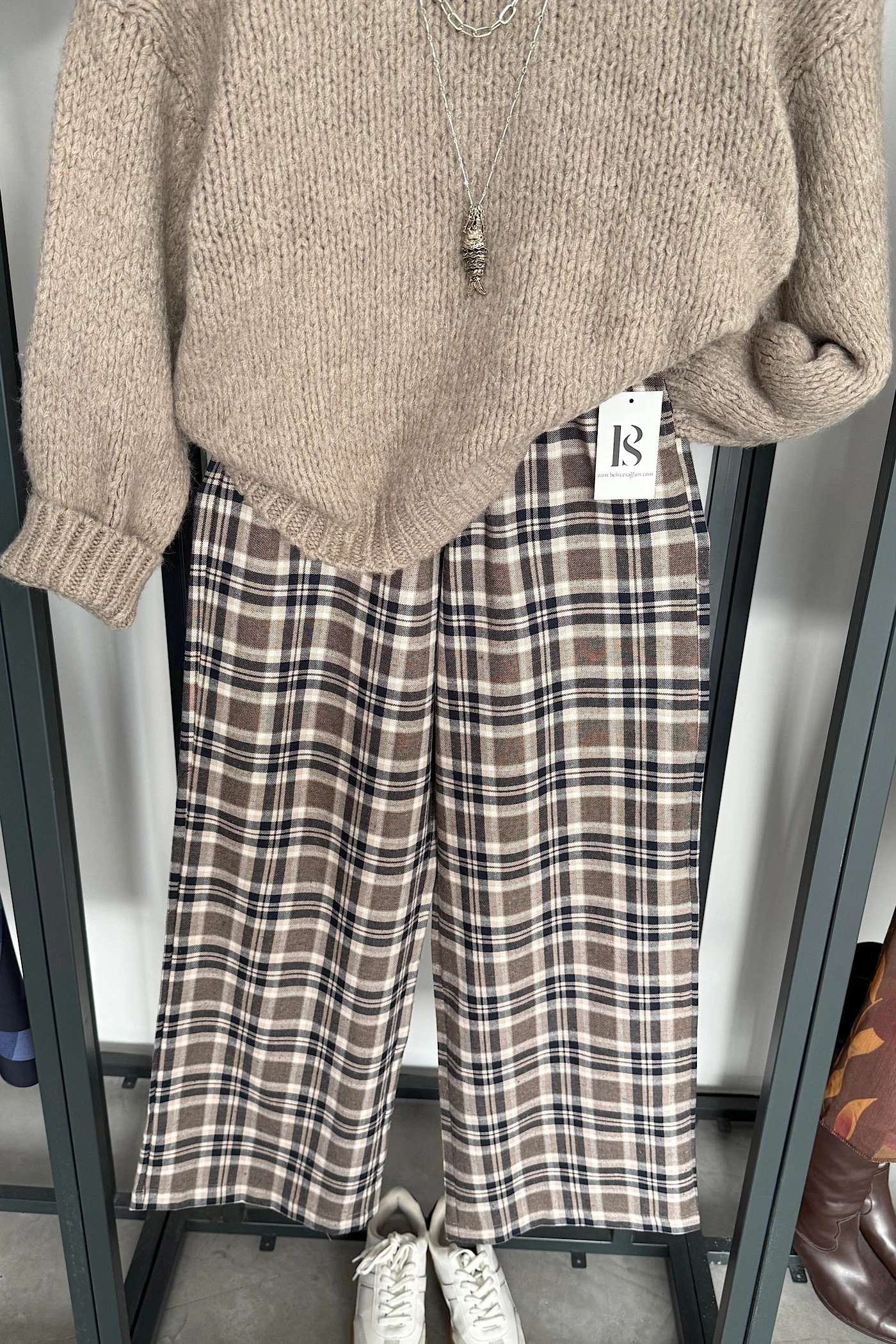 Ekose Pantolon Bej-Lacivert