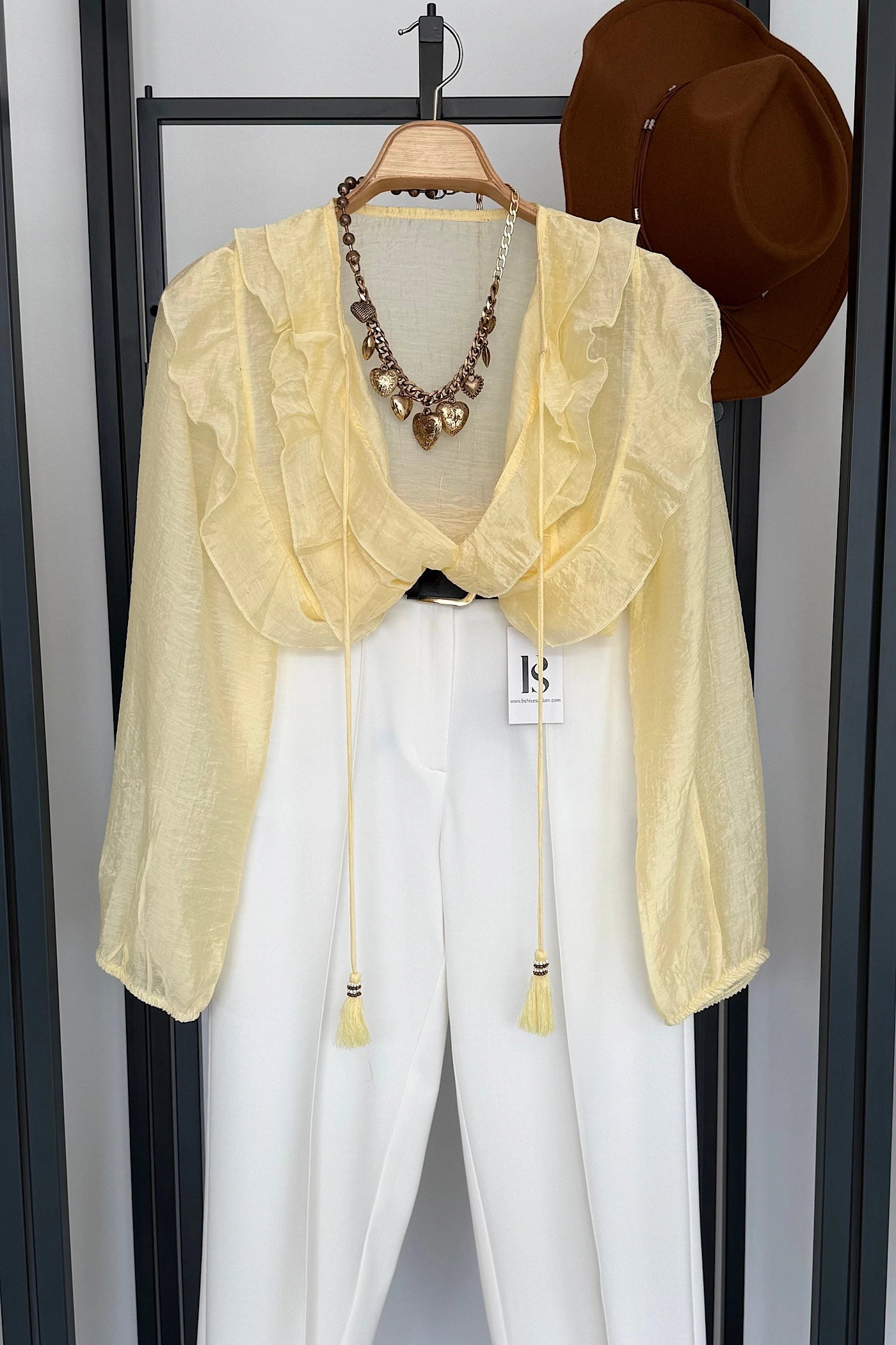 Fırfırlı Bağlamalı Gömlek Sarı