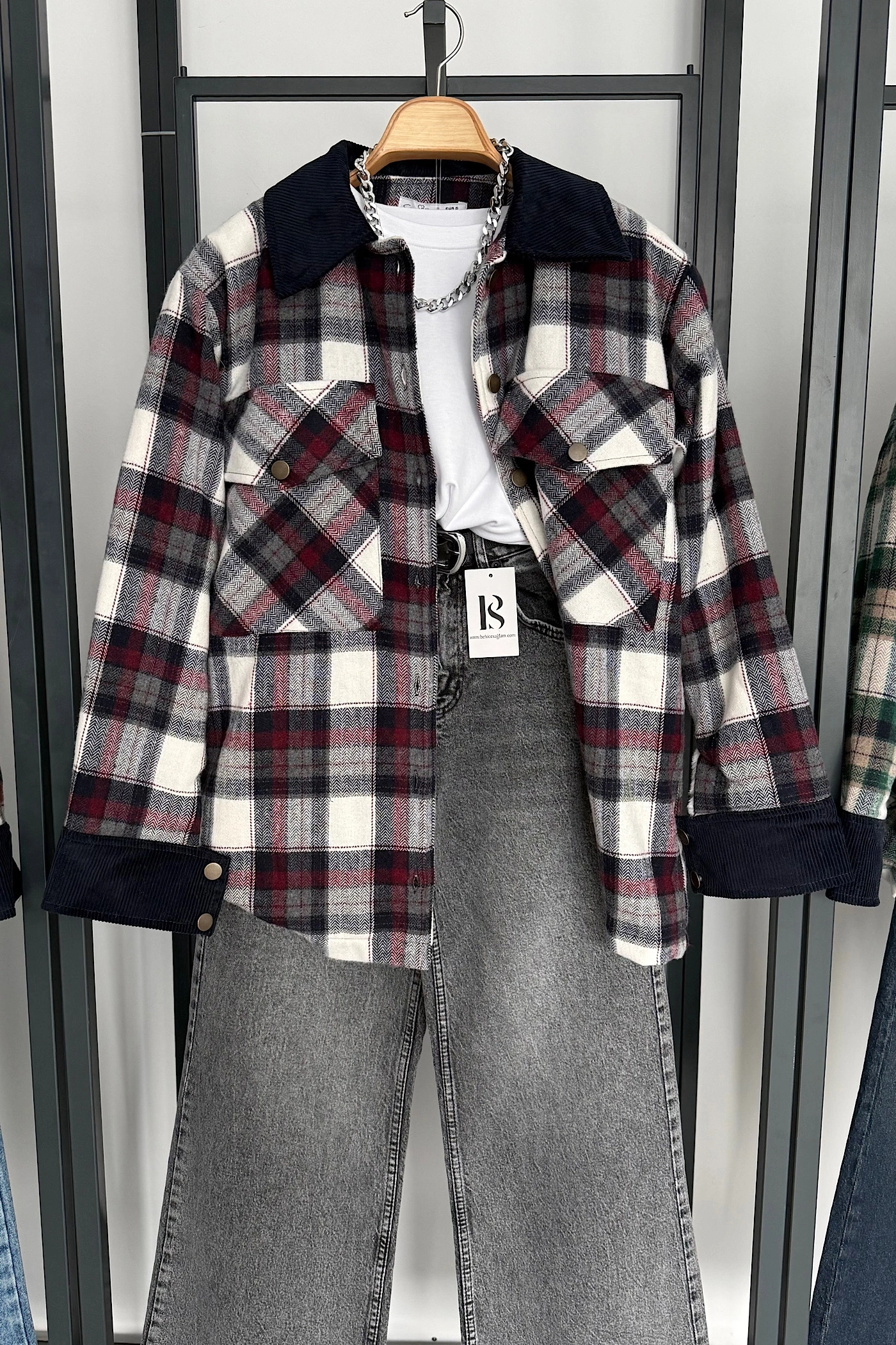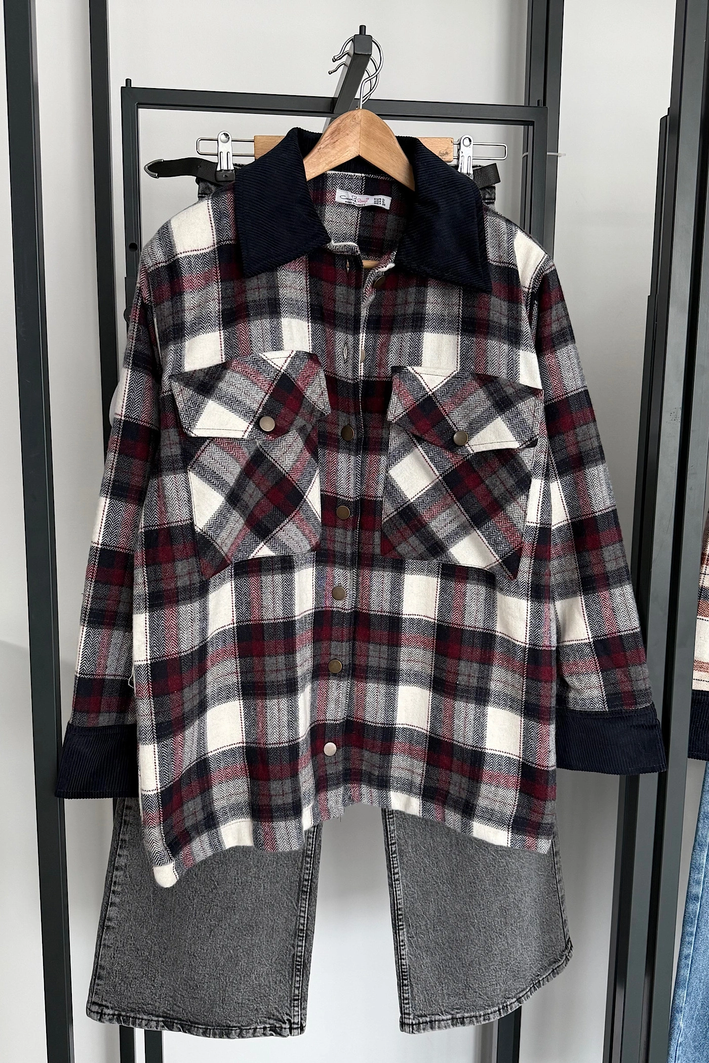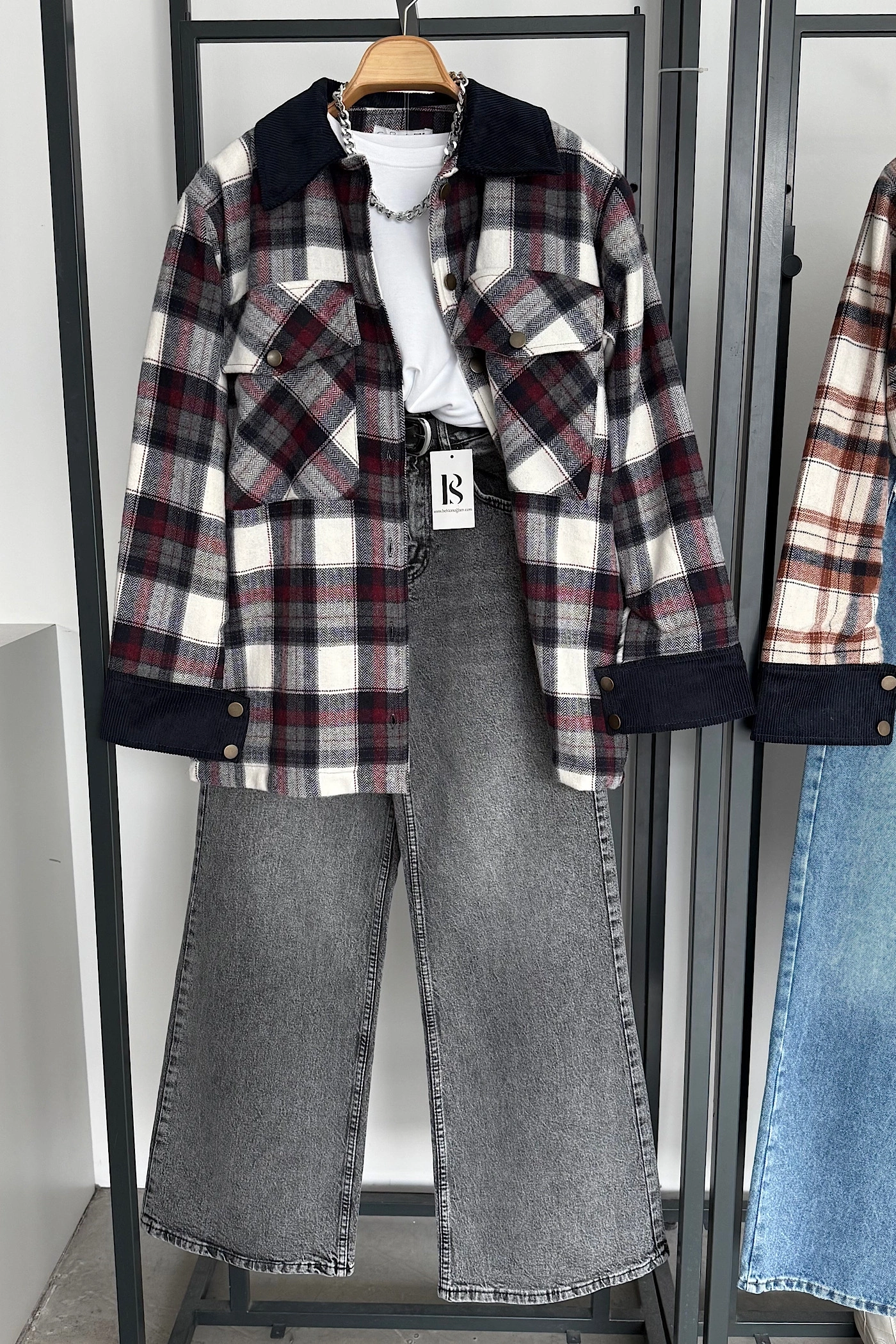 Kadife Detaylı Oduncu Ceket Kahverengi