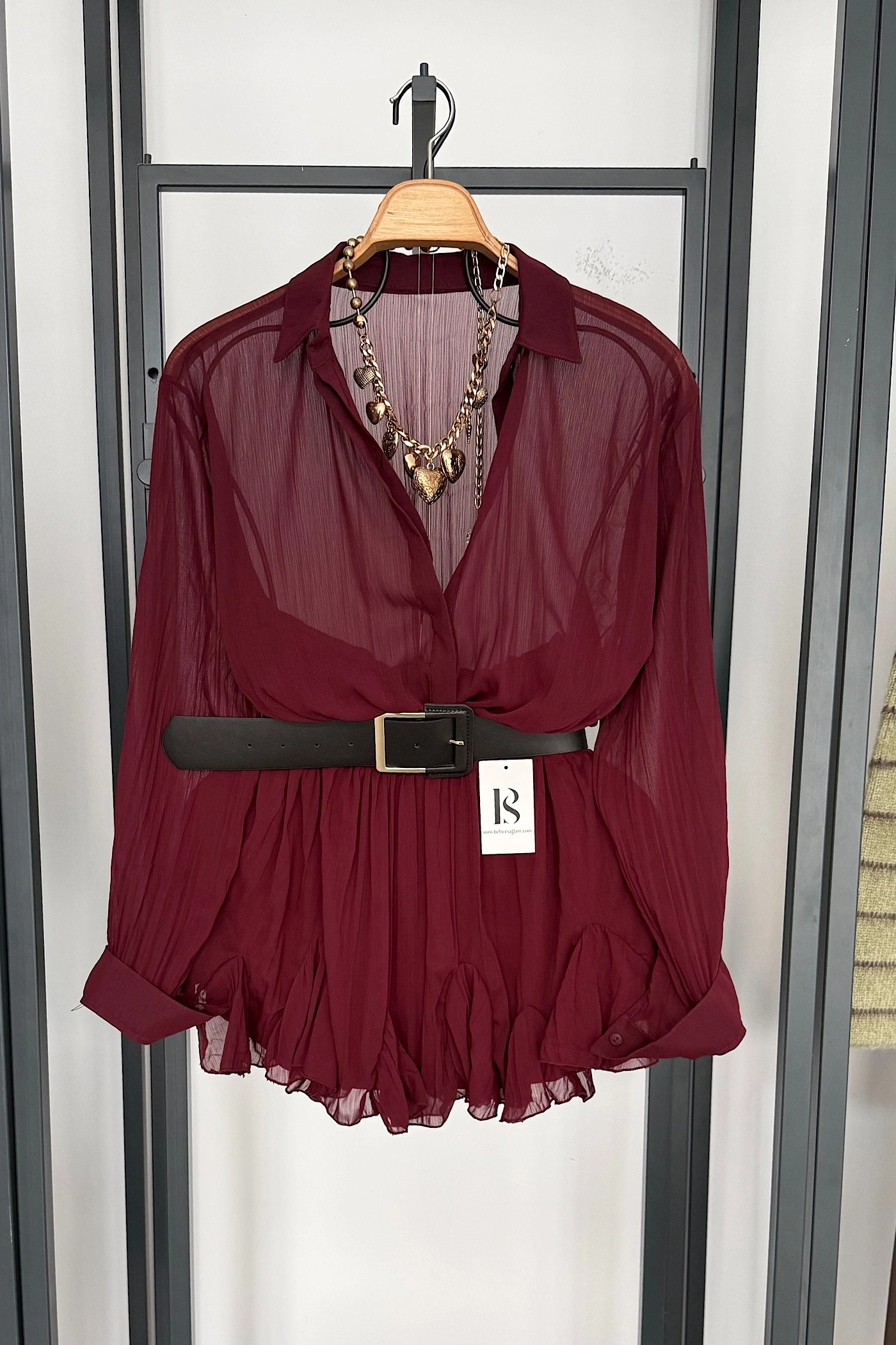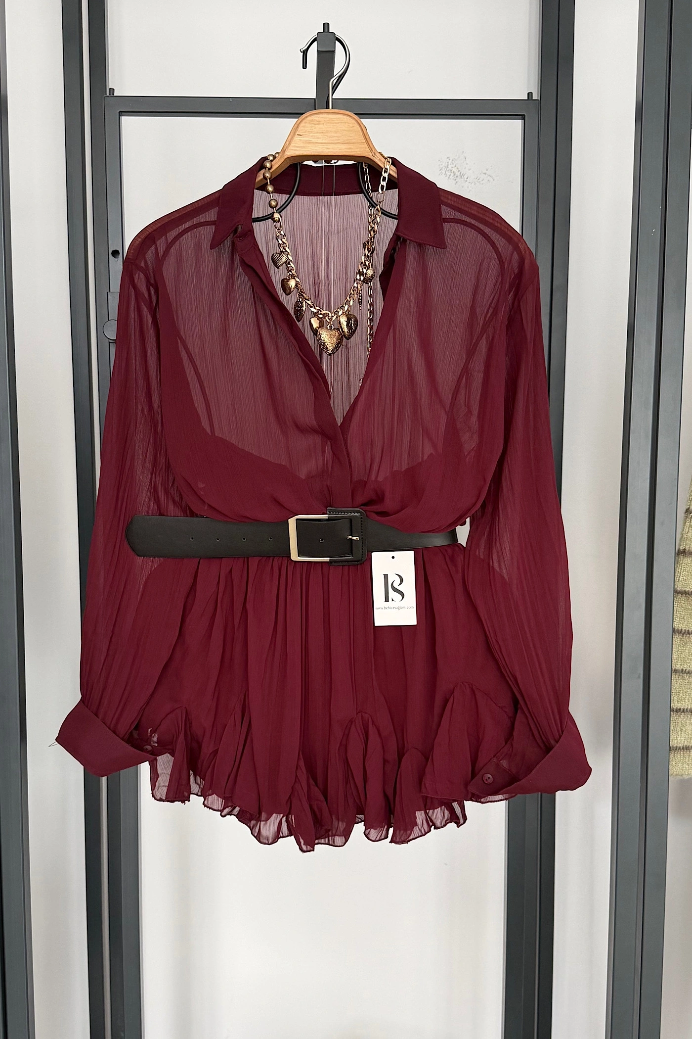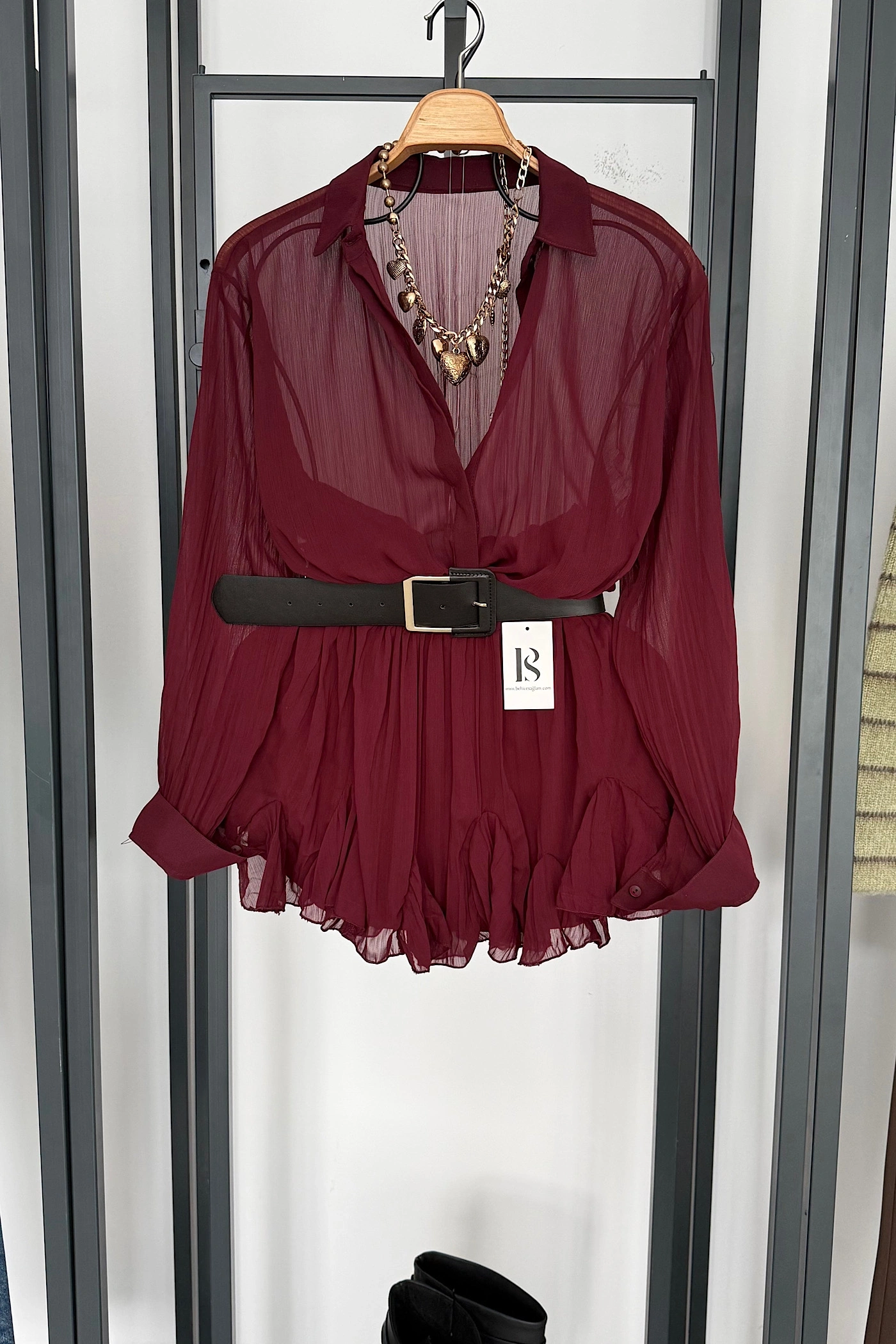 Kemer Detaylı Elbise Bordo