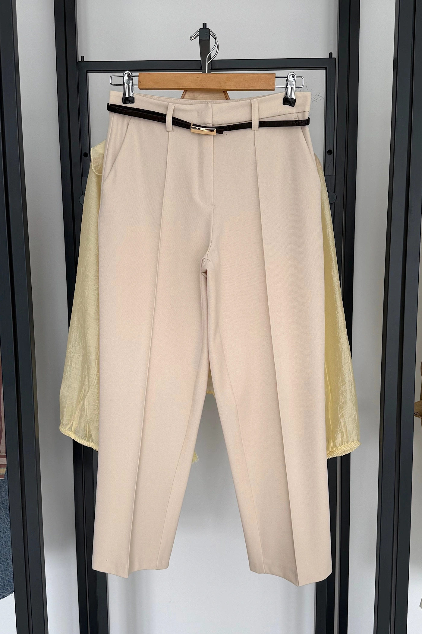 Kemerli Düz Paça Pantolon Bej