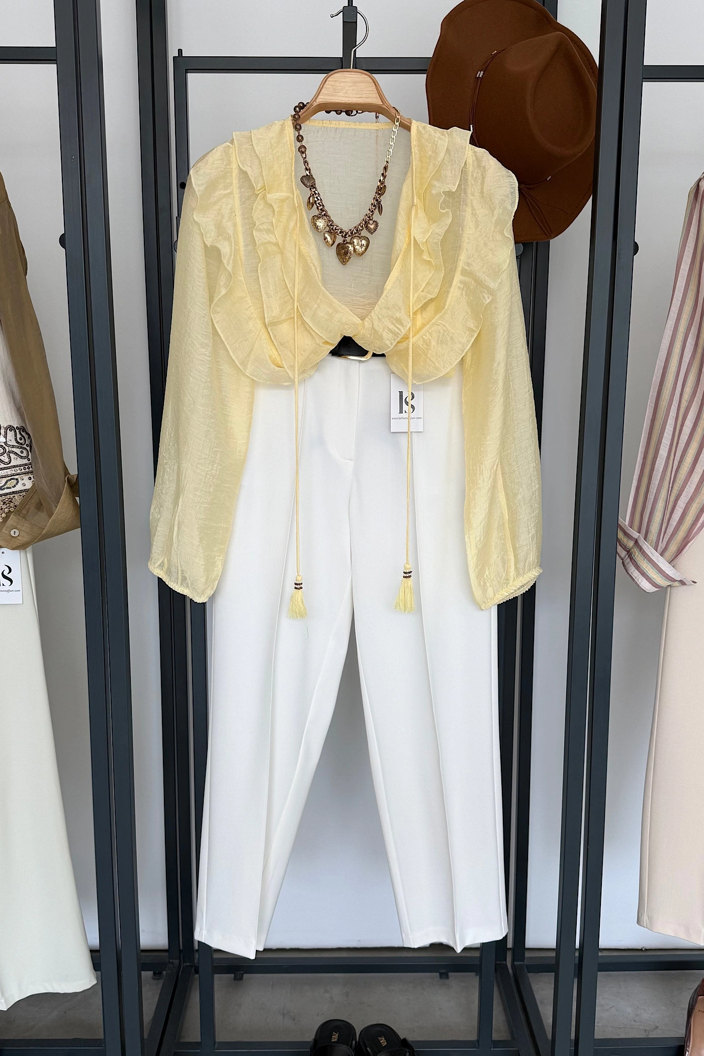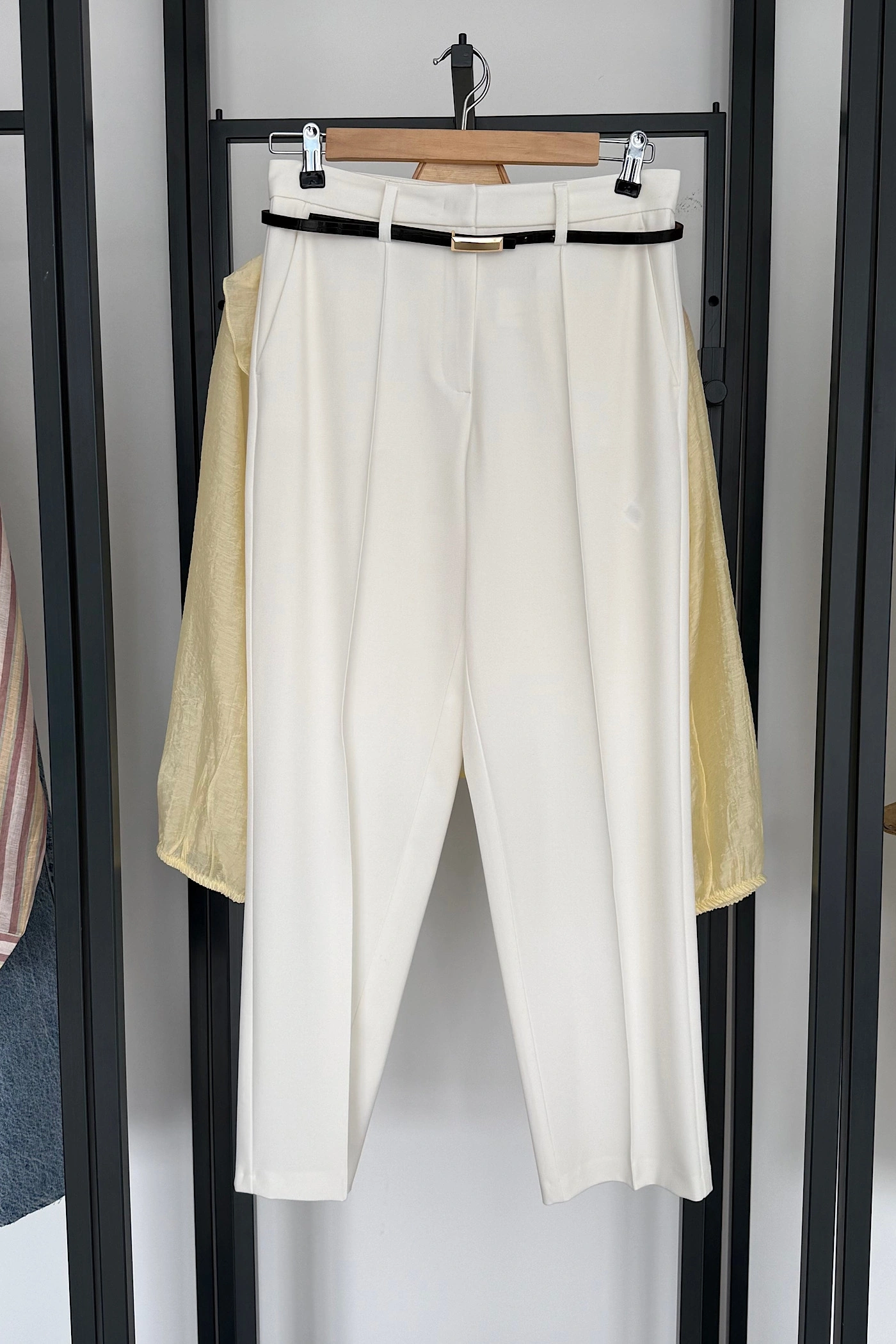 Kendinden Kemerli Kumaş Pantolon Ekru