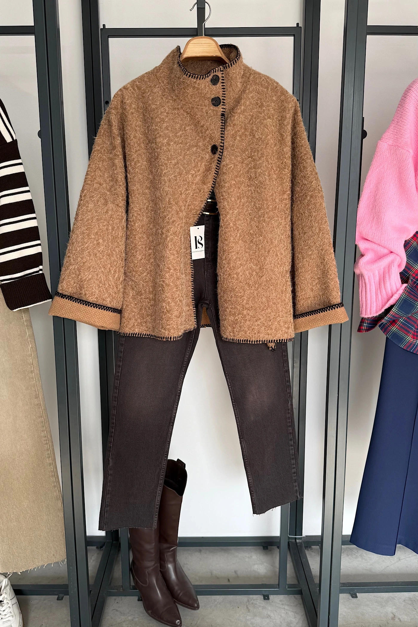 Kroşetalı Kıvırak Peluş Ceket Camel