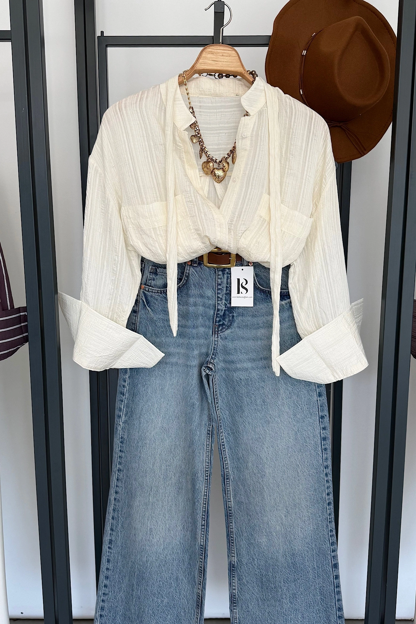 Kuşaklı Modal Gömlek Ekru