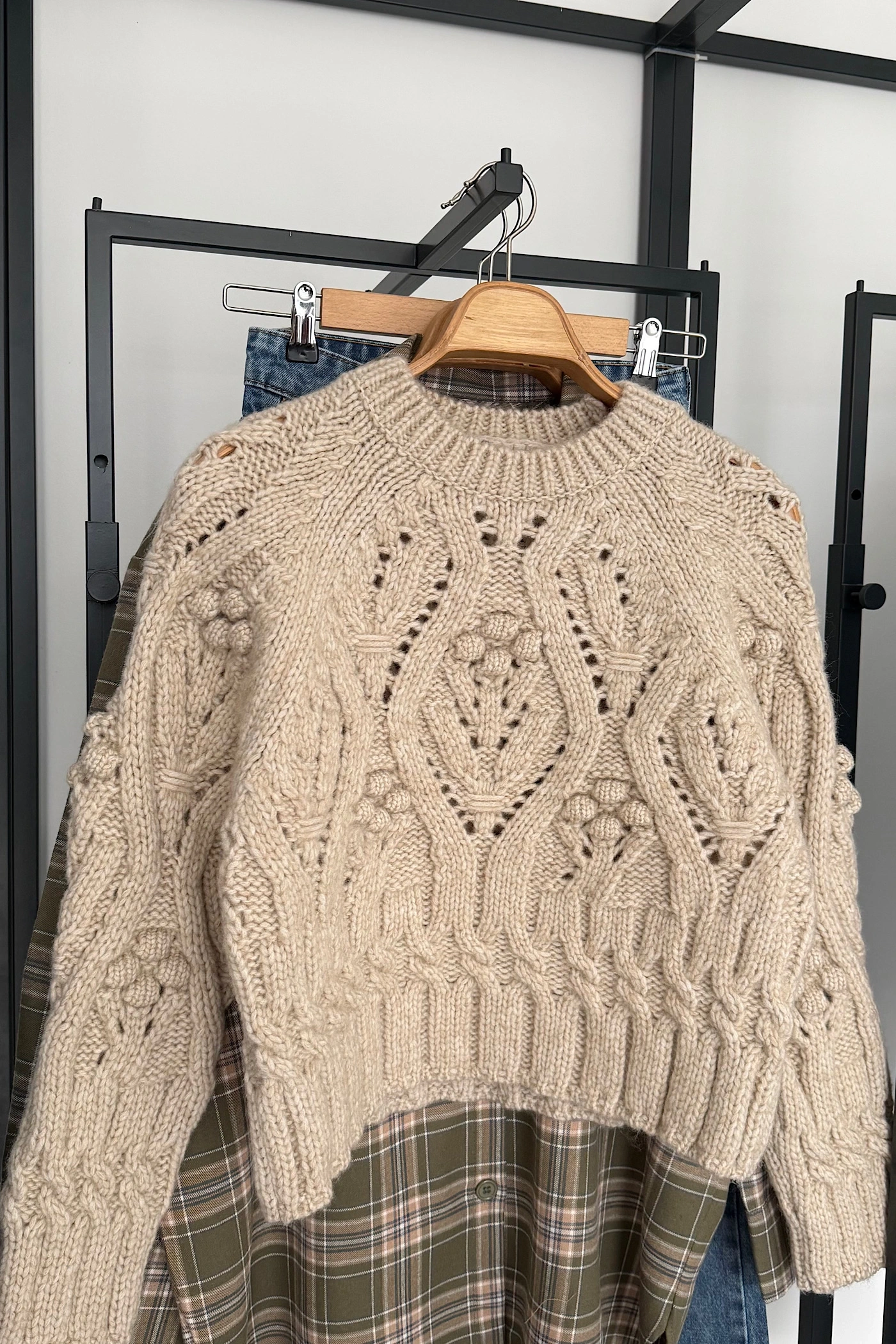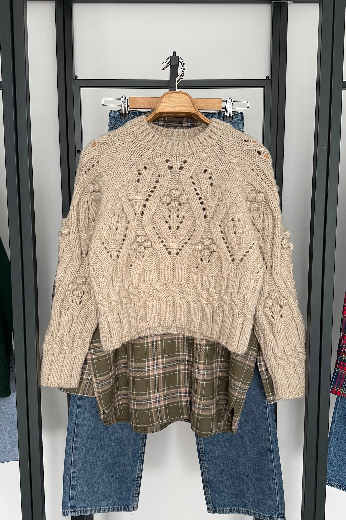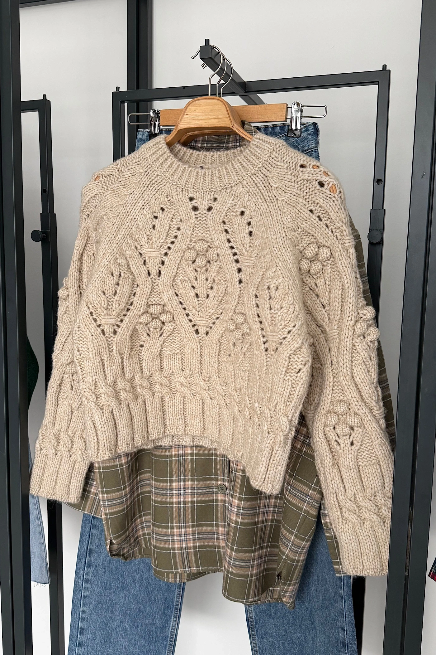 Şardonlu Alpaka Karışımlı Triko Kazak Karamel