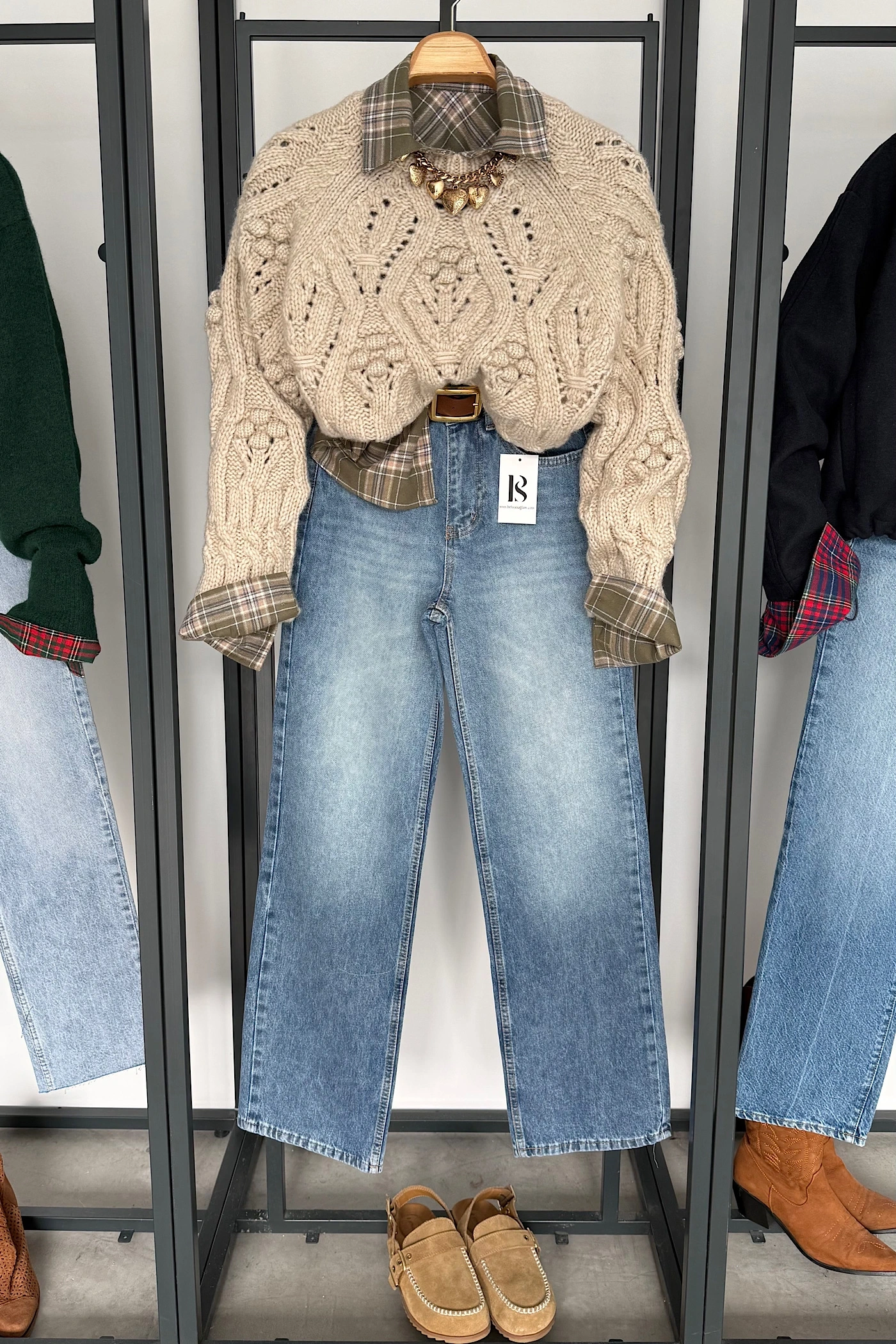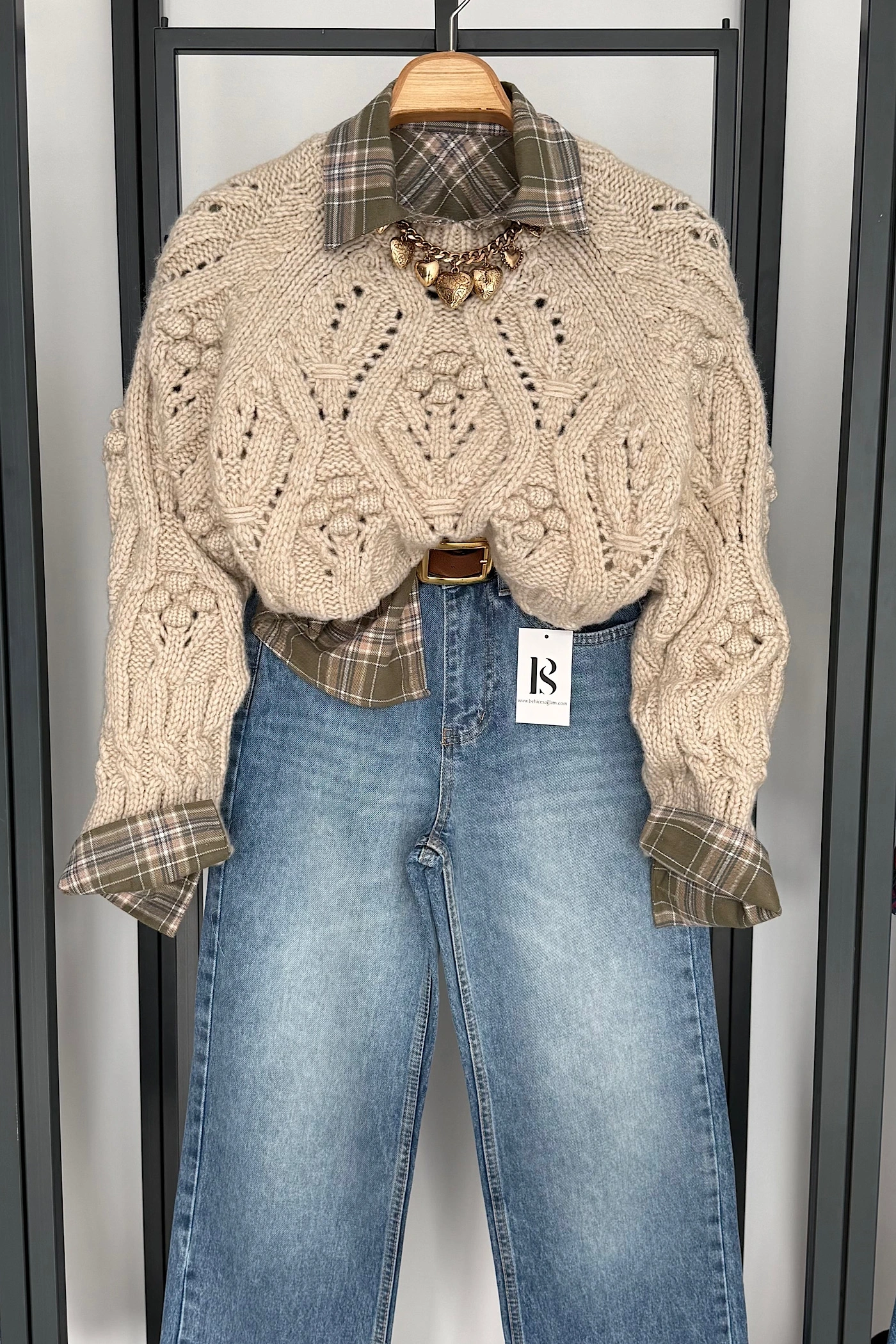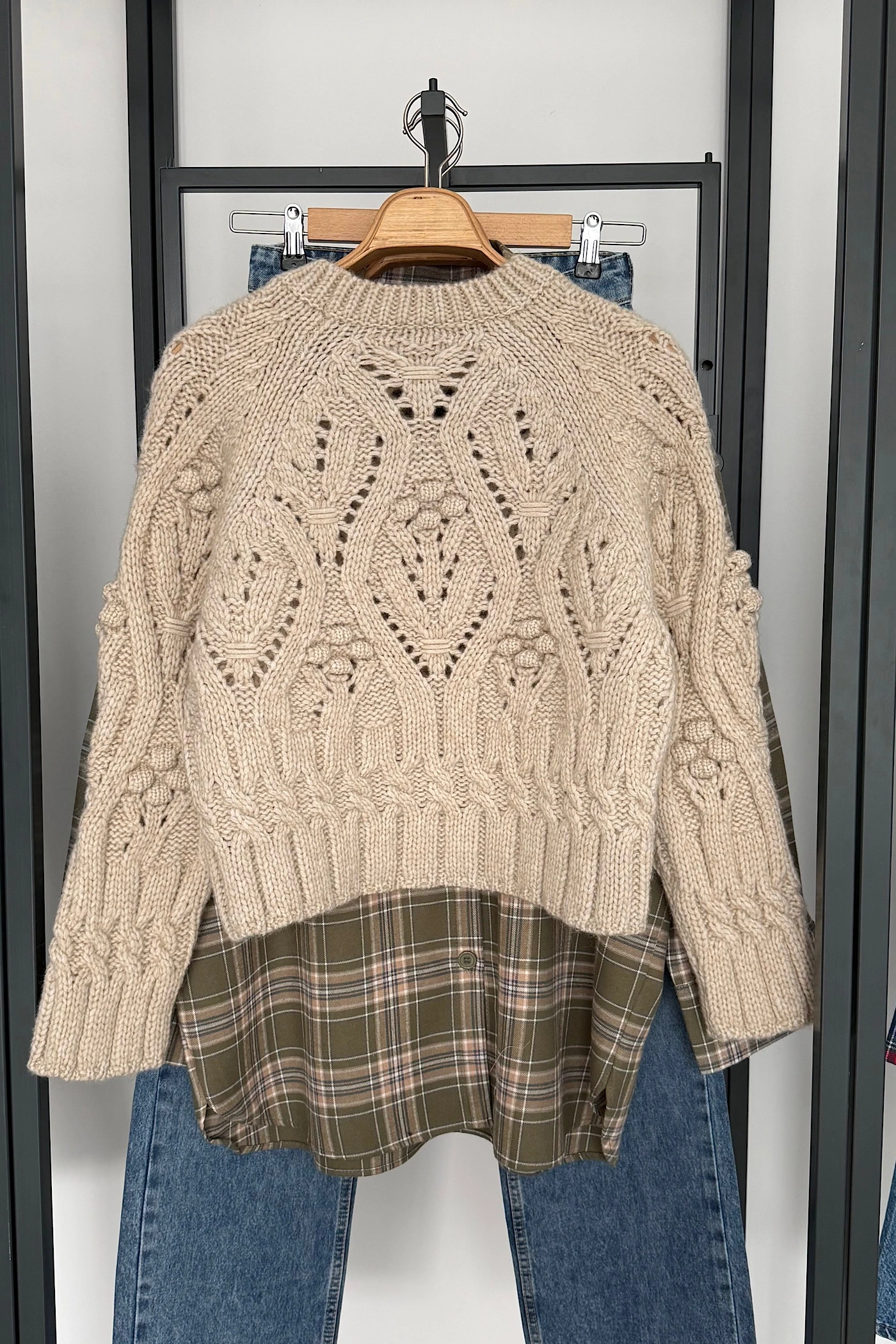 Şardonlu Alpaka Karışımlı Triko Kazak Karamel